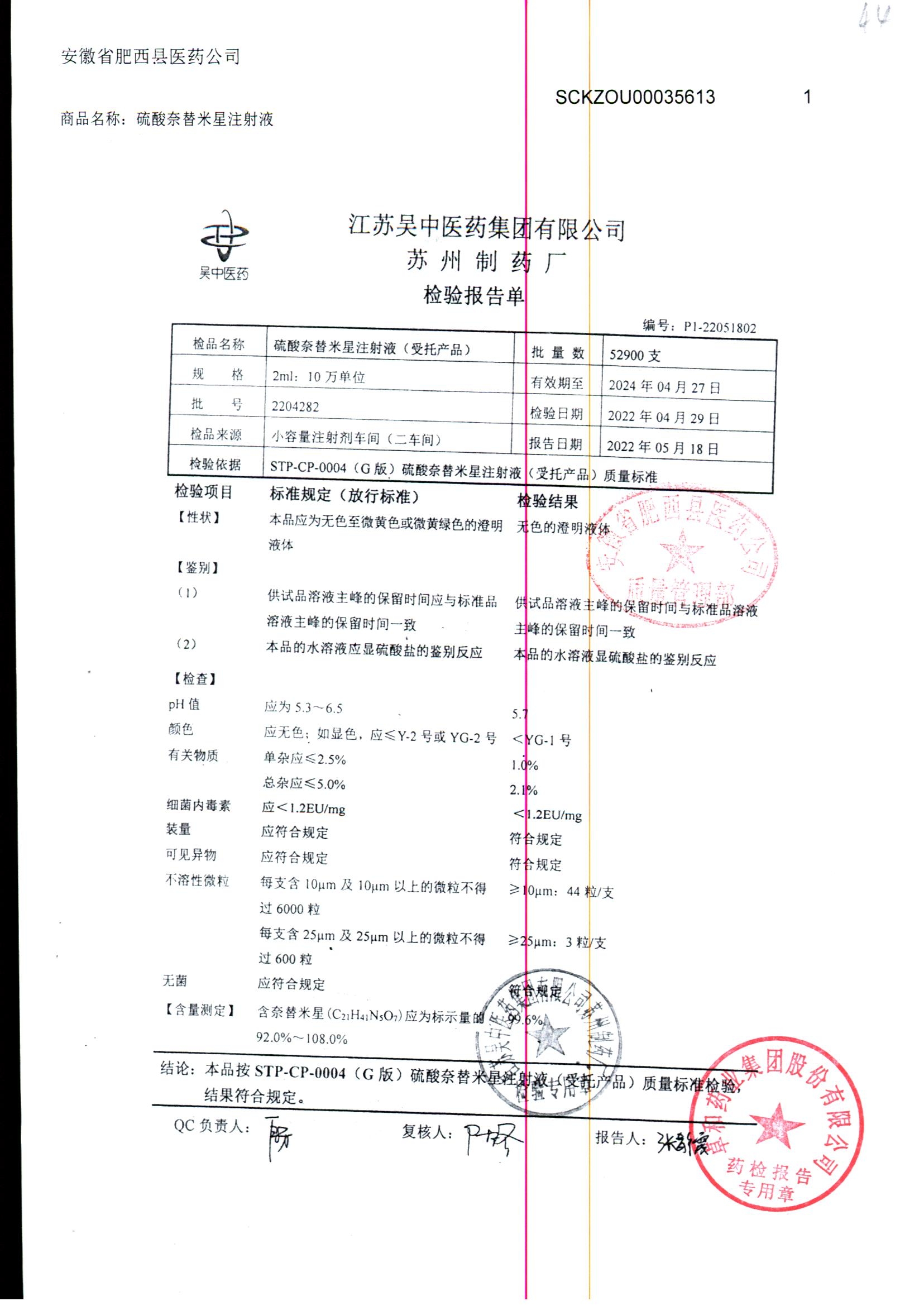 硫酸奈替米星注射液 | 2ml:10万单位 | 2207242 | 查看详情 |