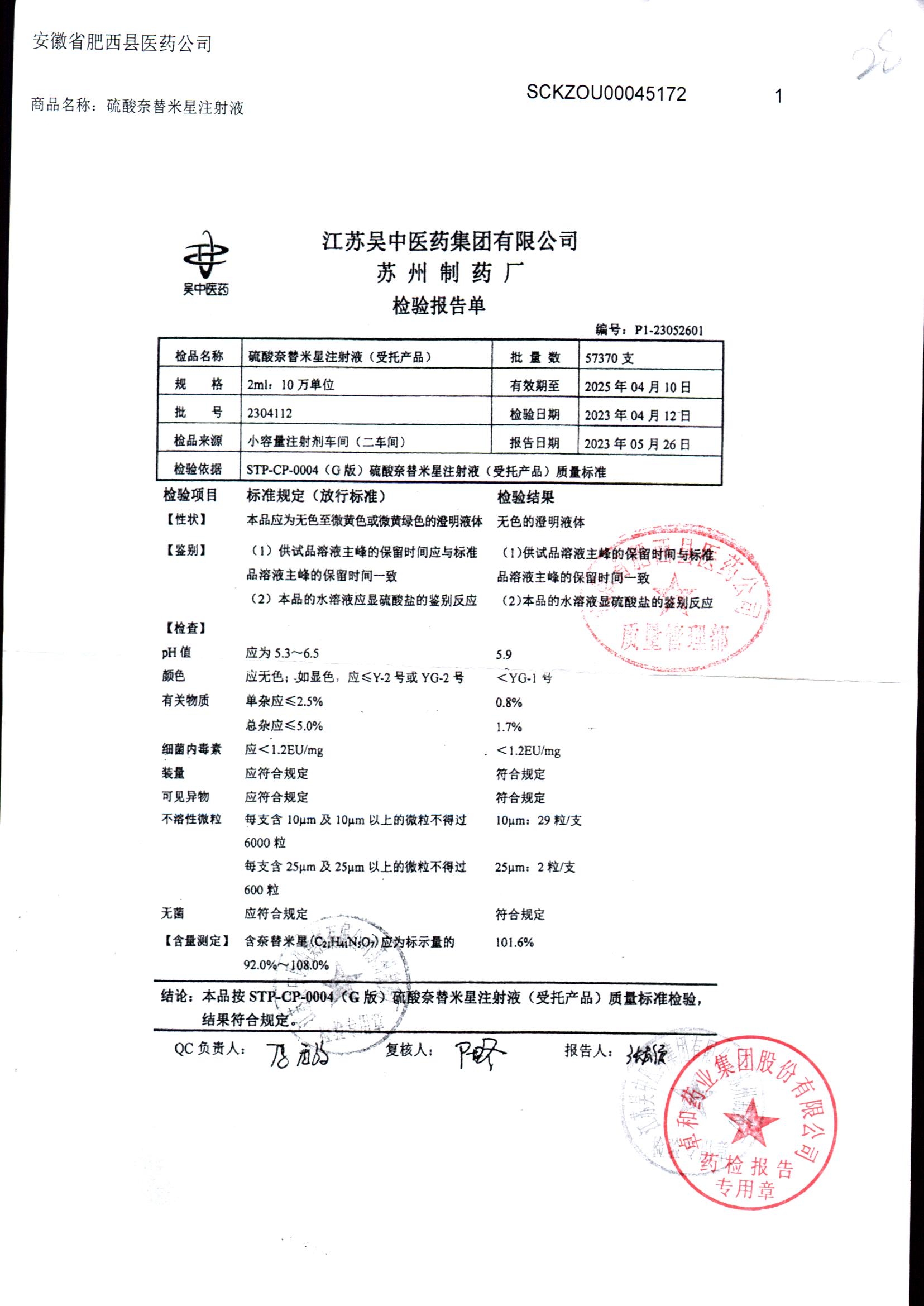 硫酸奈替米星注射液 | 2ml:10万单位 | 2304112 | 查看详情 |