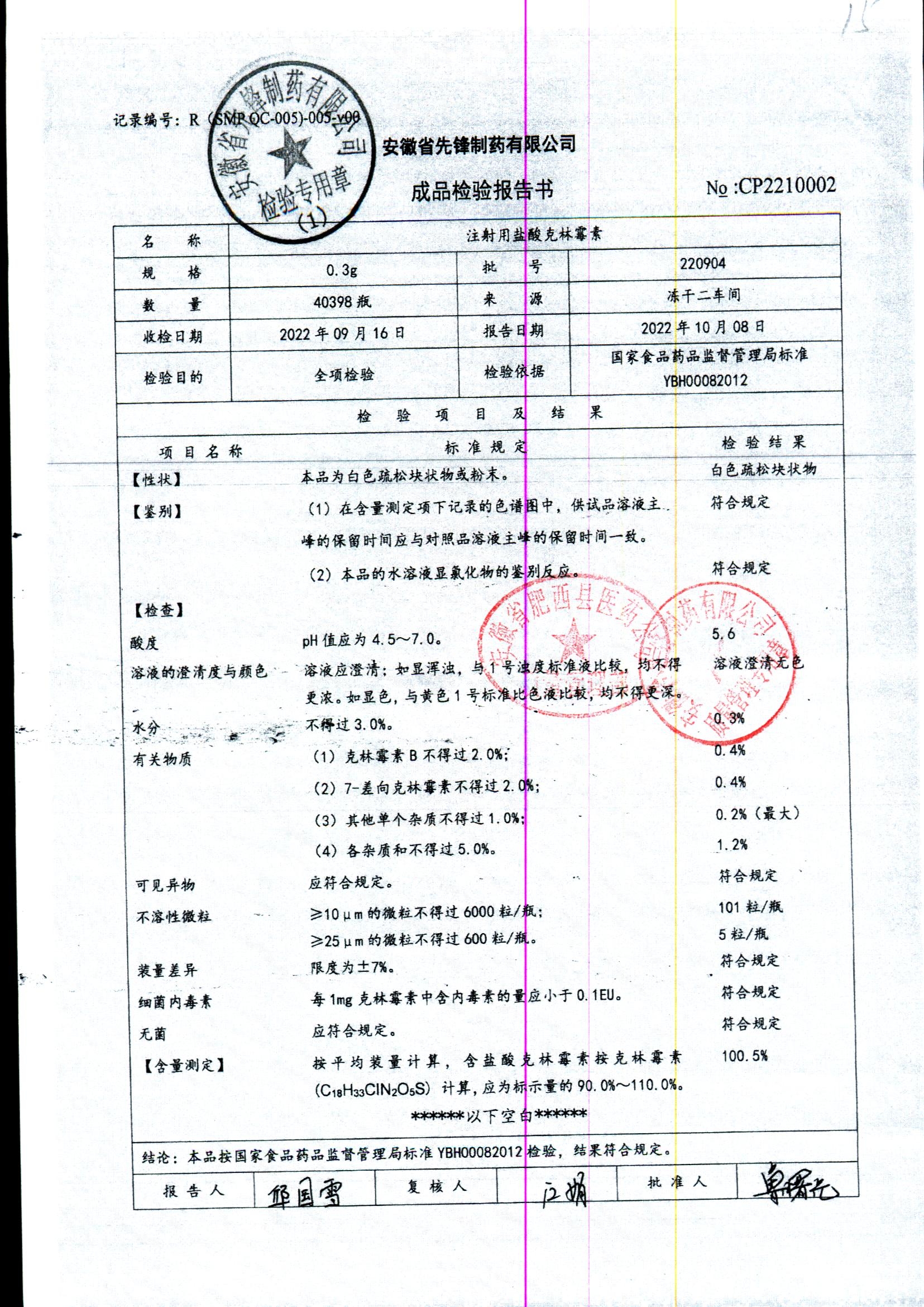 注射用盐酸克林霉素 | 0.3g | 220904 | 查看详情 |