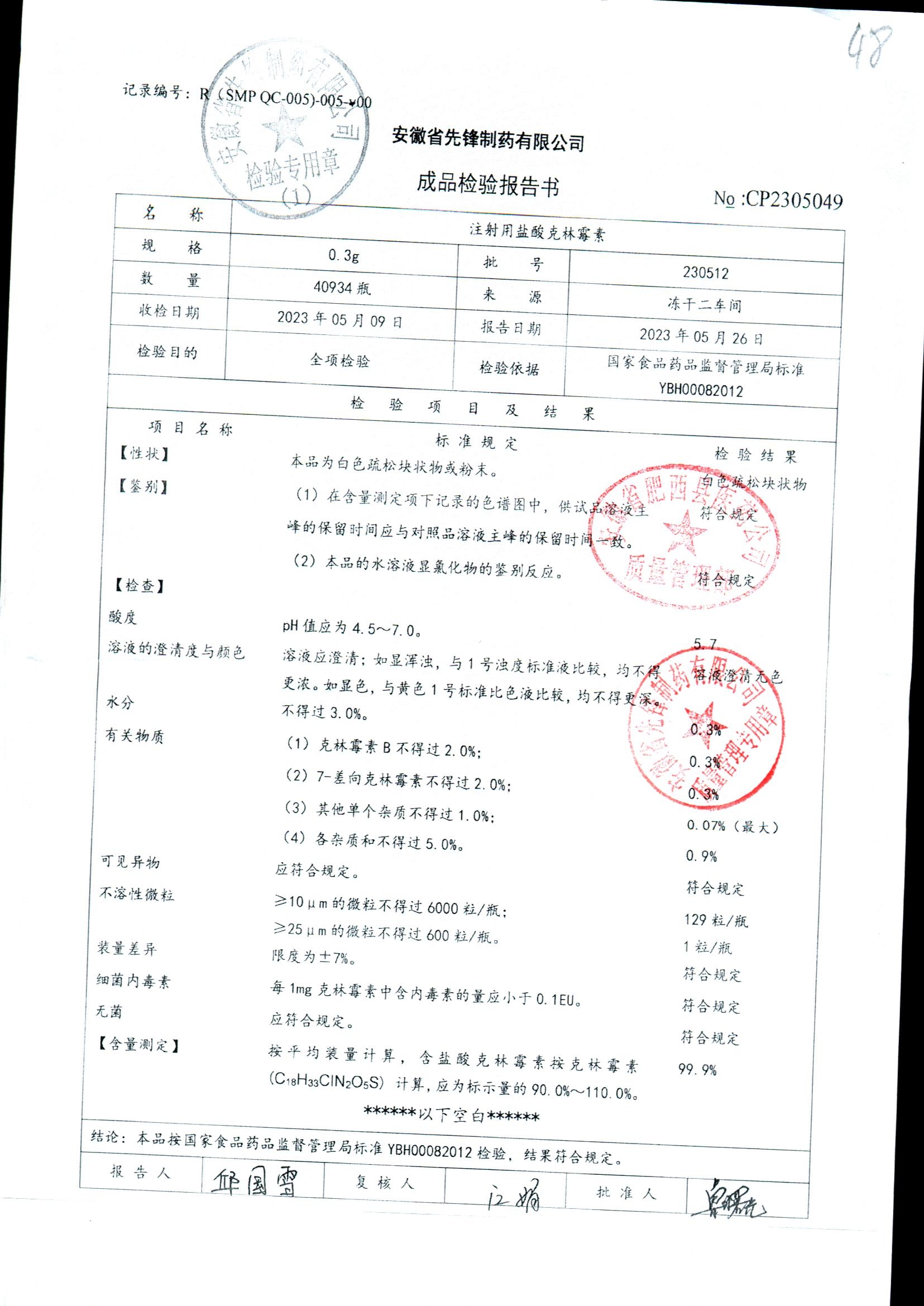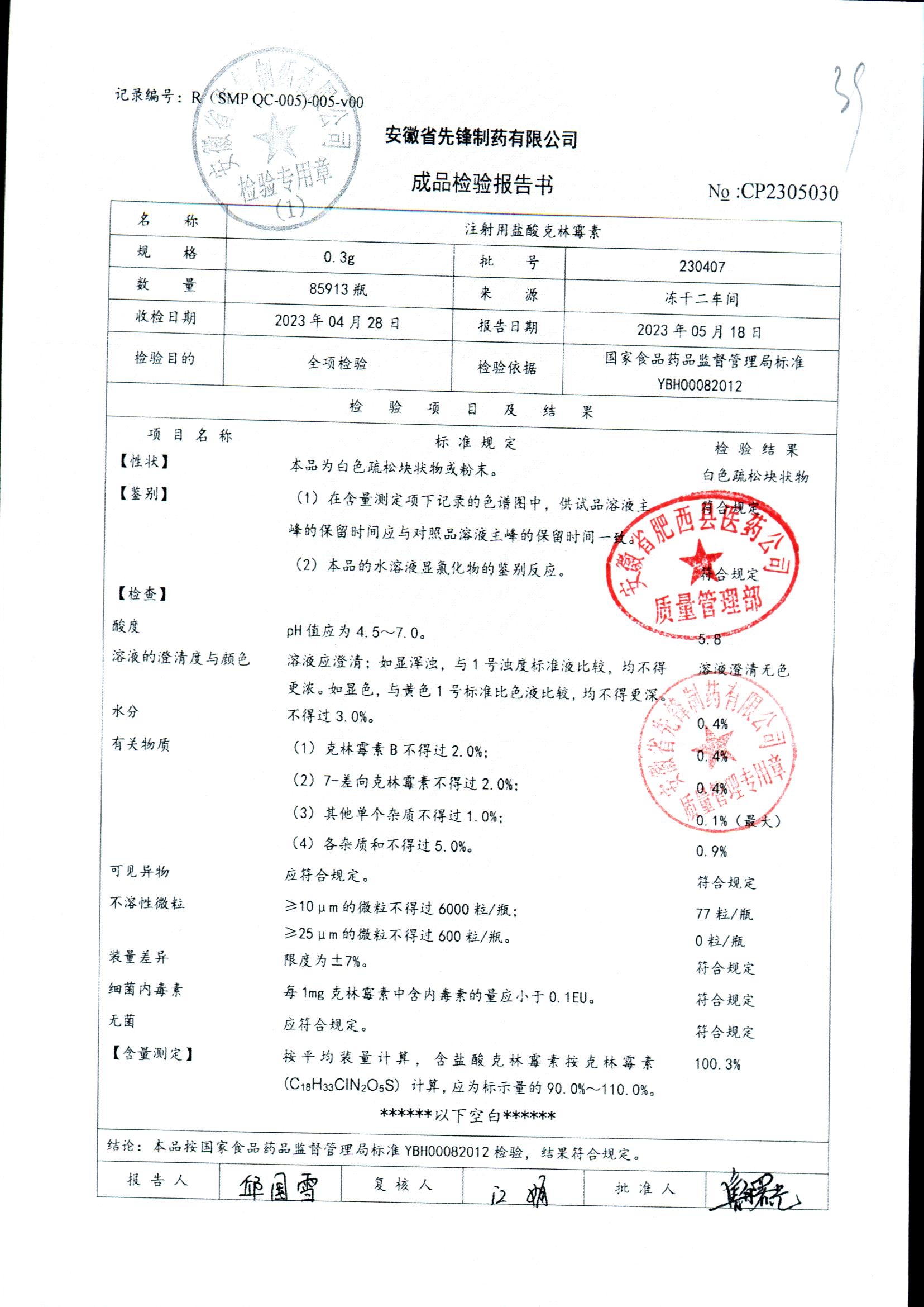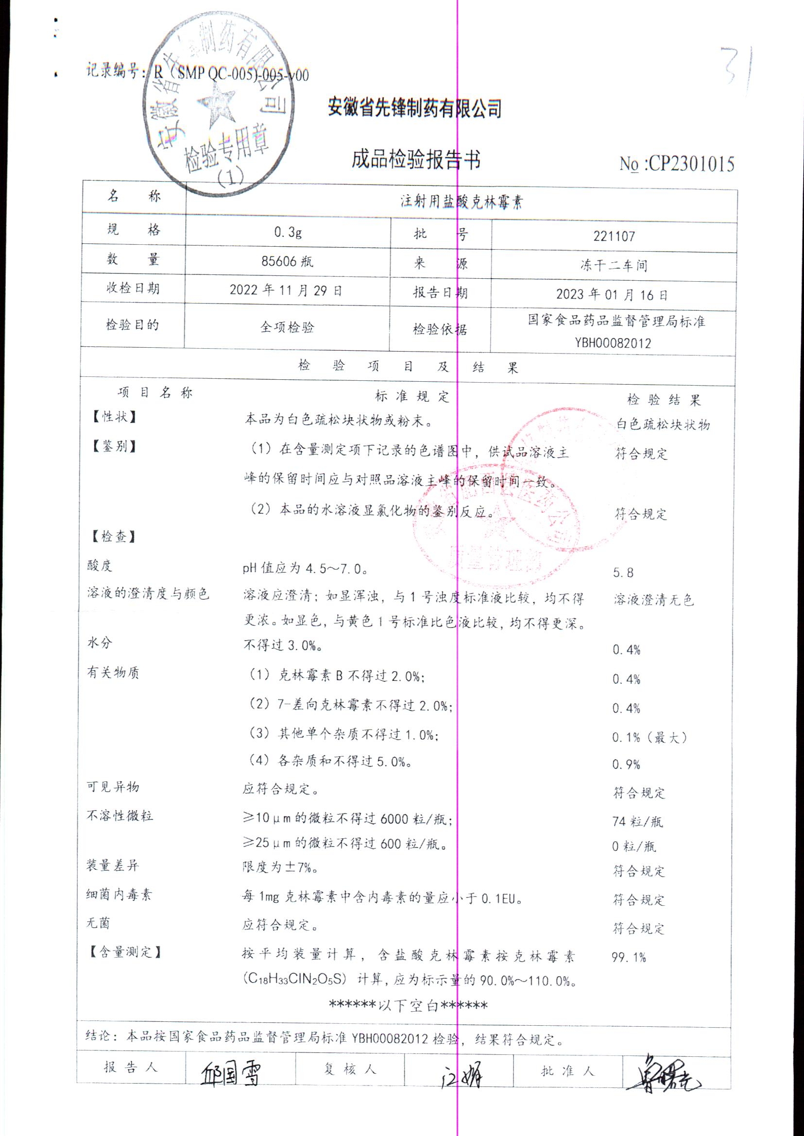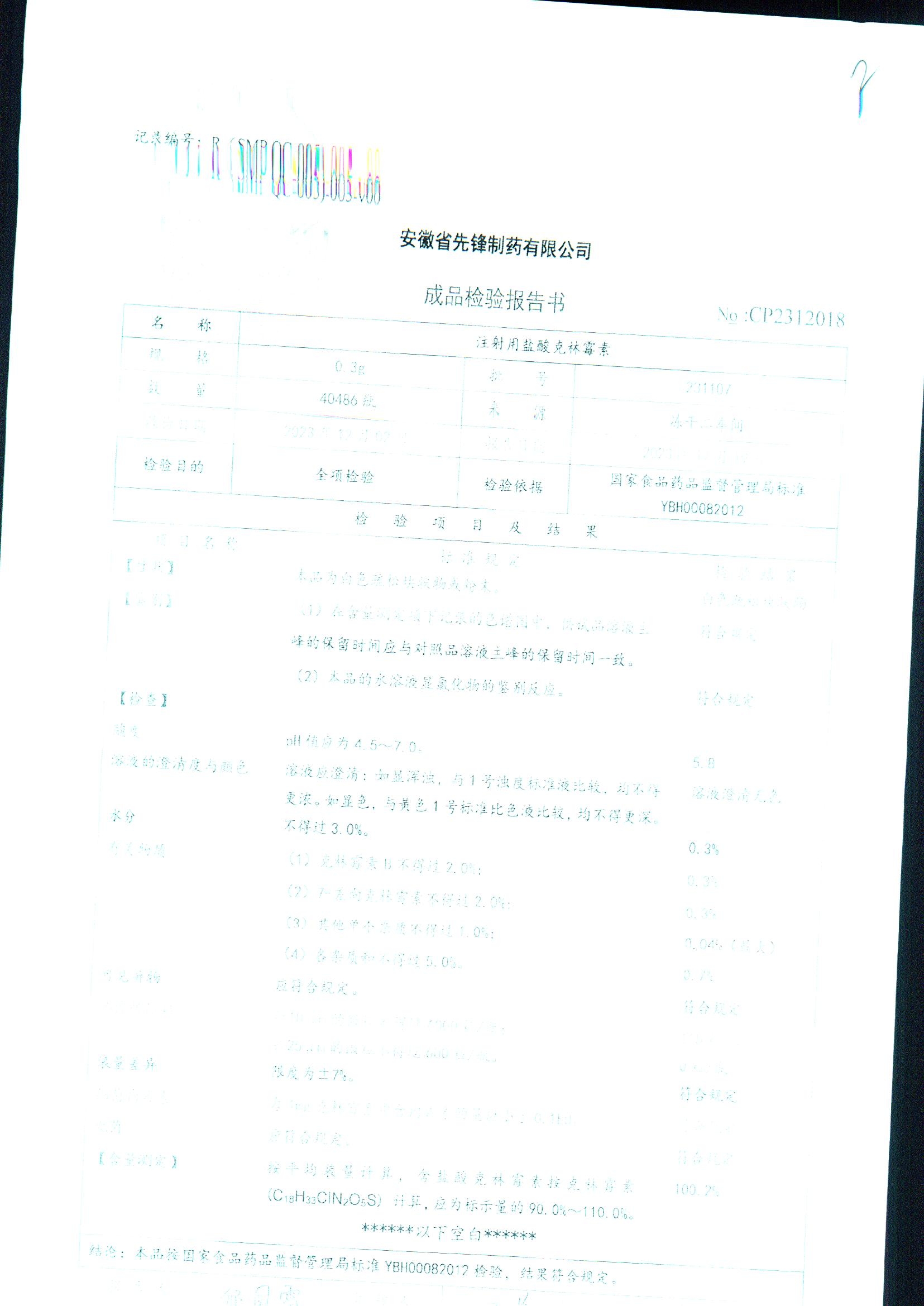 注射用盐酸克林霉素 | 0.3g | 230407 | 查看详情 |