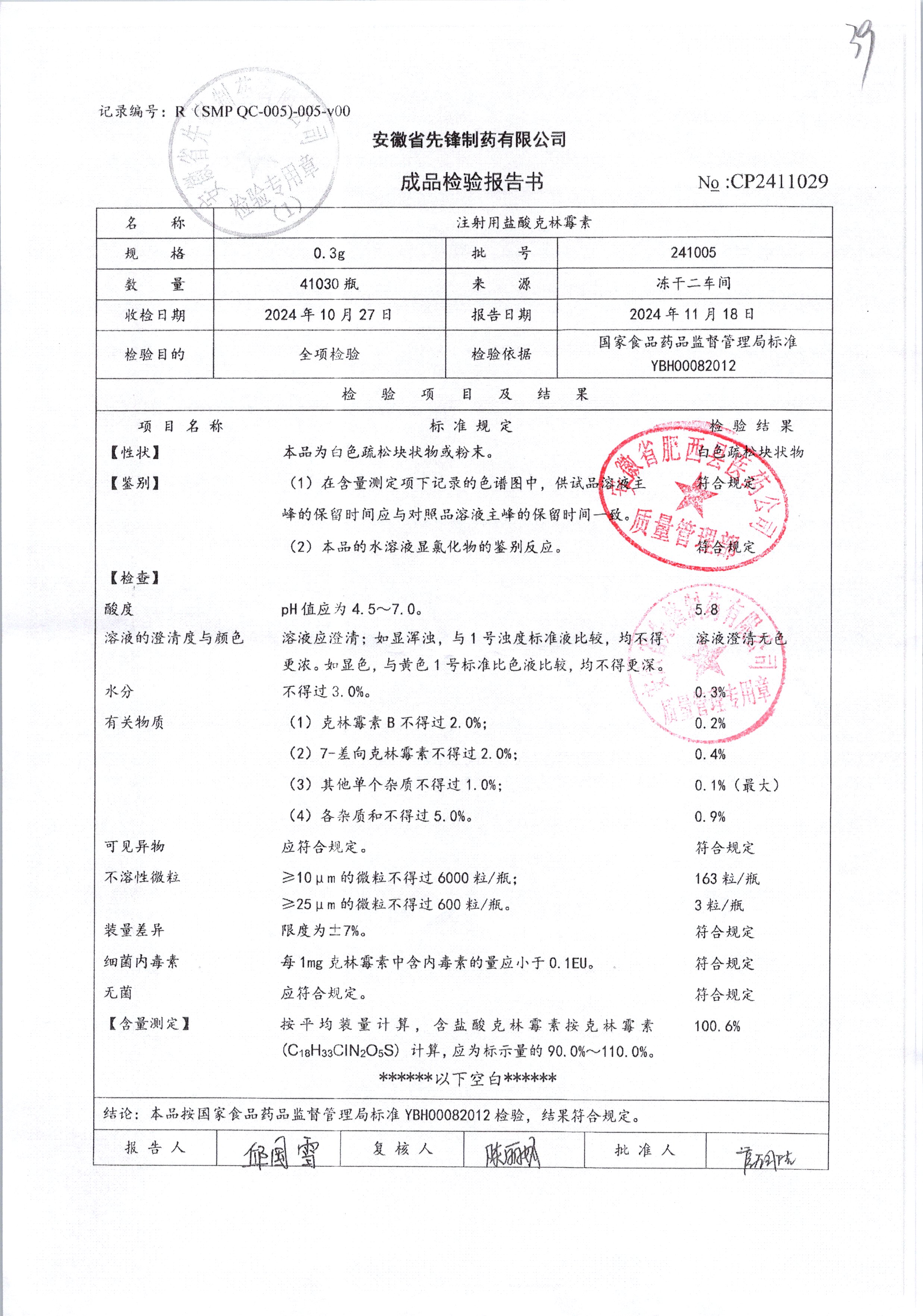 名称 | 规格 | 批号 | 药检报告 |