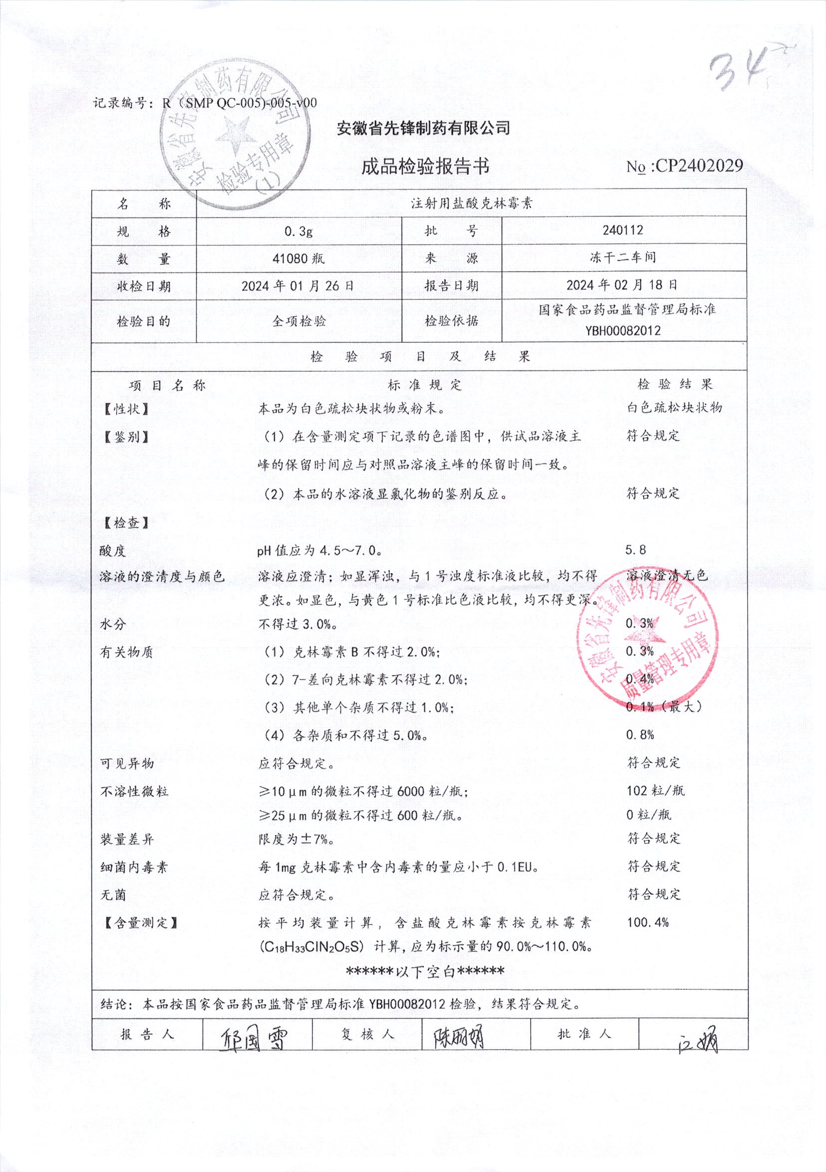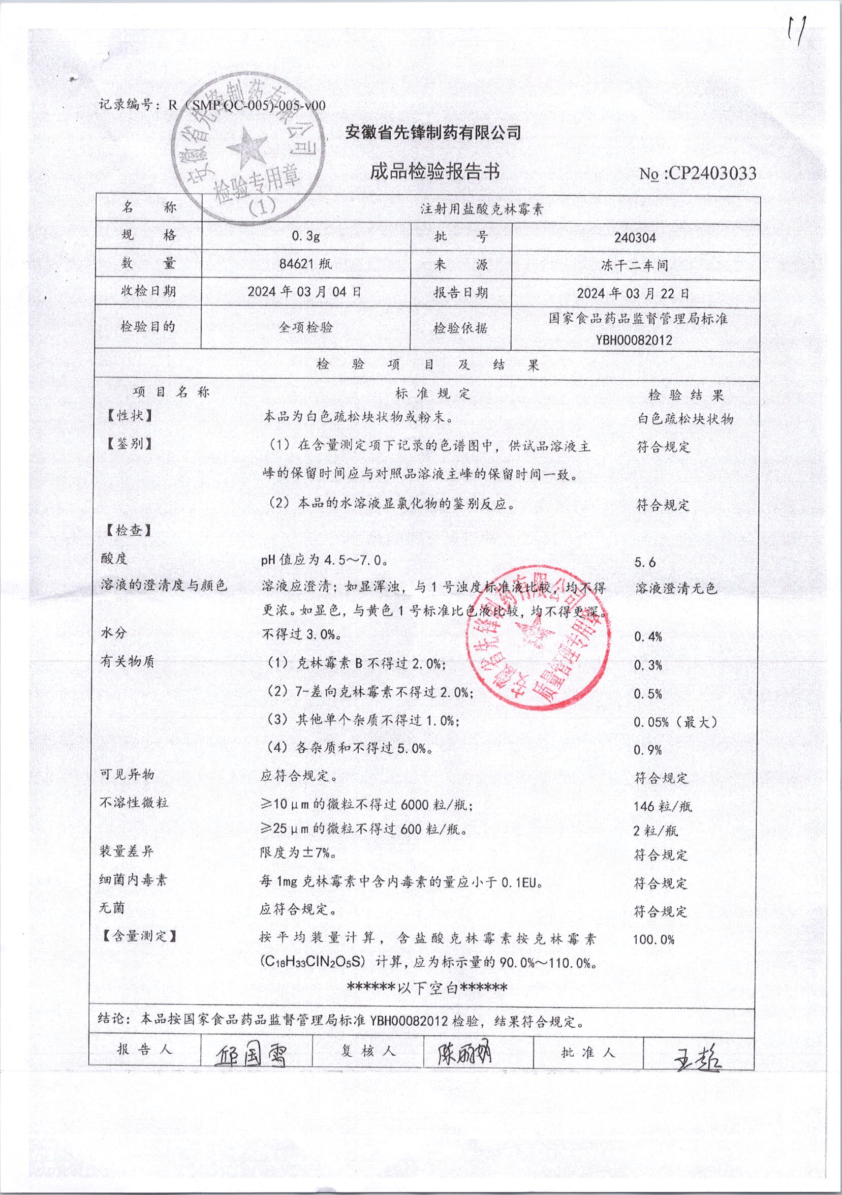 注射用盐酸克林霉素 | 0.3g | 240304 | 查看详情 |