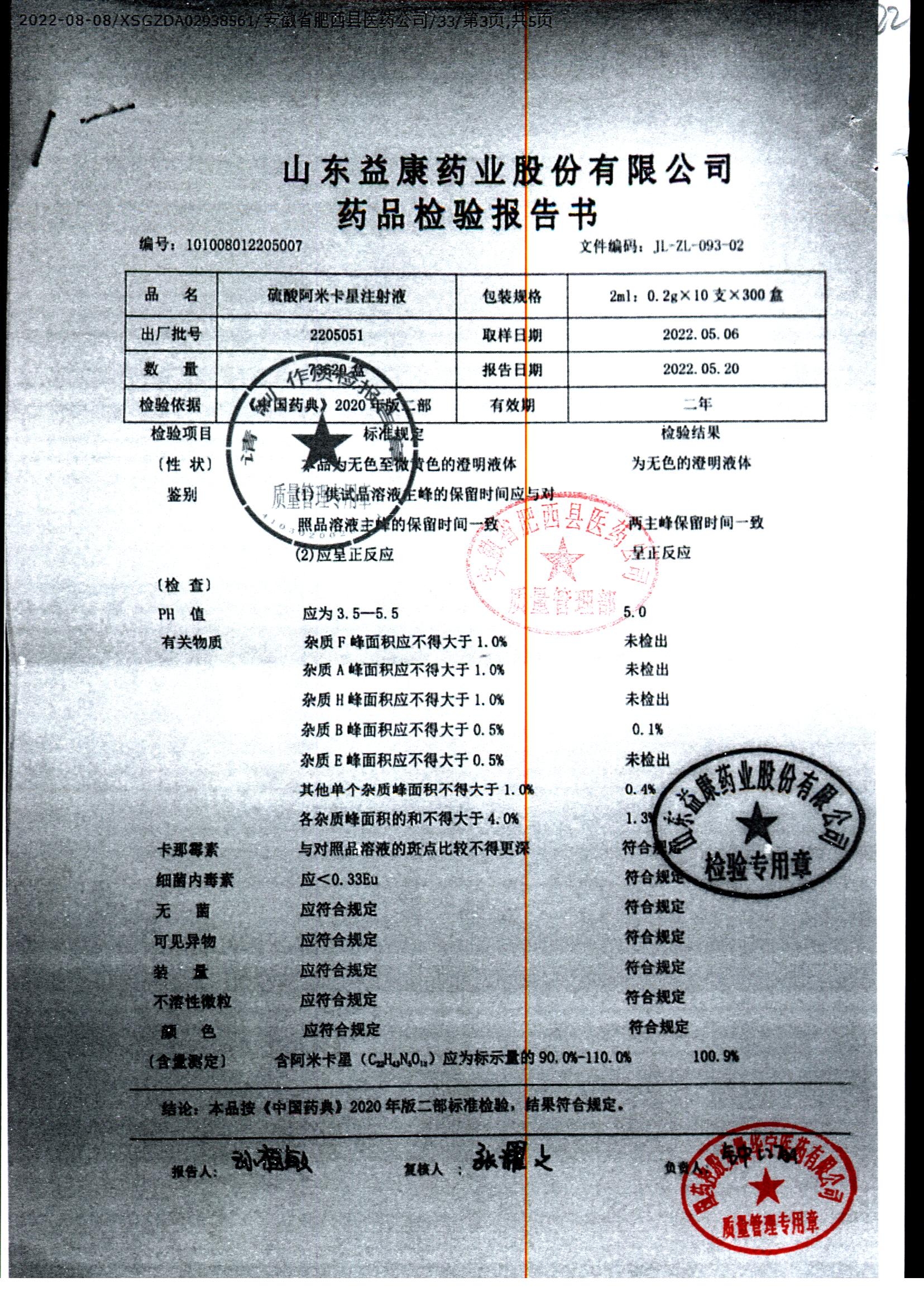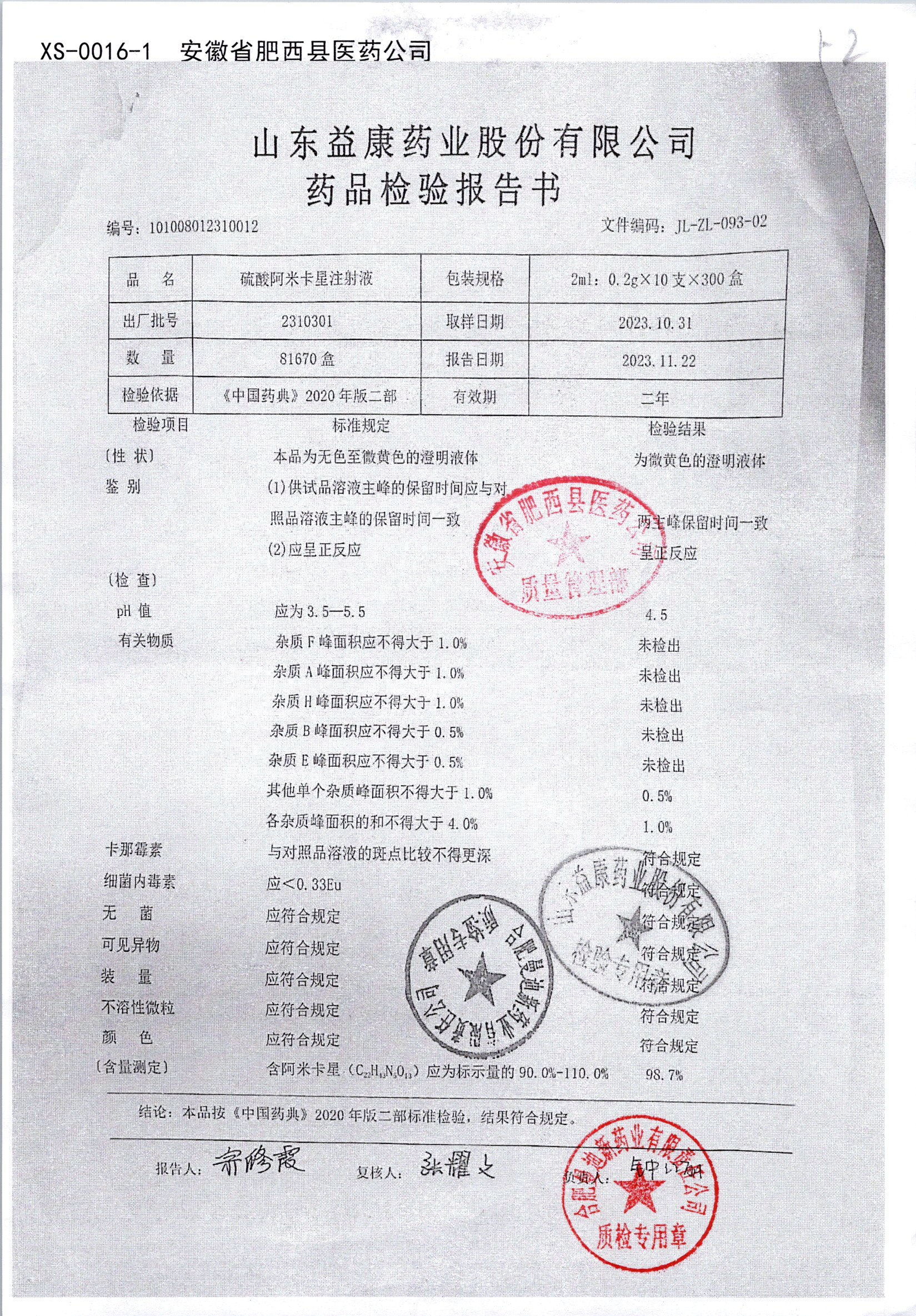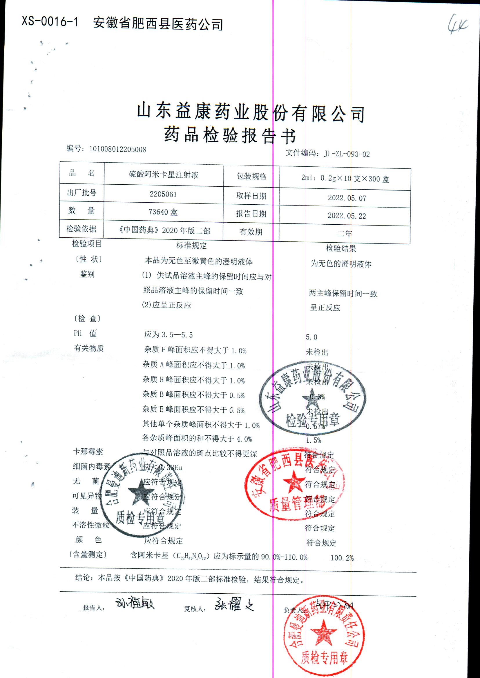 硫酸阿米卡星注射液 | 2ml:0.2g*10支 | 2205051 | 查看详情 |
