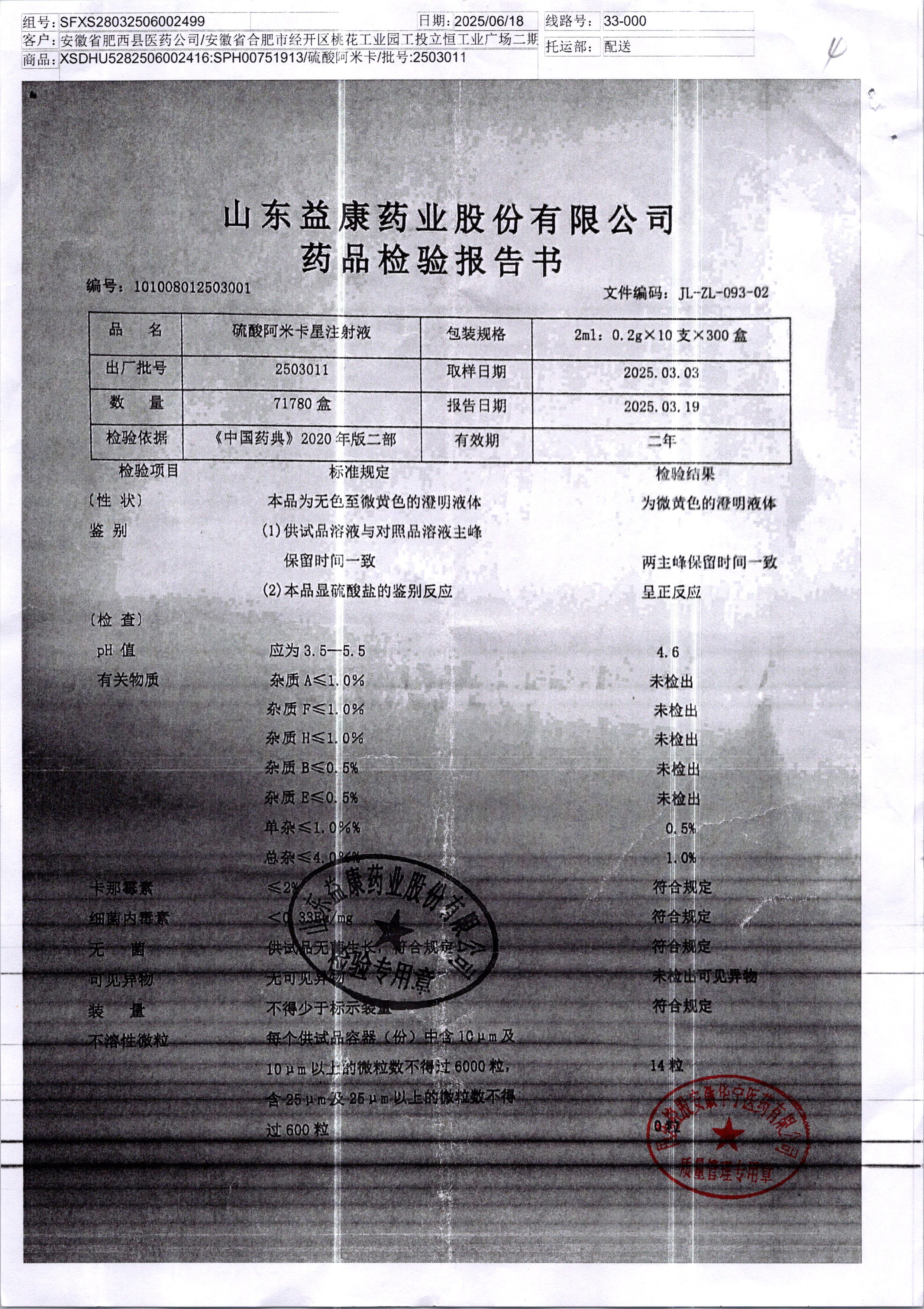 硫酸阿米卡星注射液 | 2ml:0.2g*10支 | 2503011 | 查看详情 |