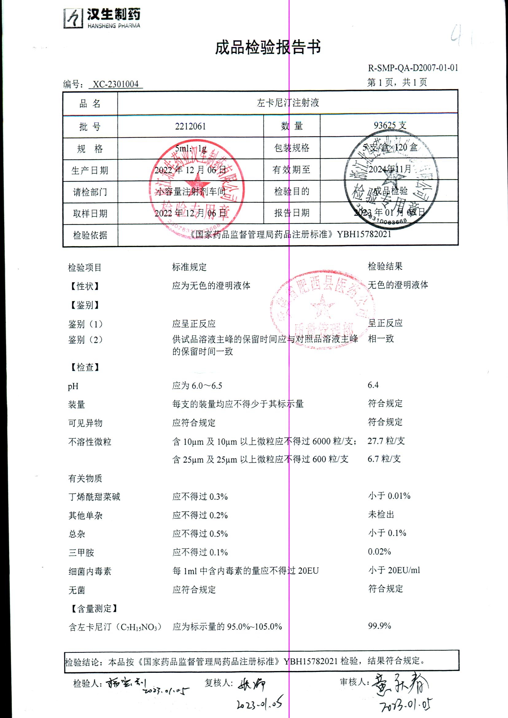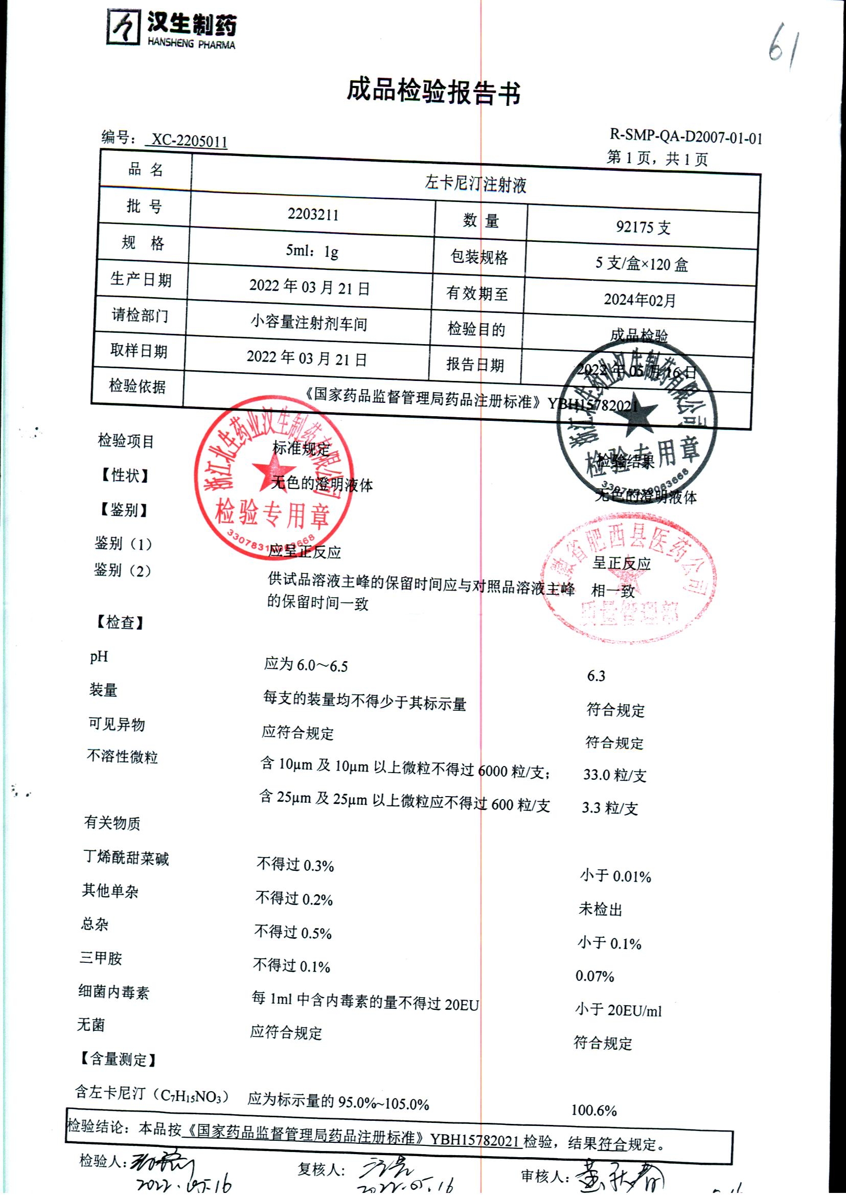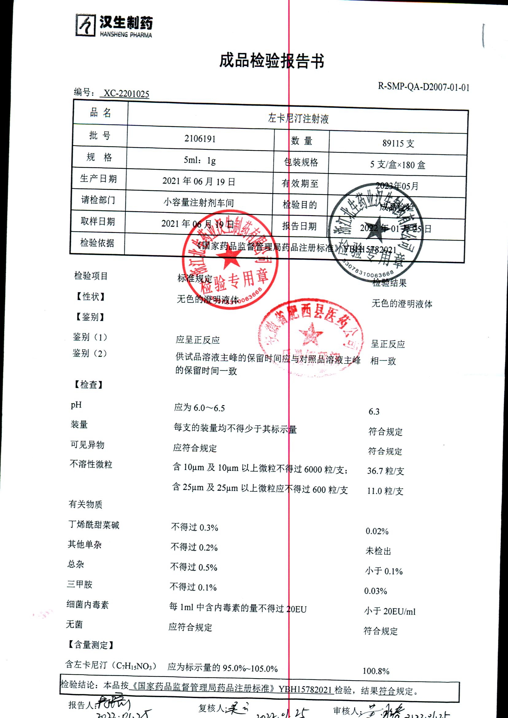 左卡尼汀注射液 | 5ml:1g*5支 | 2212061 | 查看详情 |