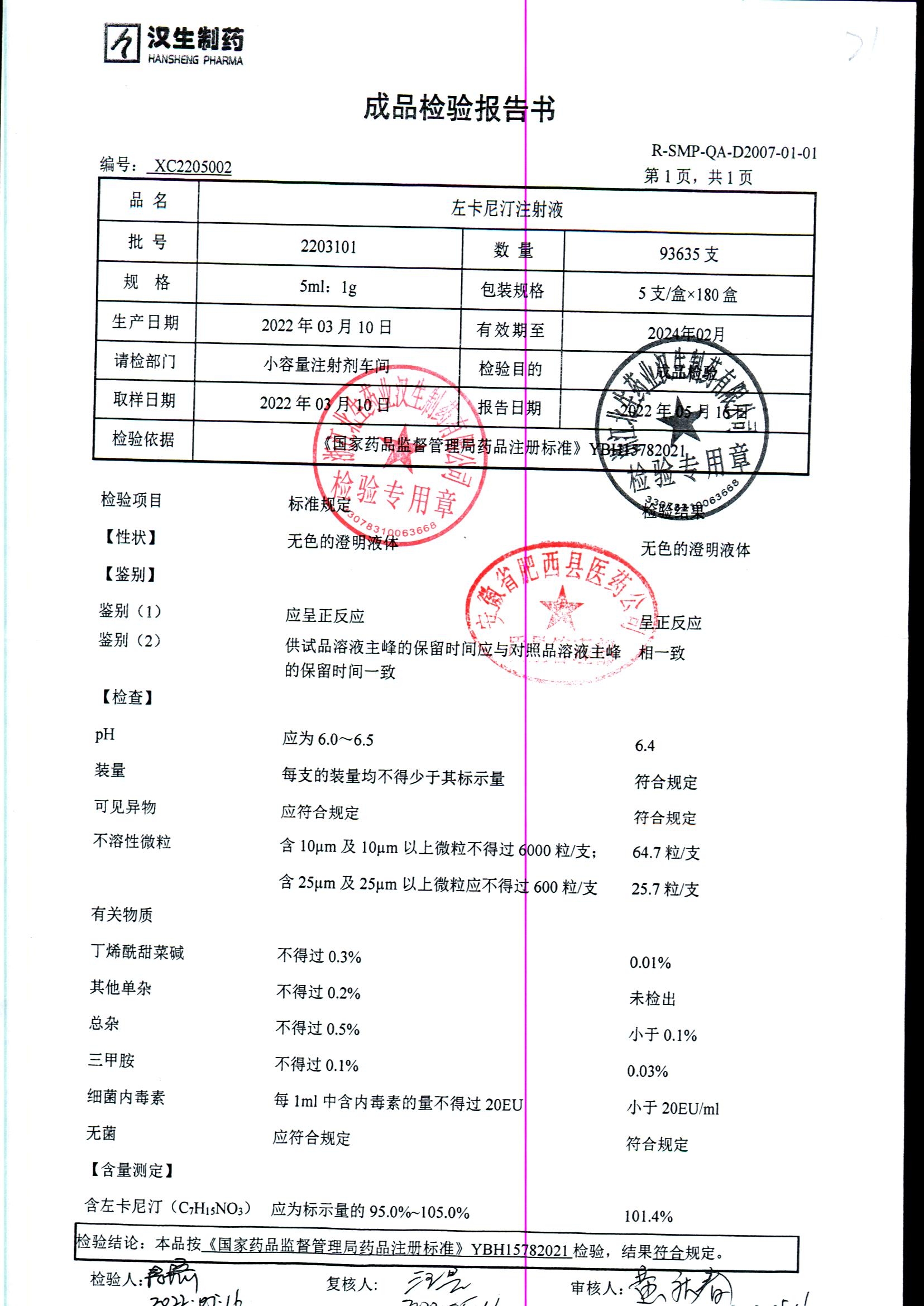 左卡尼汀注射液 | 5ml:1g*5支 | 2203101 | 查看详情 |