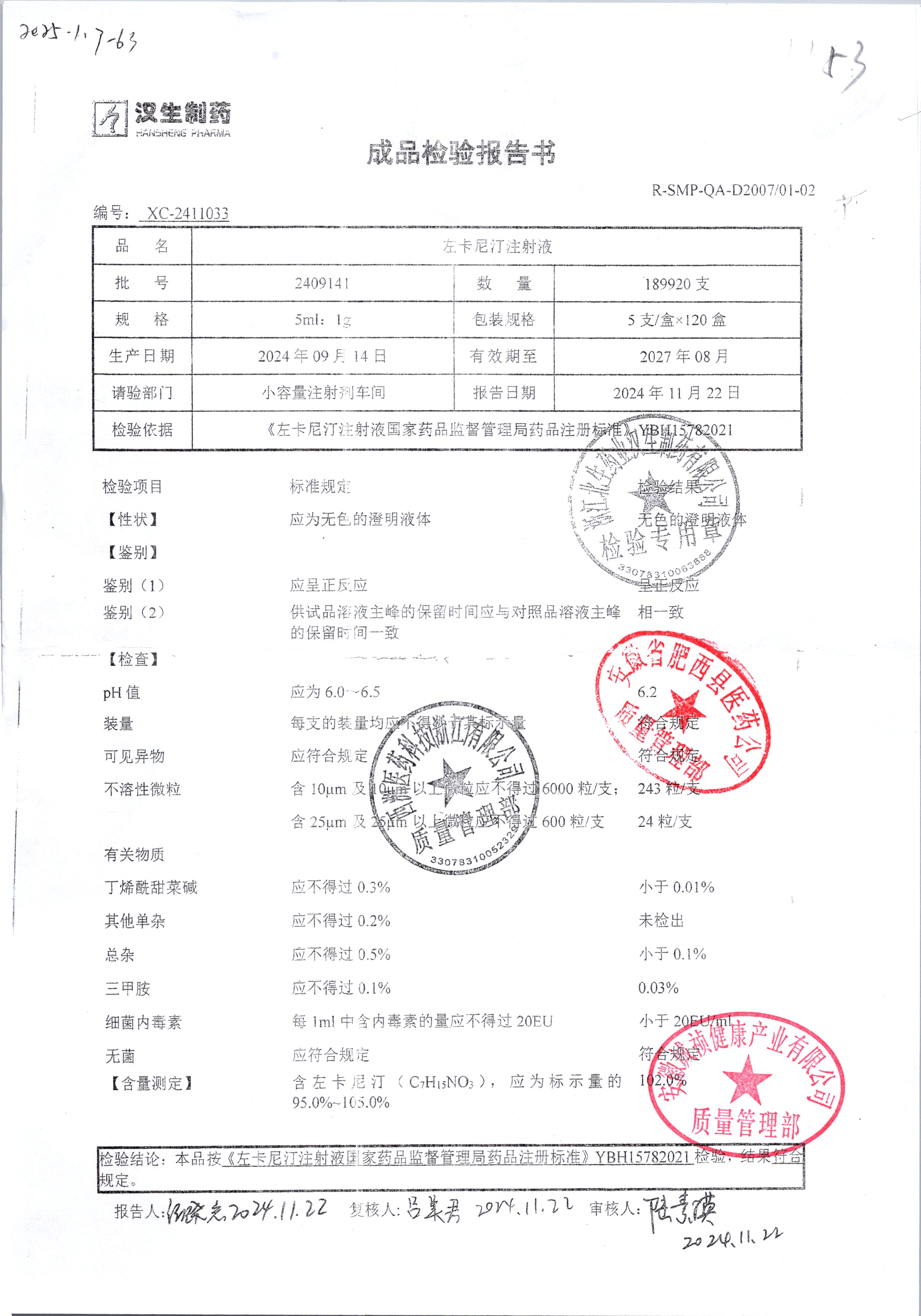 左卡尼汀注射液 | 5ml:1g*5支 | 2409141 | 查看详情 |
