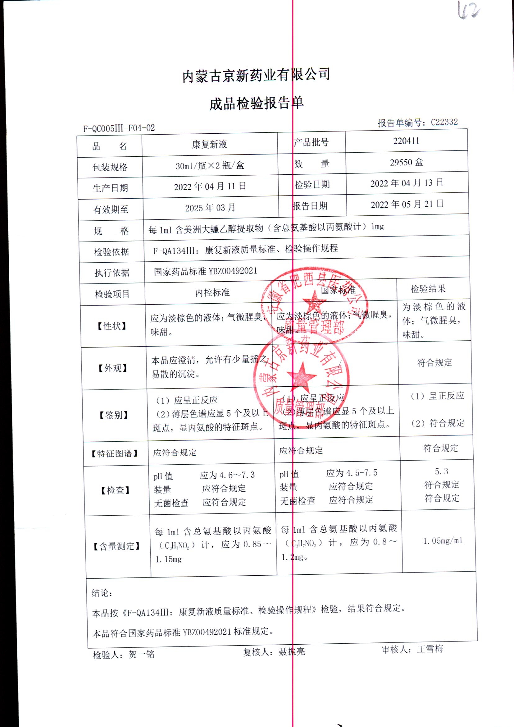 药检报告
