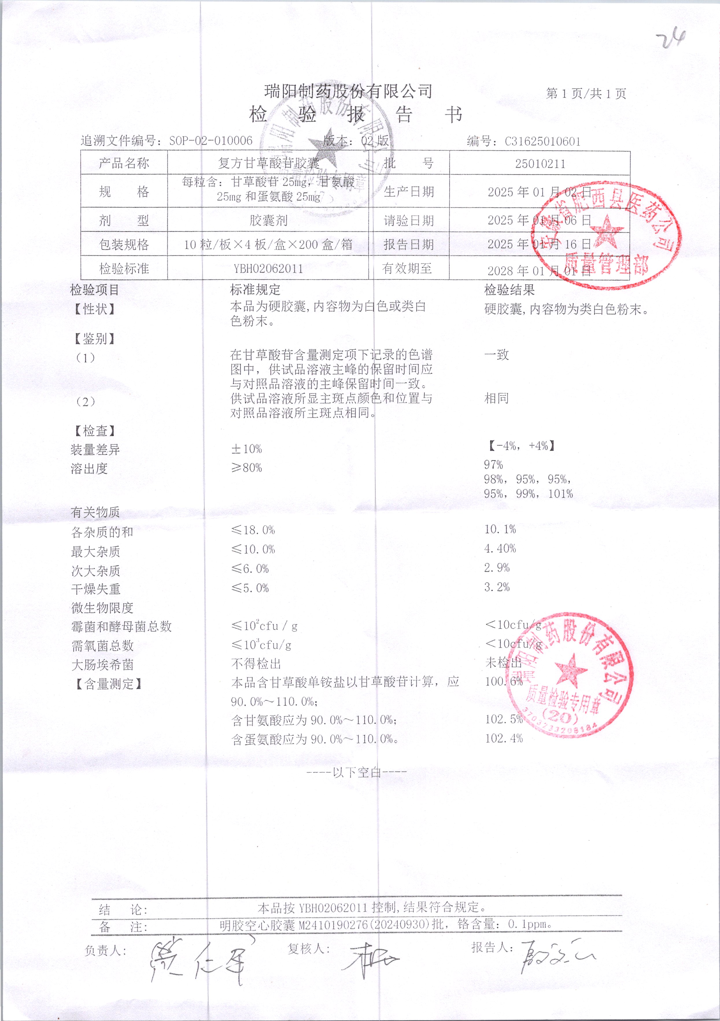 | 复方甘草酸苷胶囊 | 25mg*24s | 25010211 | 查看详情 |