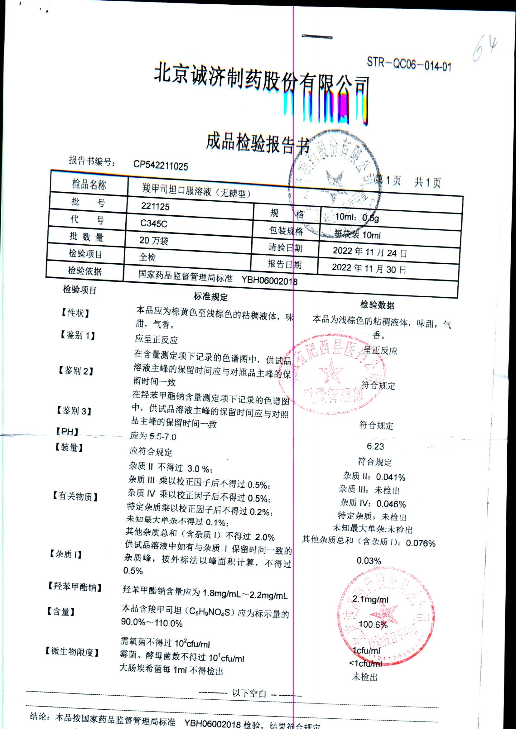 羧甲司坦口服溶液 | 10ml:0.5g | 221125 | 查看详情 |