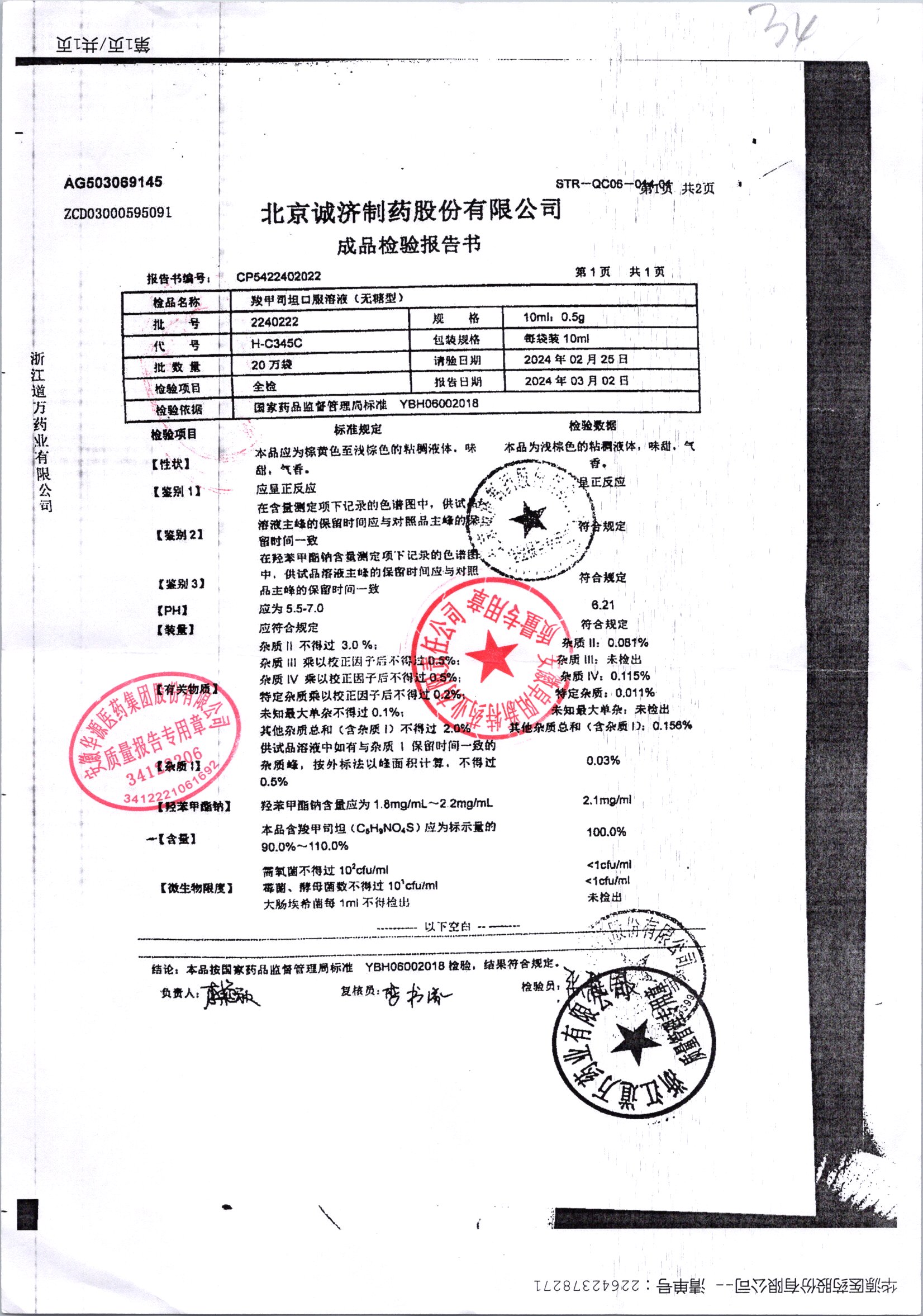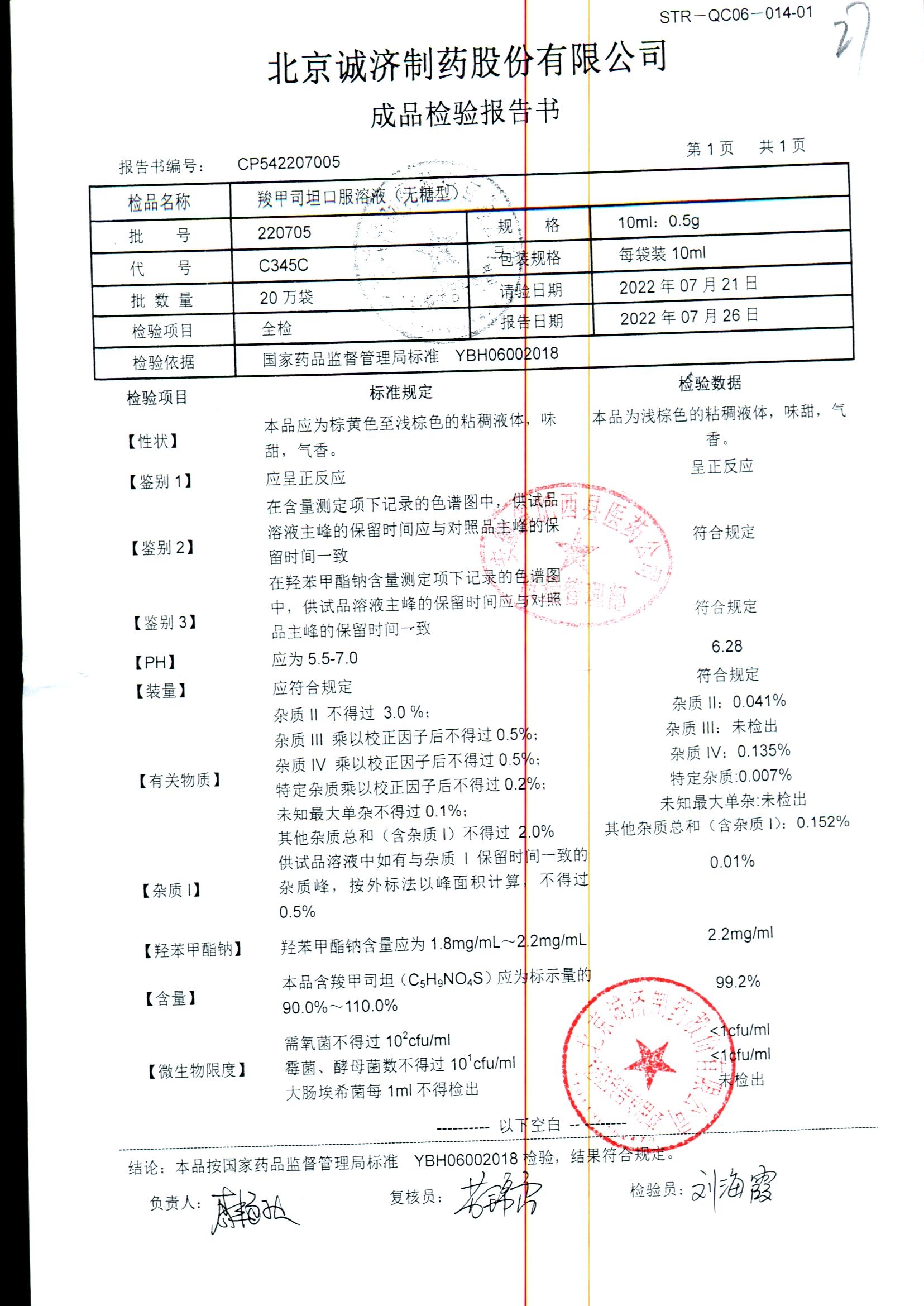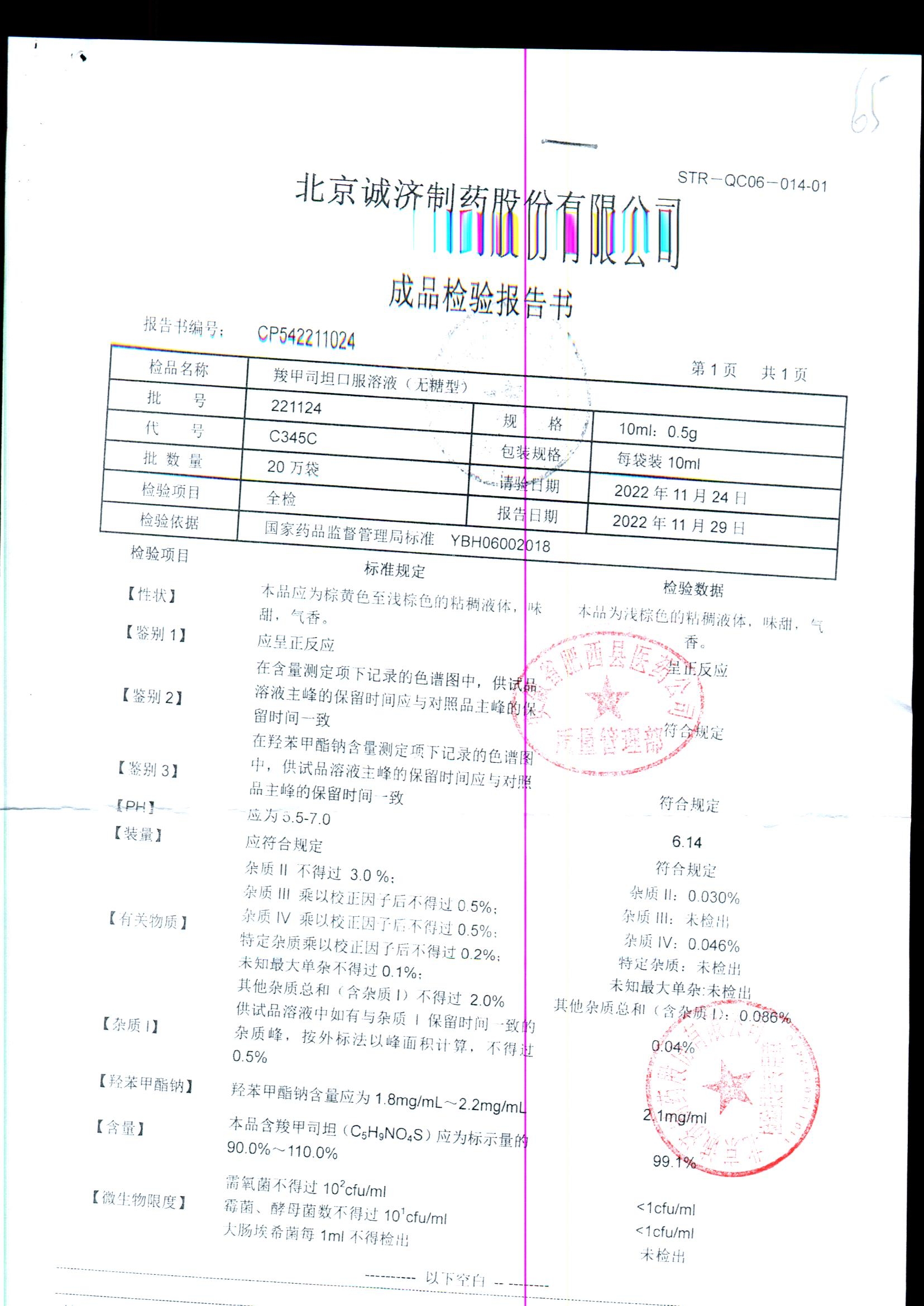 羧甲司坦口服溶液 | 10ml:0.5g | 220705 | 查看详情 |
