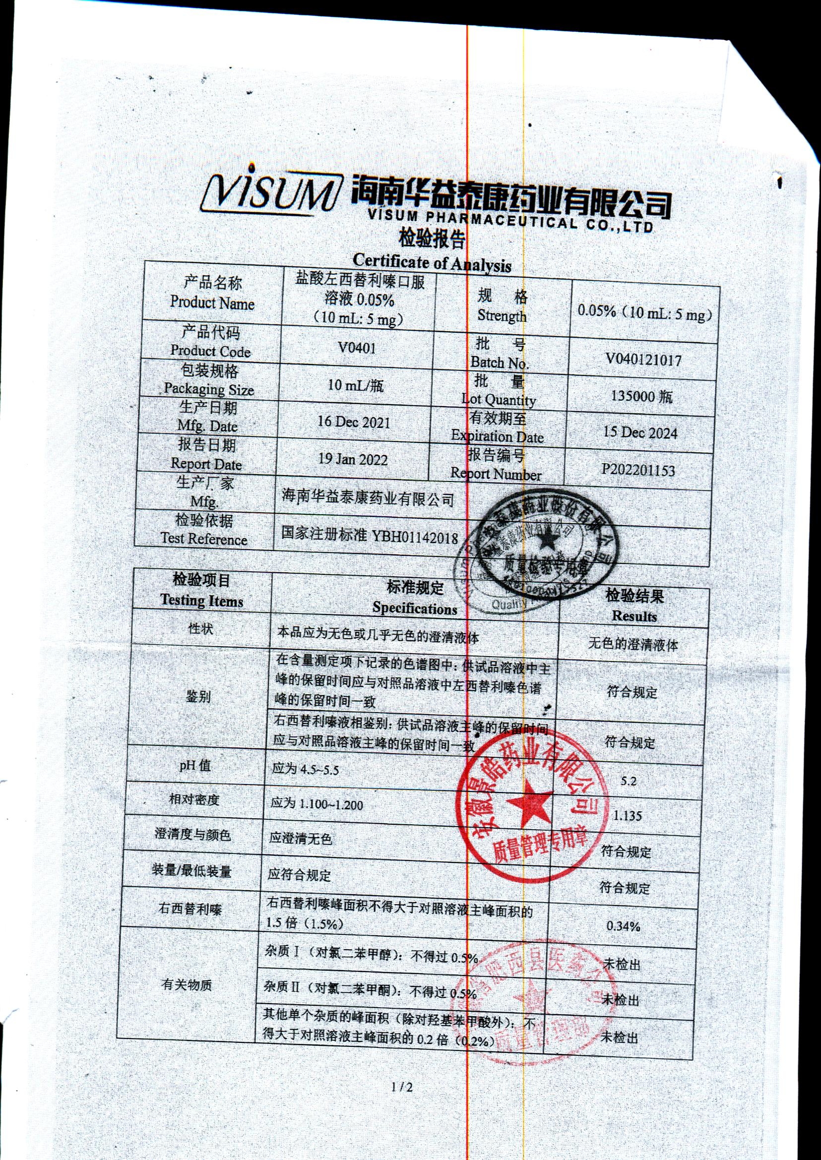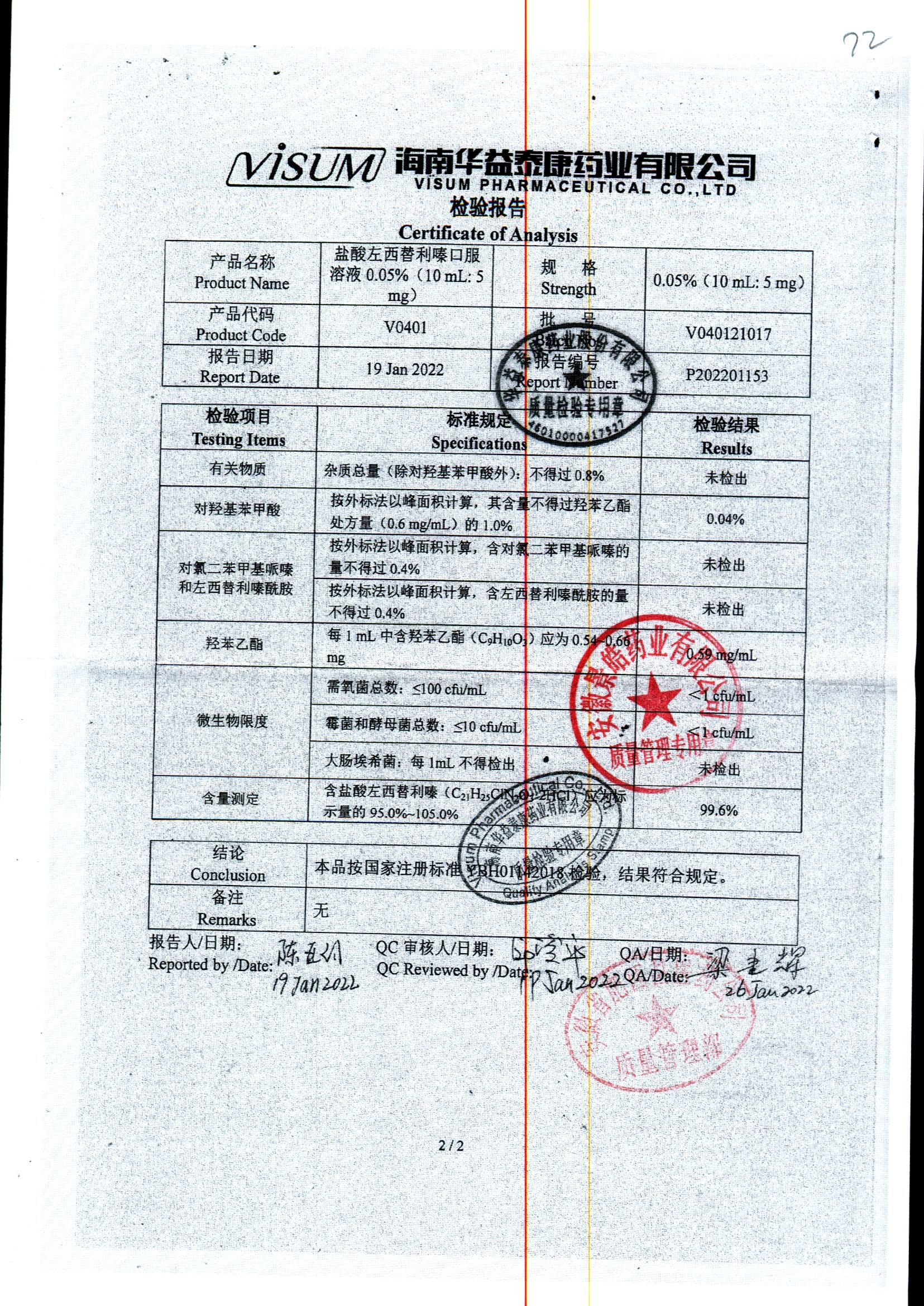药检报告