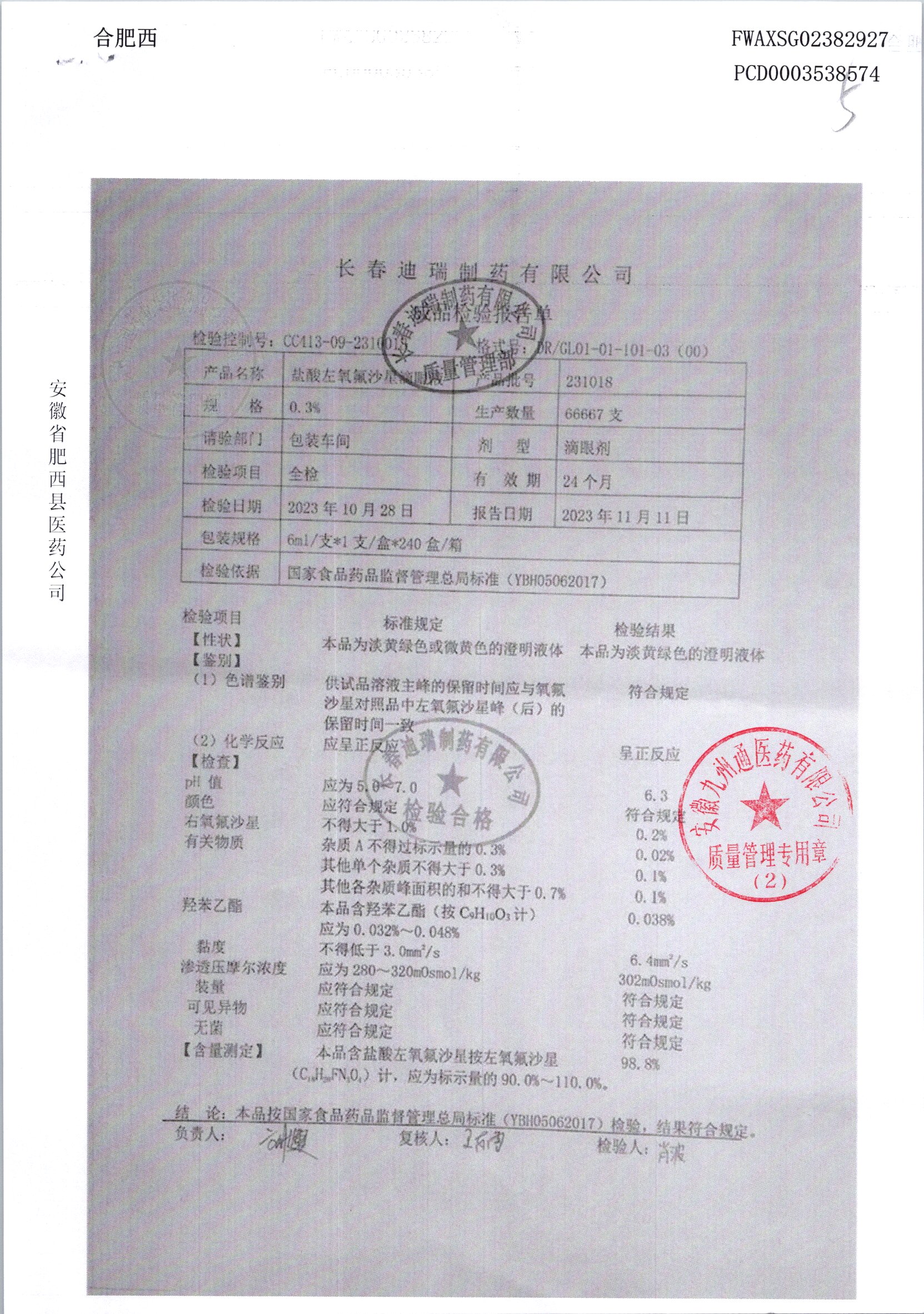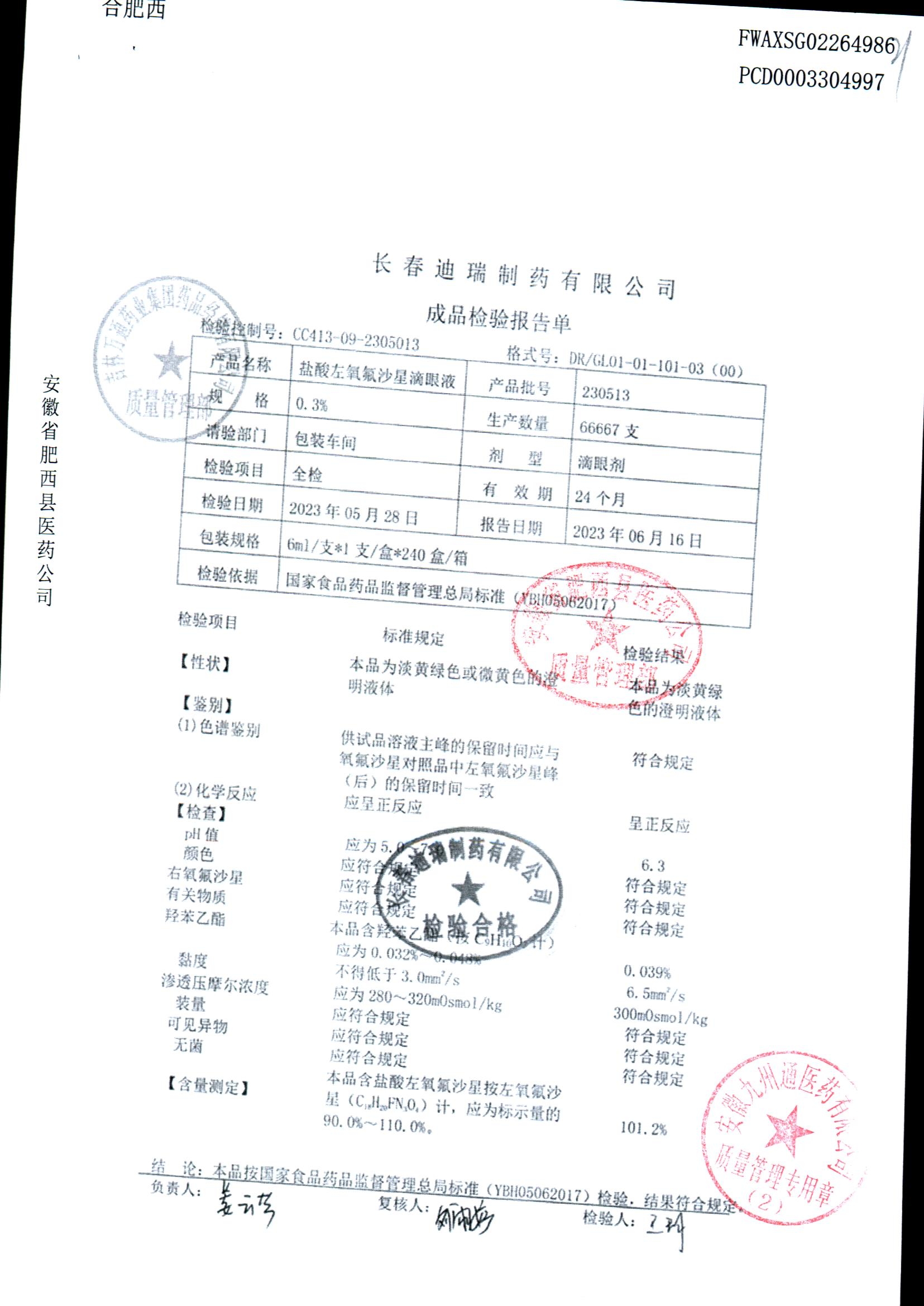 盐酸左氧氟沙星滴眼液 | 0.3g | 231018 | 查看详情 |