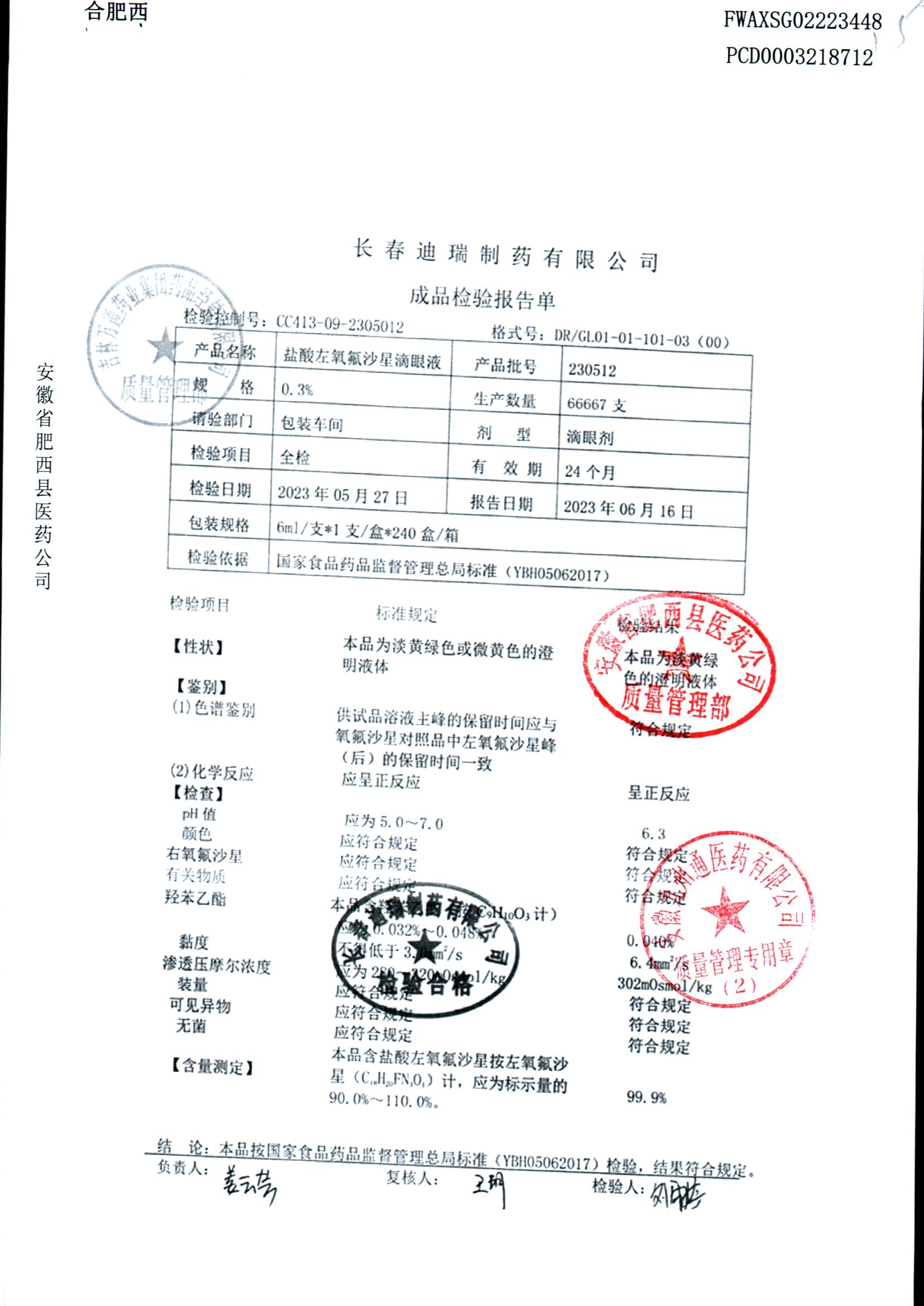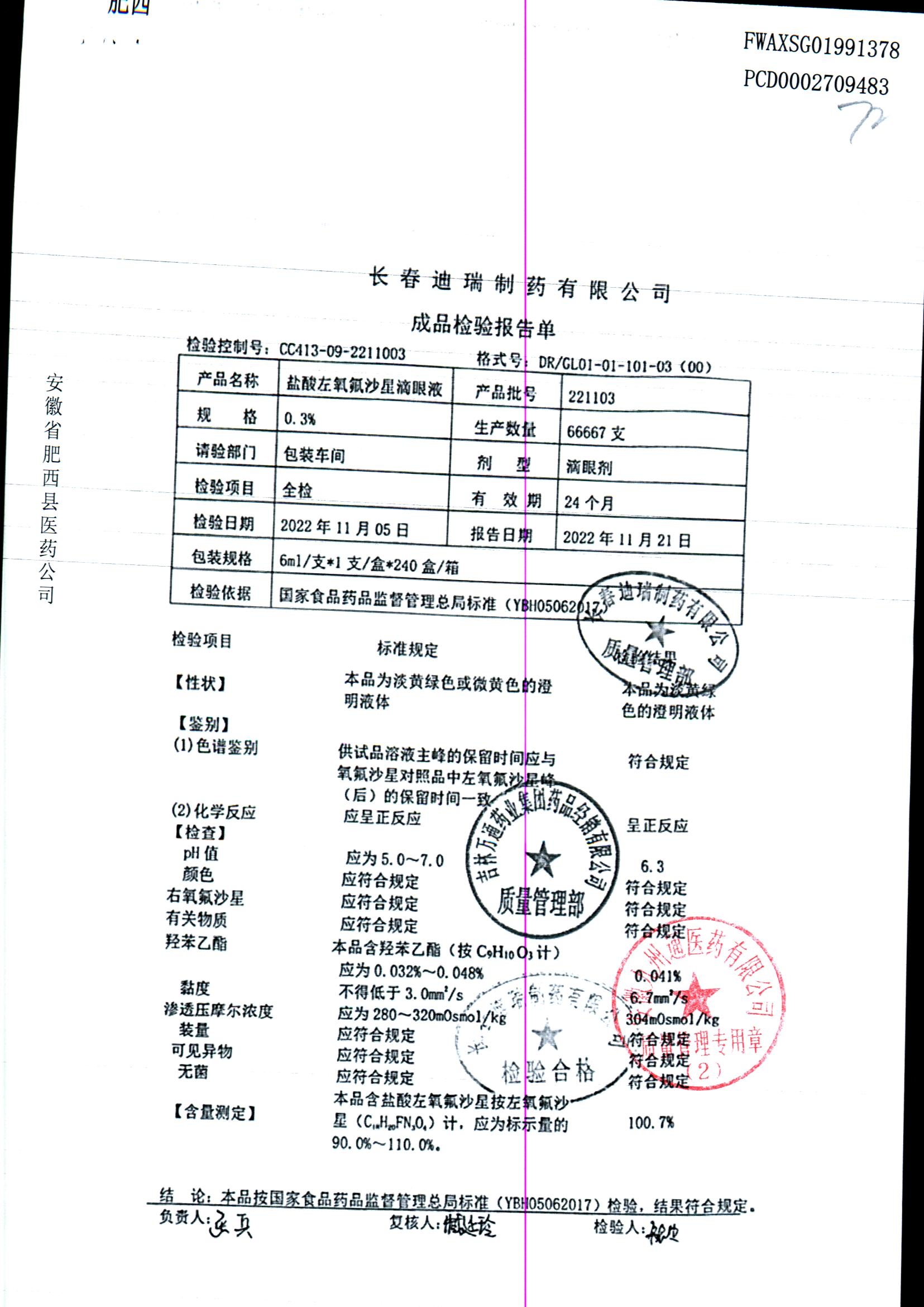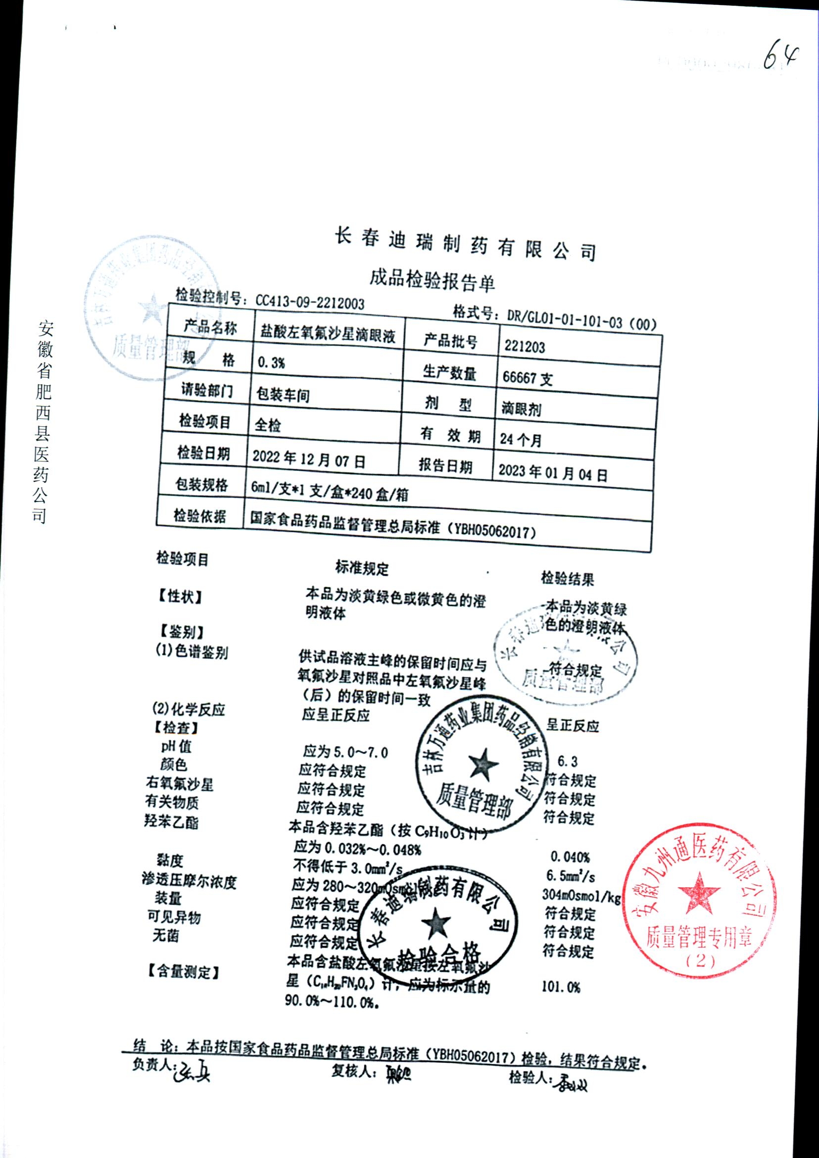 盐酸左氧氟沙星滴眼液 | 0.3g | 220506 | 查看详情 |
