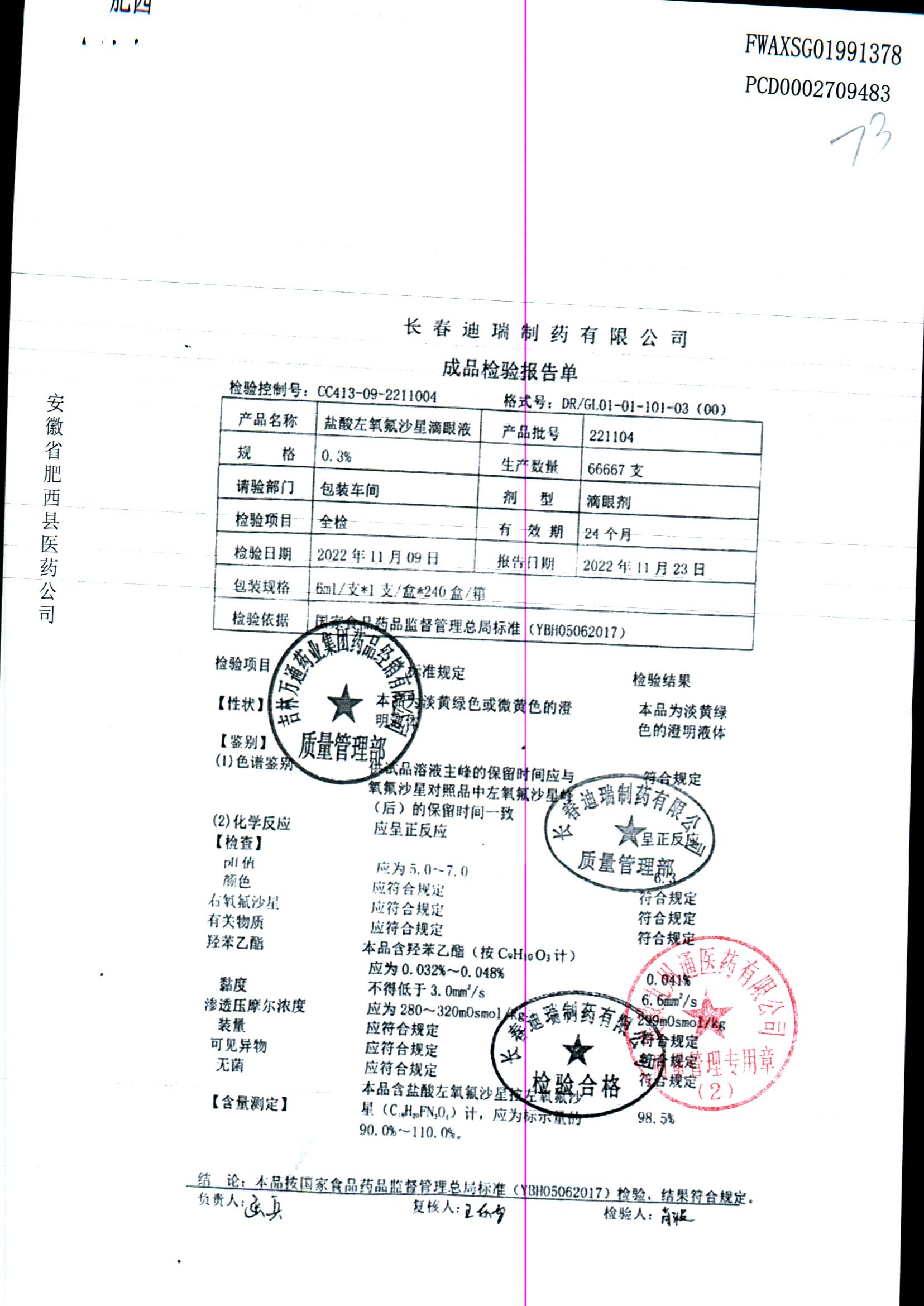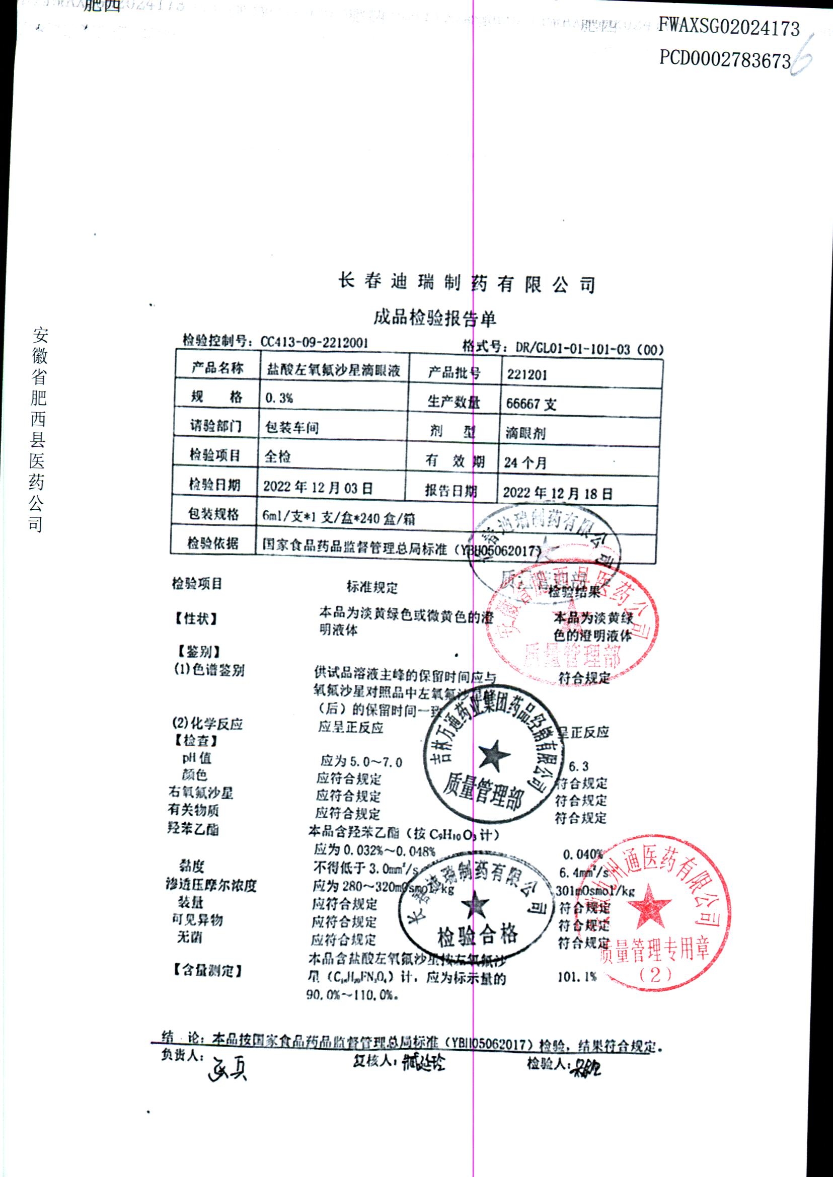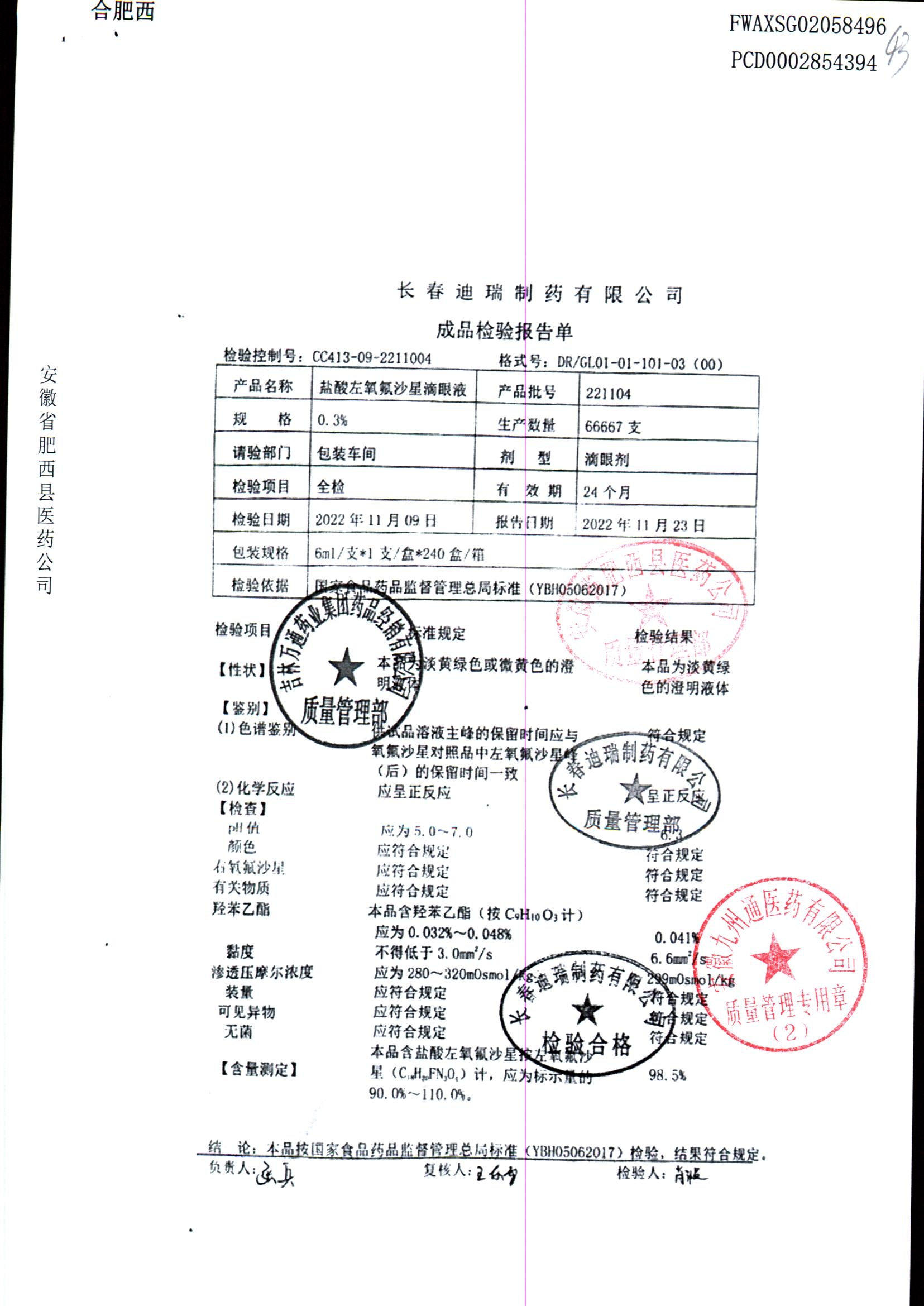 盐酸左氧氟沙星滴眼液 | 0.3g | 220506 | 查看详情 |