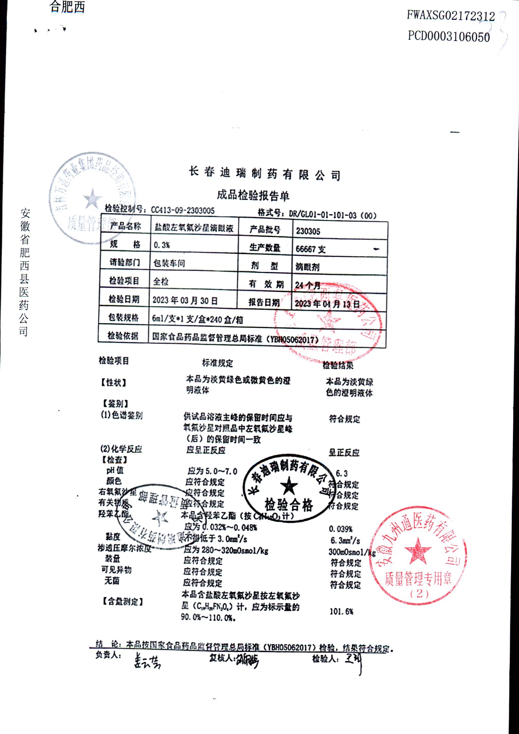 盐酸左氧氟沙星滴眼液 | 0.3g | 230305 | 查看详情 |