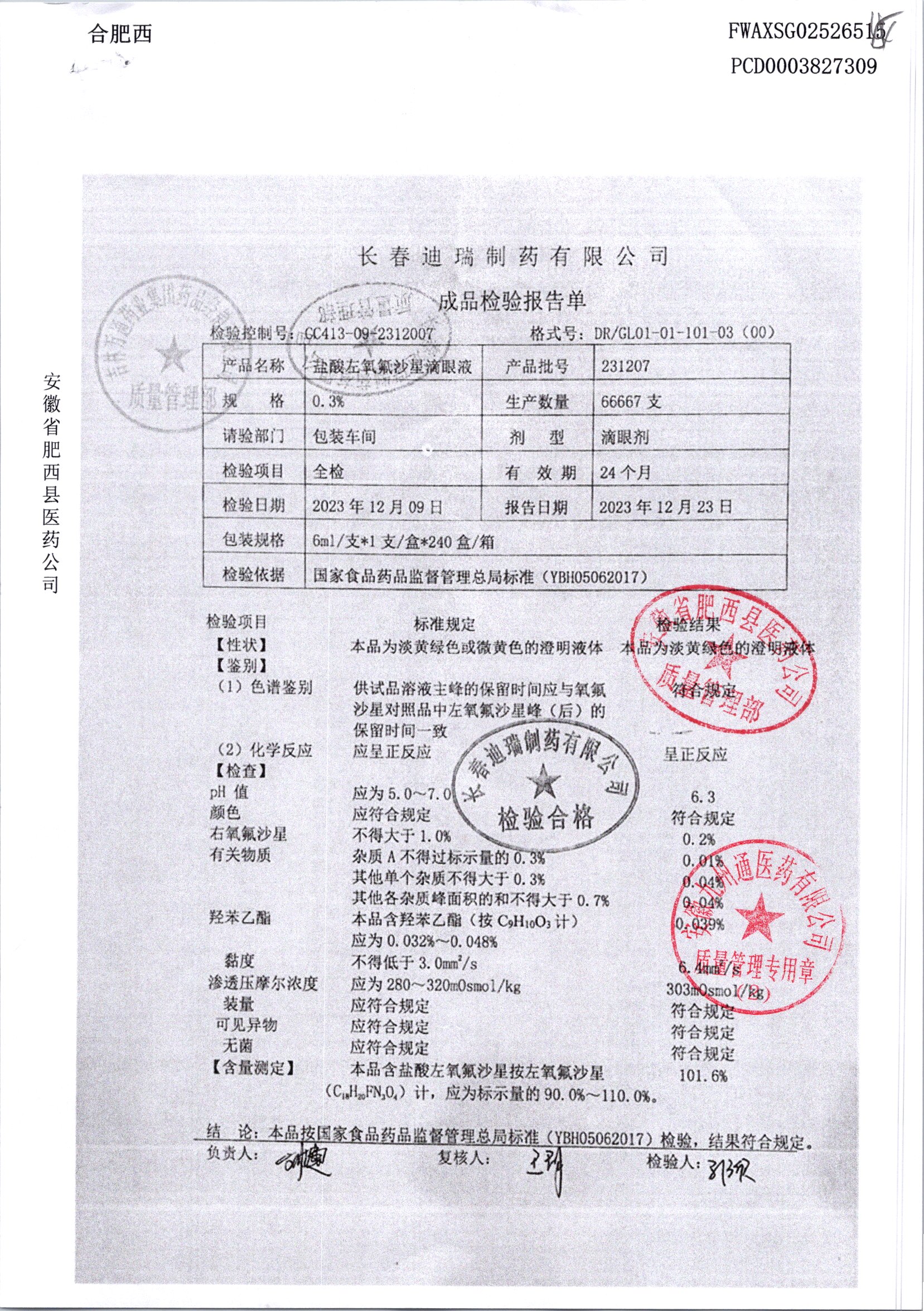 盐酸左氧氟沙星滴眼液 | 0.3g | 231207 | 查看详情 |