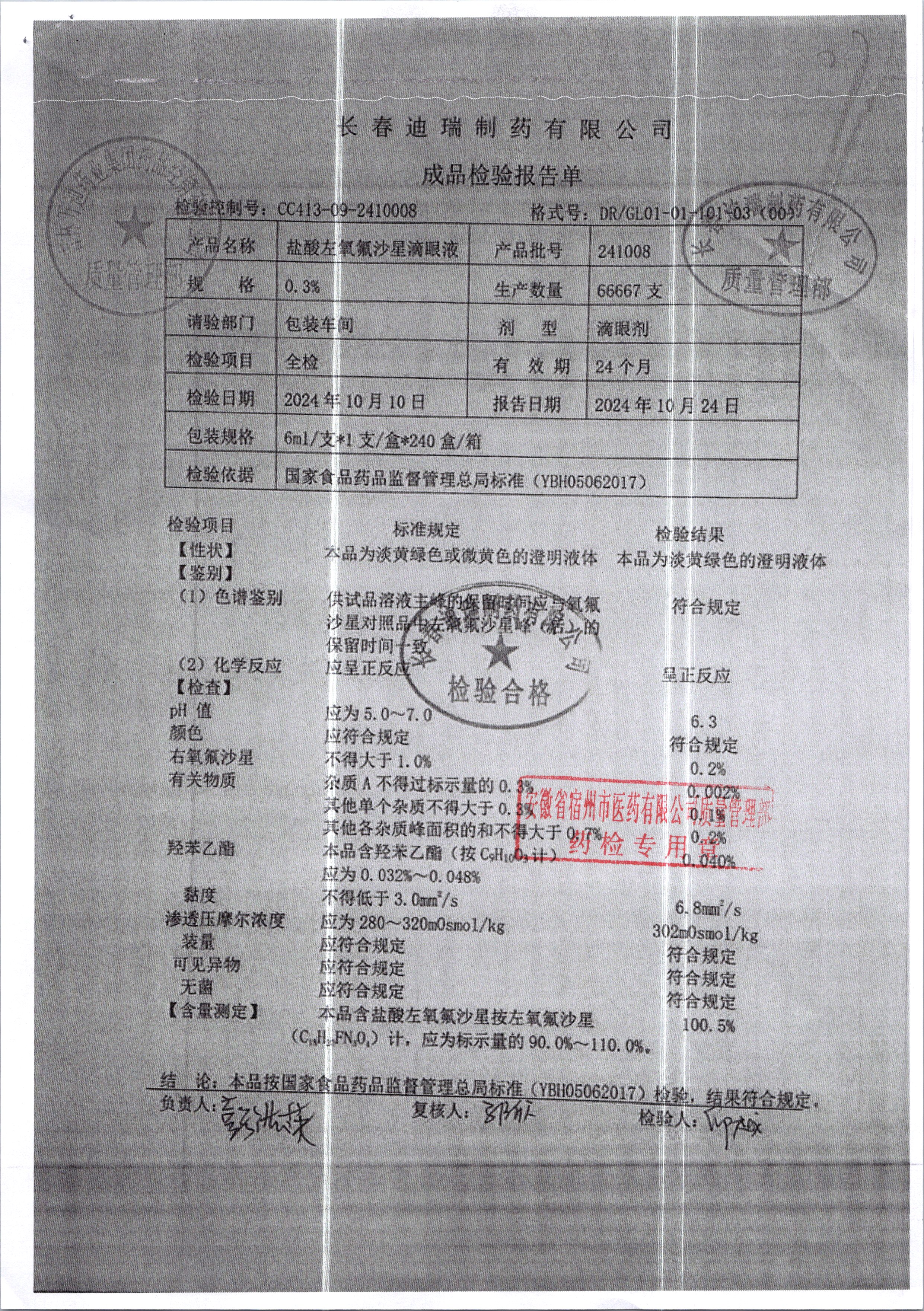 盐酸左氧氟沙星滴眼液 | 0.3g | 241008 | 查看详情 |