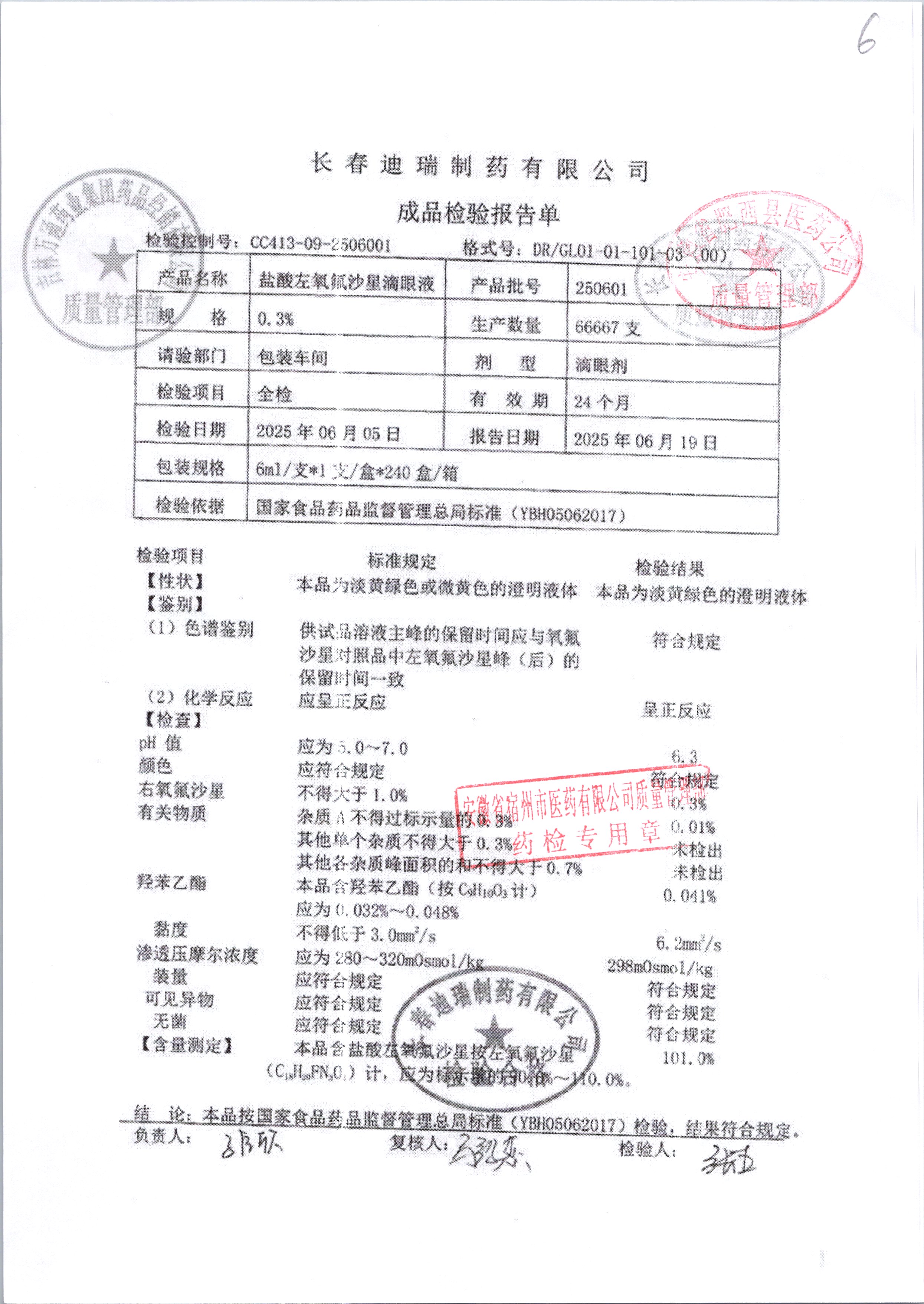 盐酸左氧氟沙星滴眼液 | 0.3g | 250601 | 查看详情 |