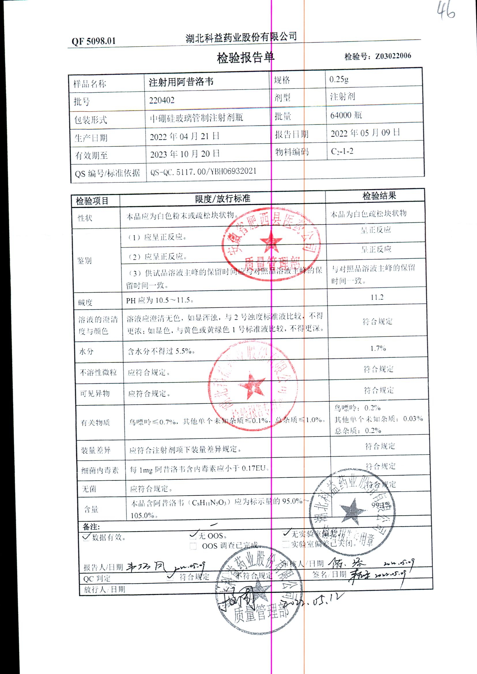 药检报告