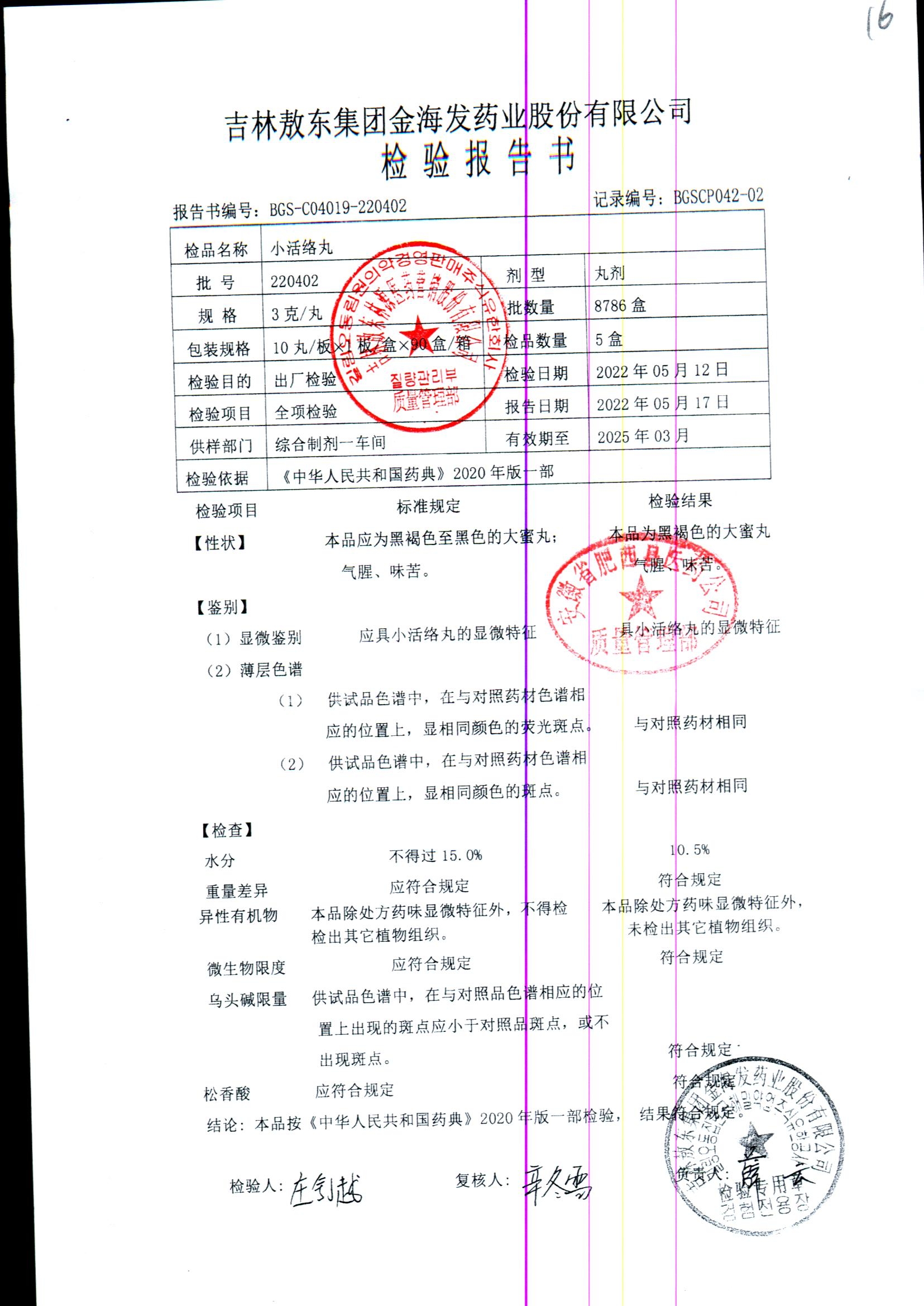 小活络丸 | 3g*10丸 | 220402 | 查看详情 |