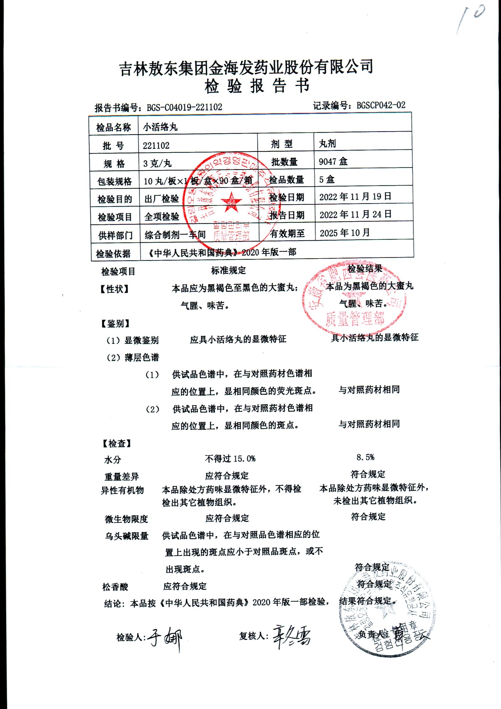 小活络丸 | 3g*10丸 | 221101 | 查看详情 |