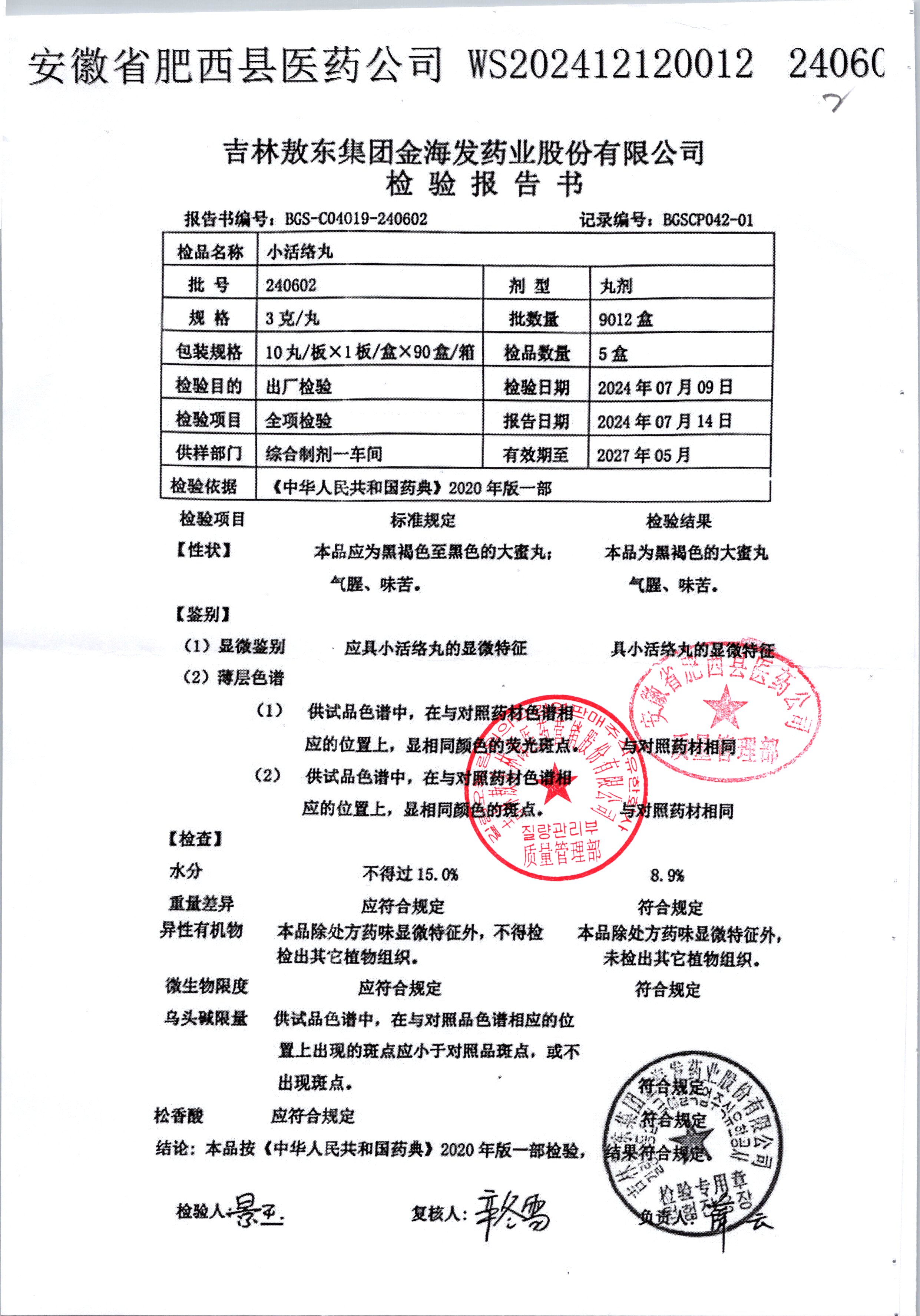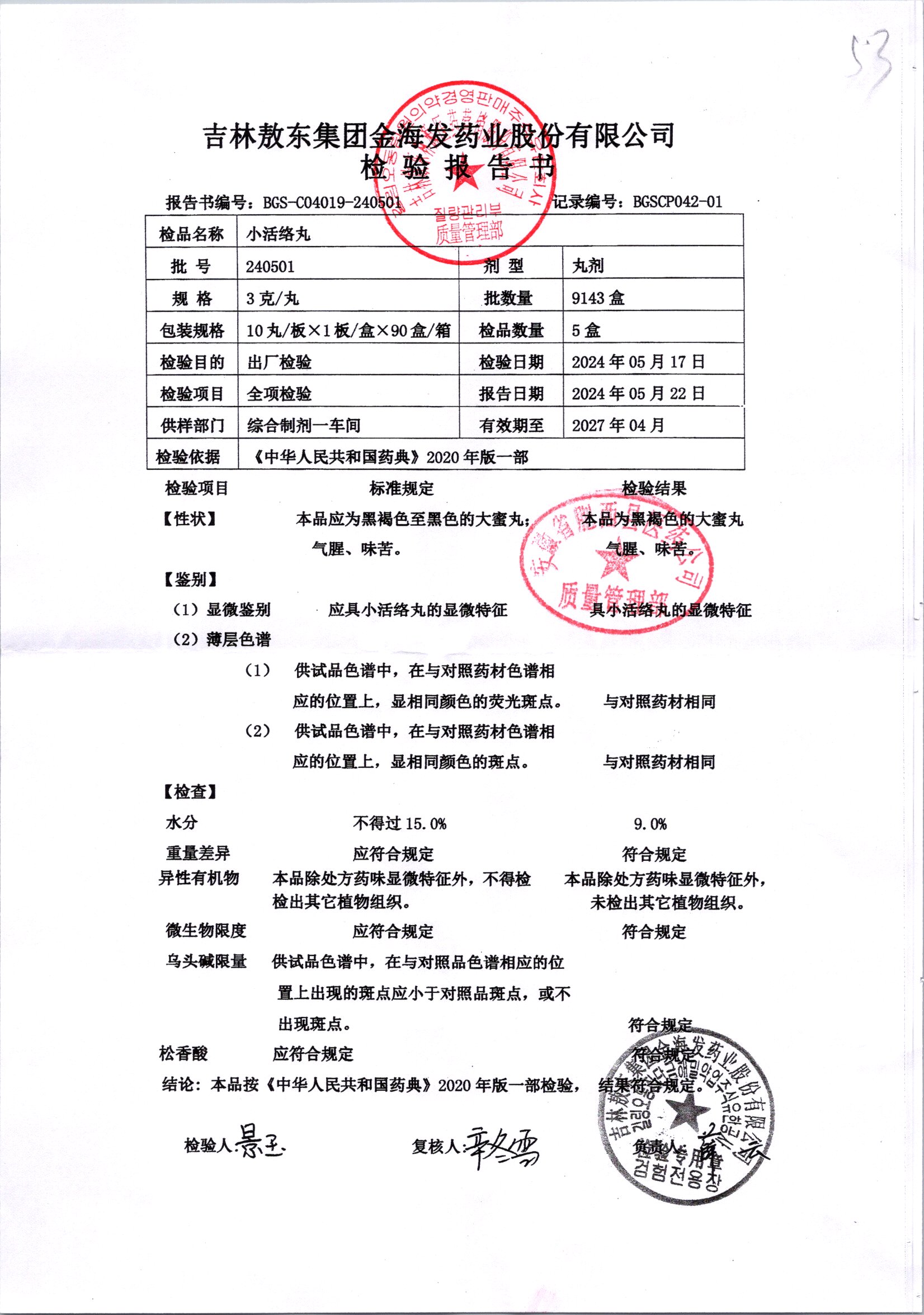 小活络丸 | 3g*10丸 | 240501 | 查看详情 |