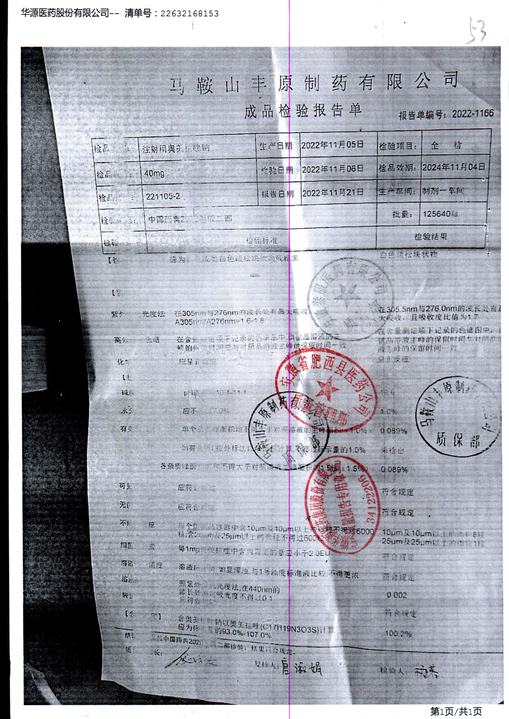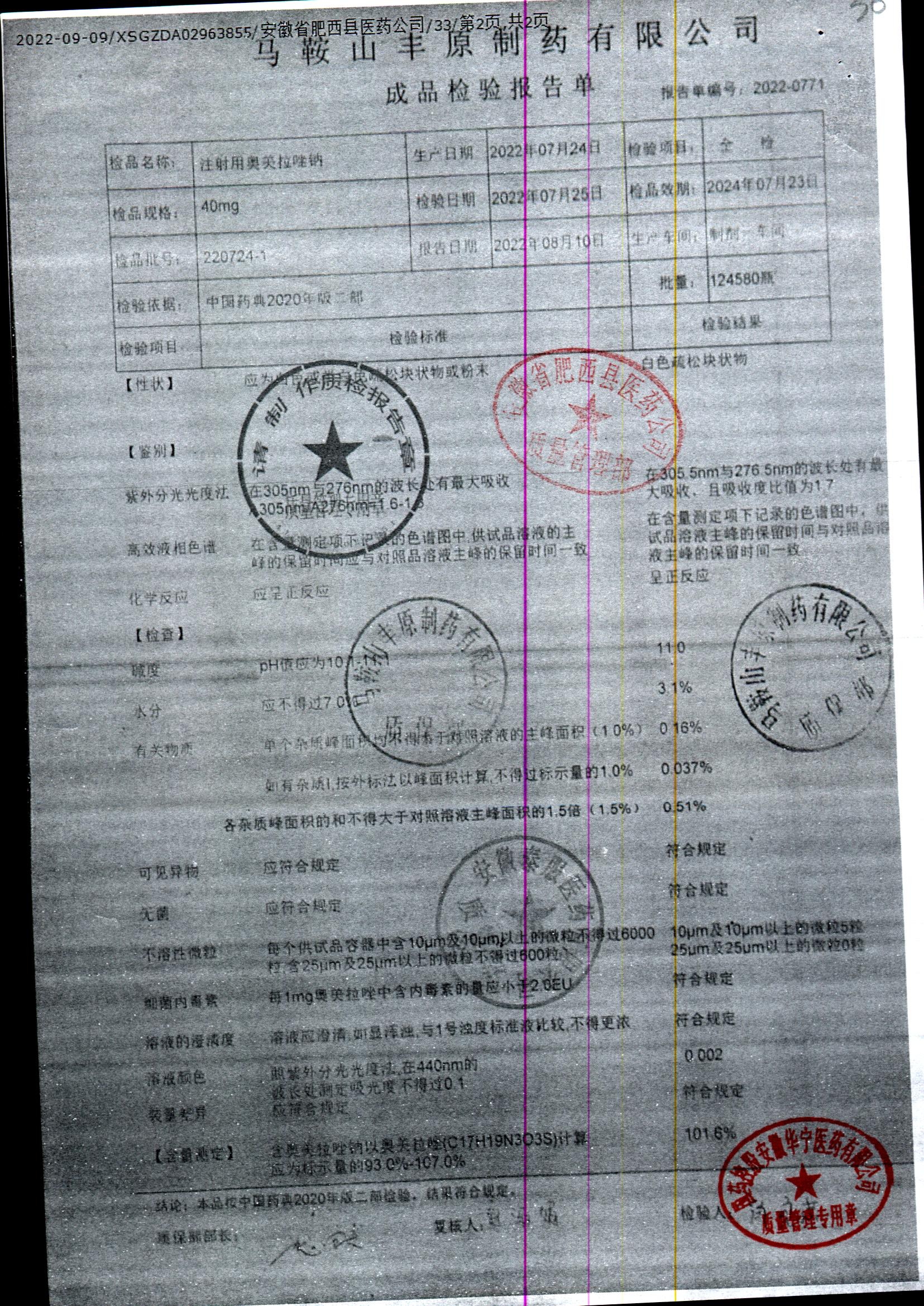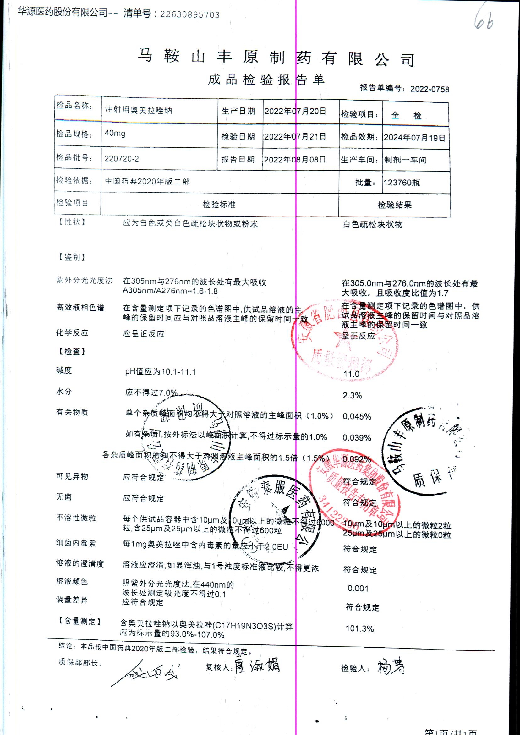 注射用奥美拉唑钠 | 40mg | 220724-1 | 查看详情 |