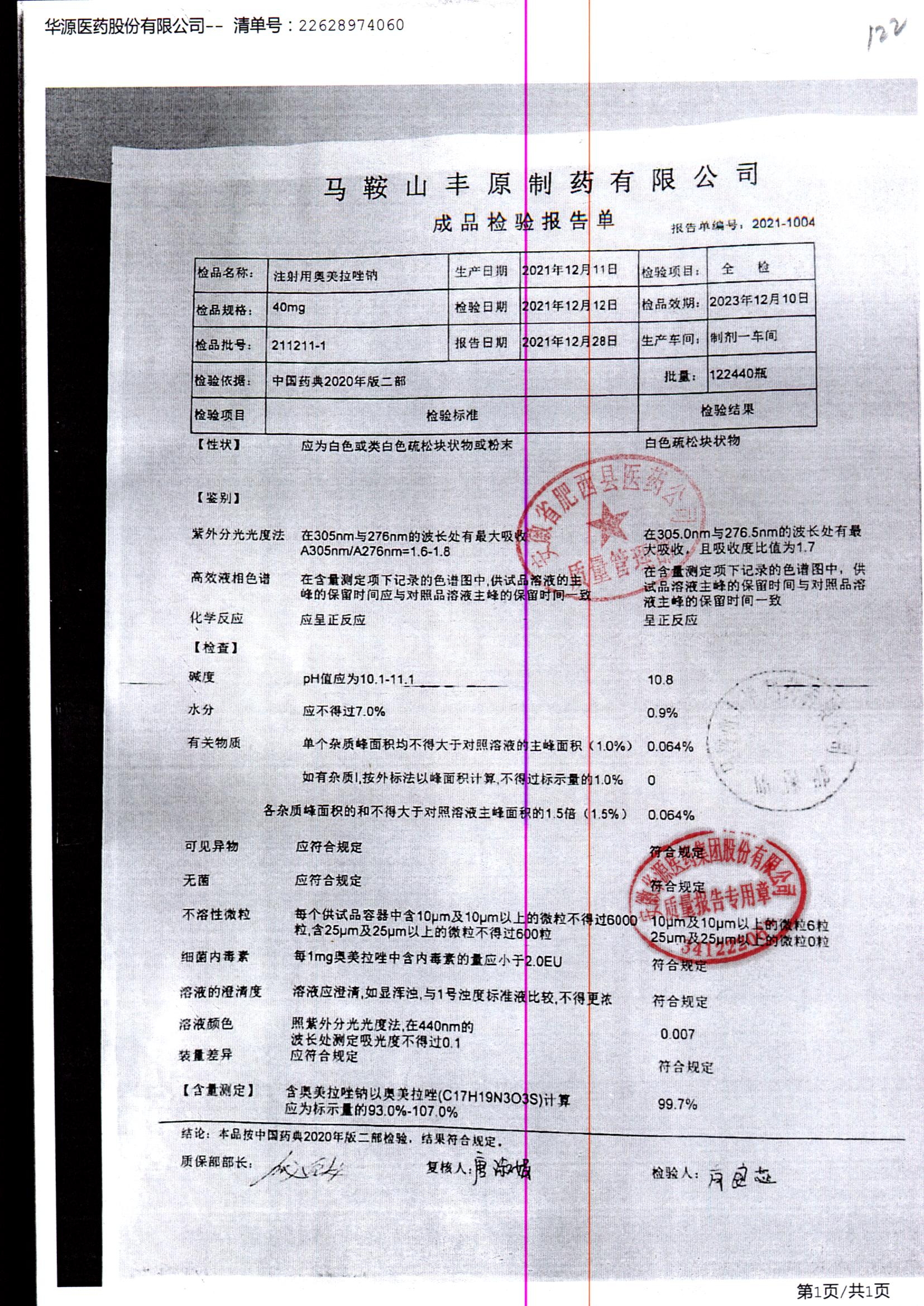 注射用奥美拉唑钠 | 40mg | 211211-1 | 查看详情 |