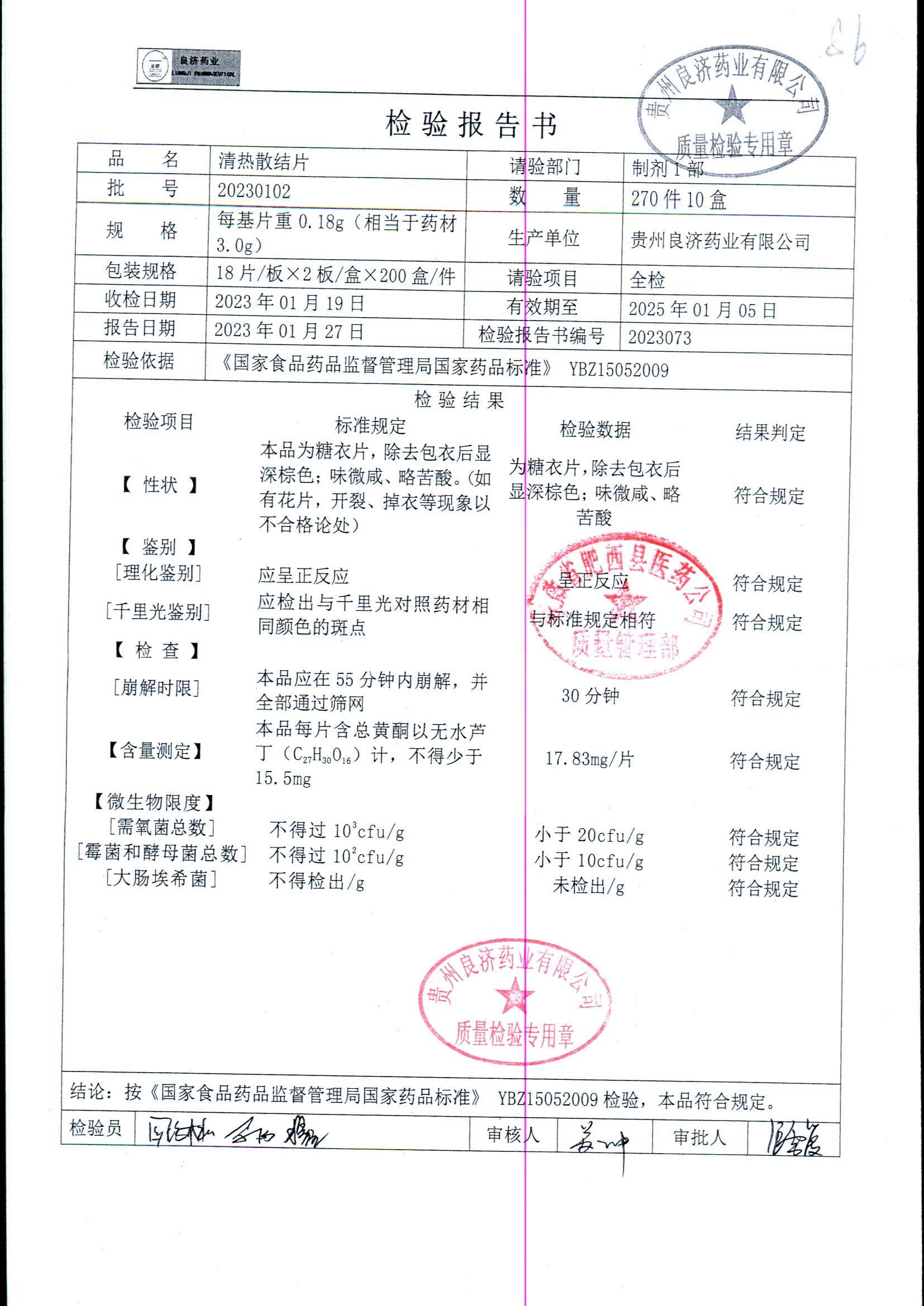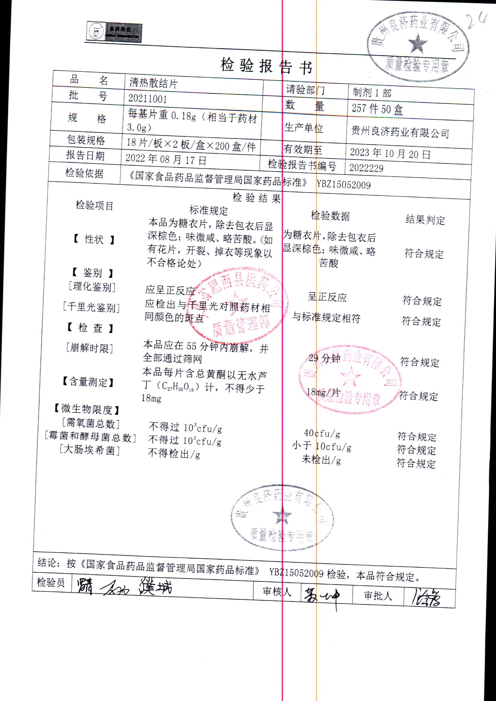 药检报告