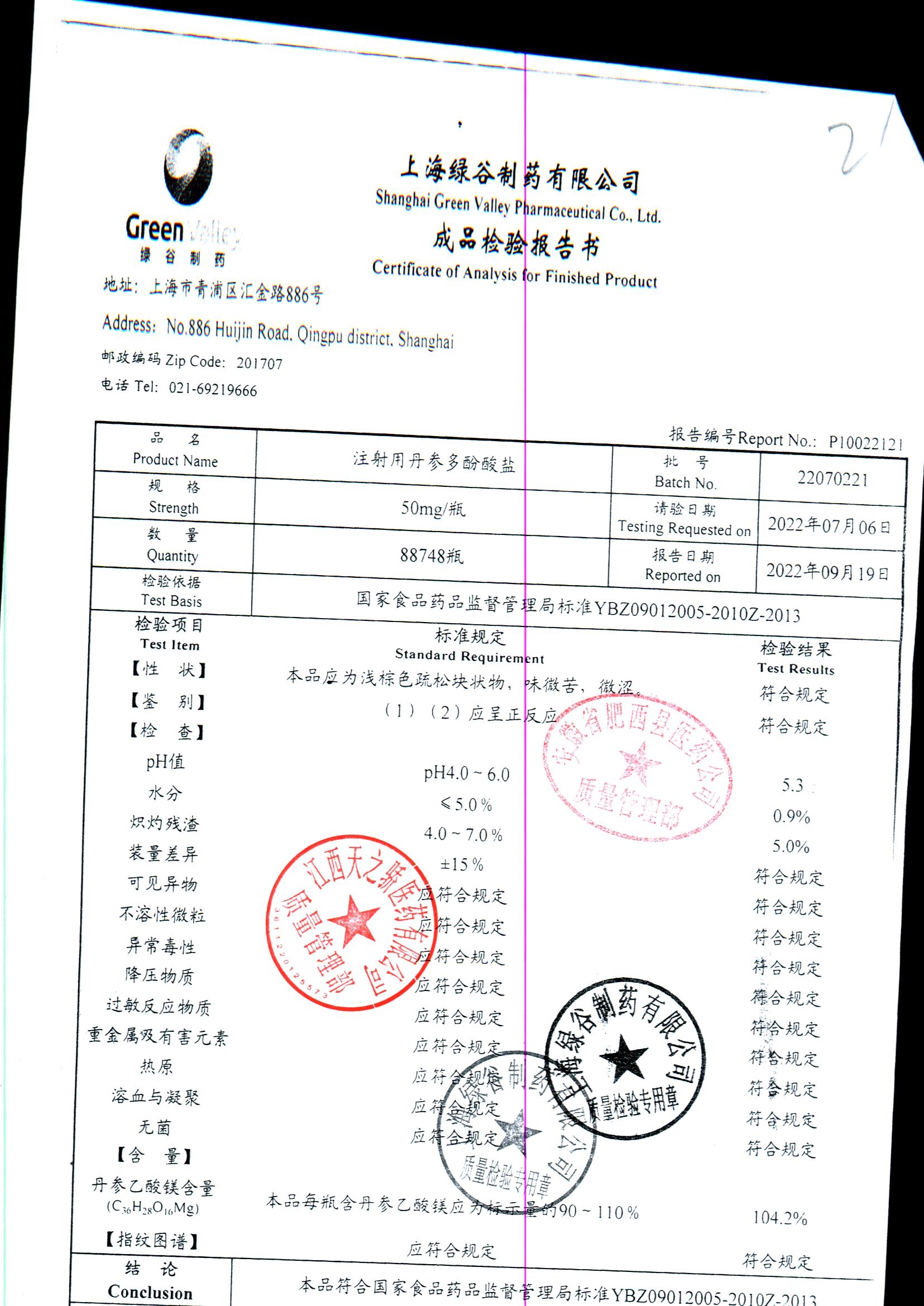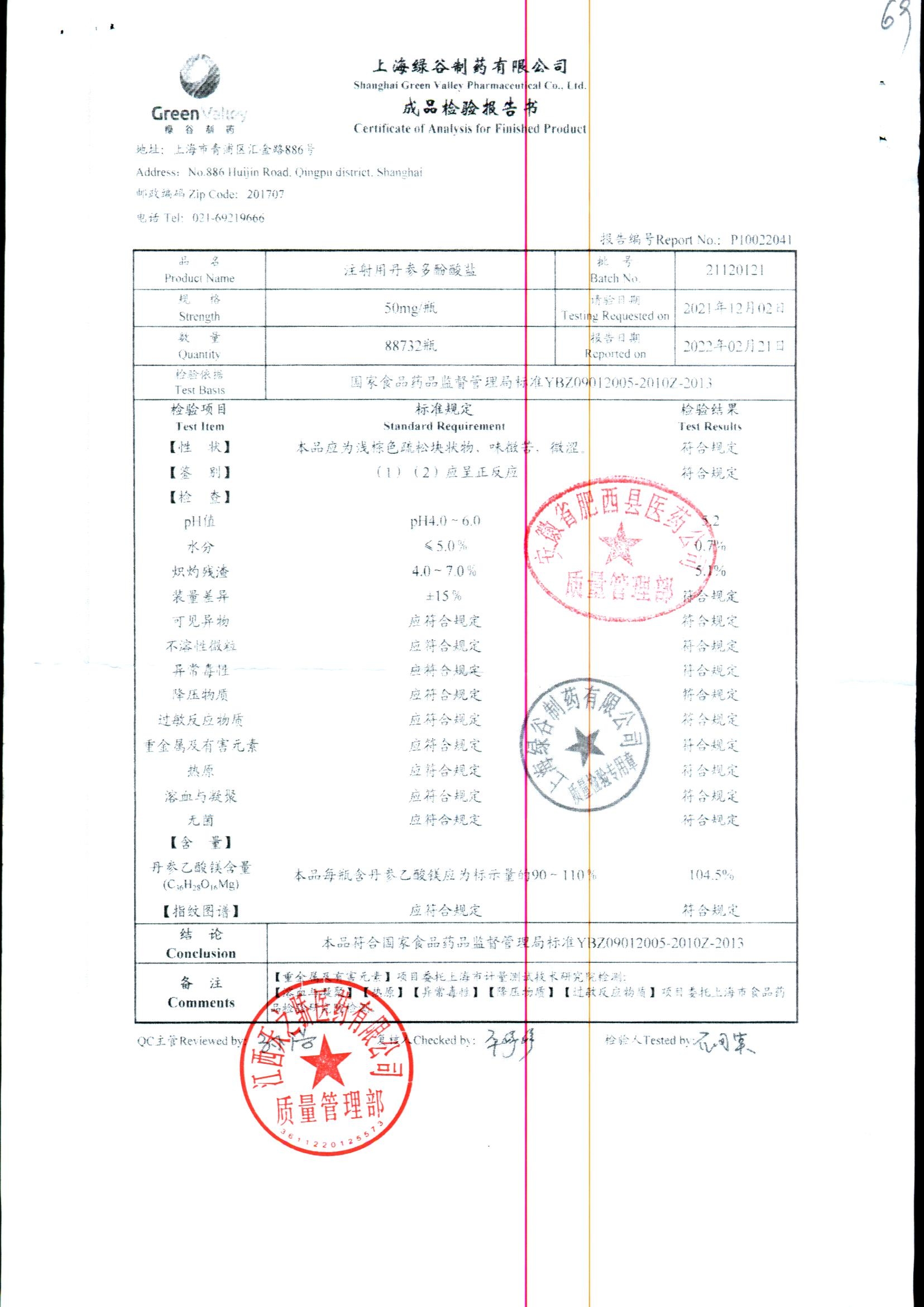 药检报告