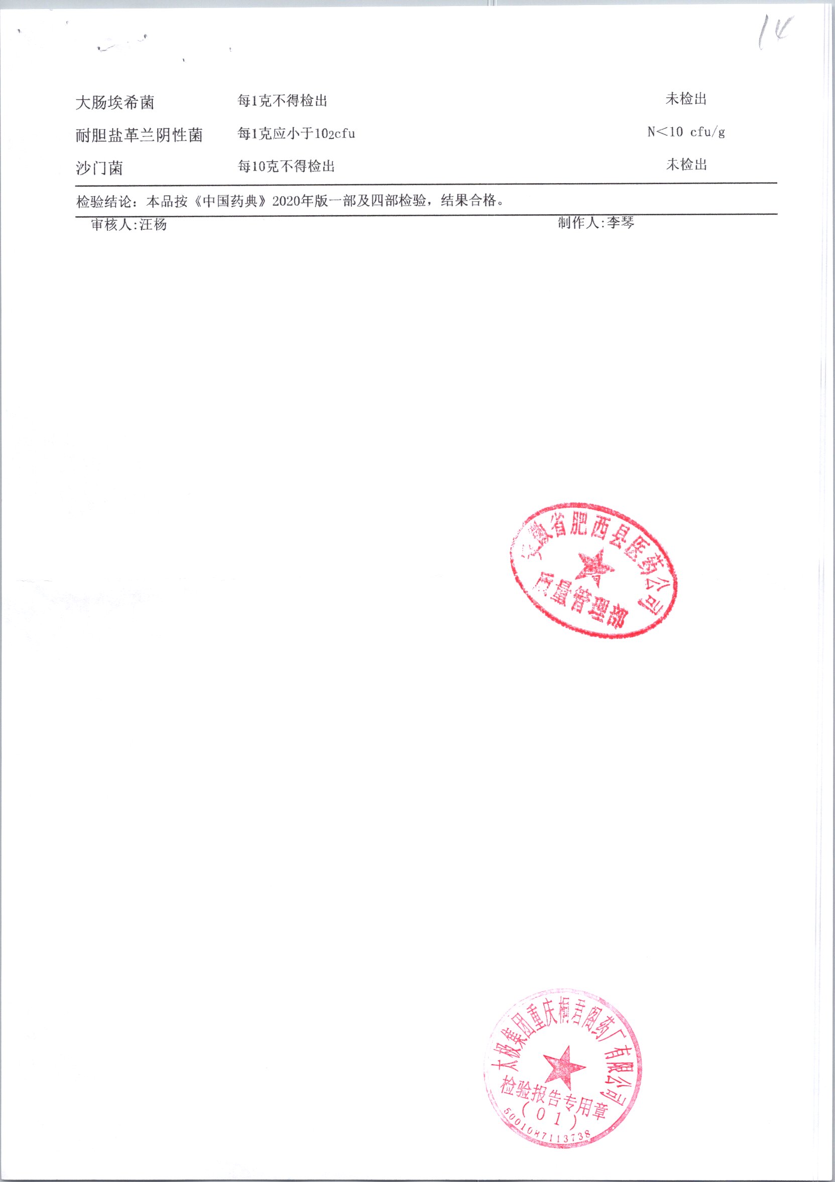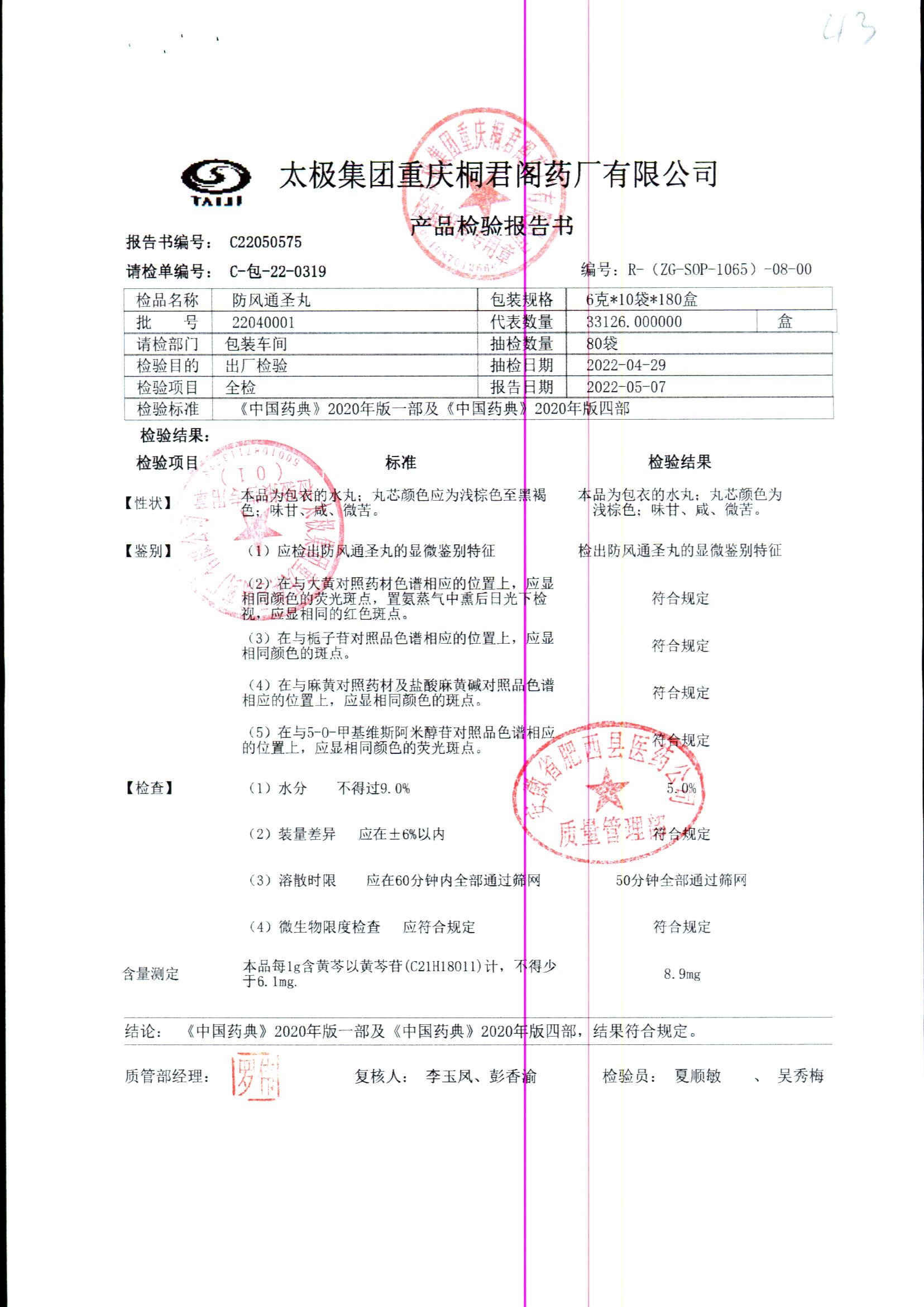 名称 | 规格 | 批号 | 药检报告 |
