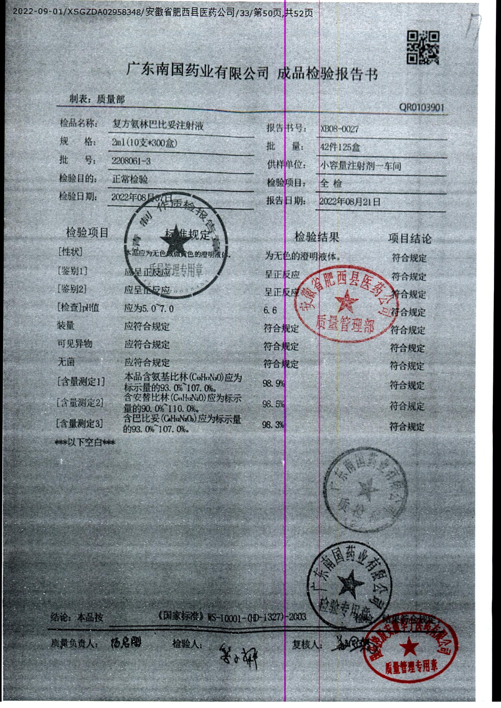 药检报告