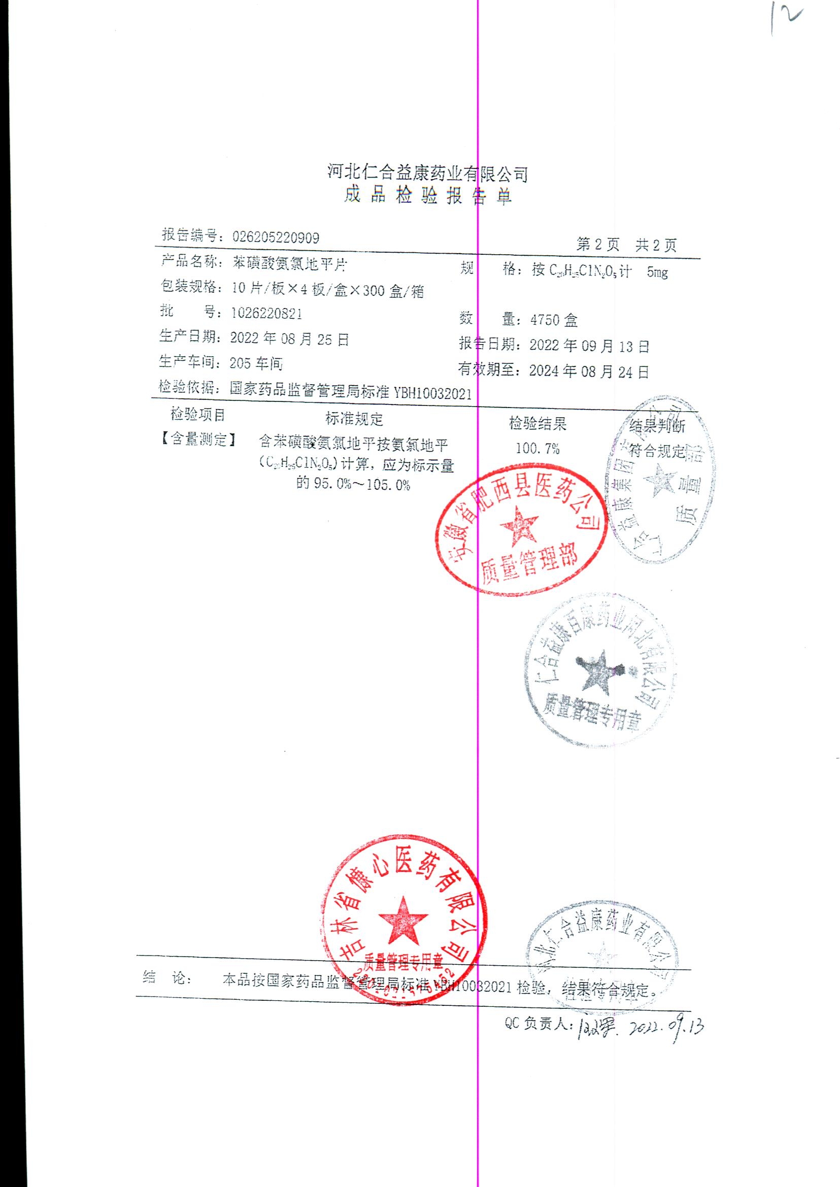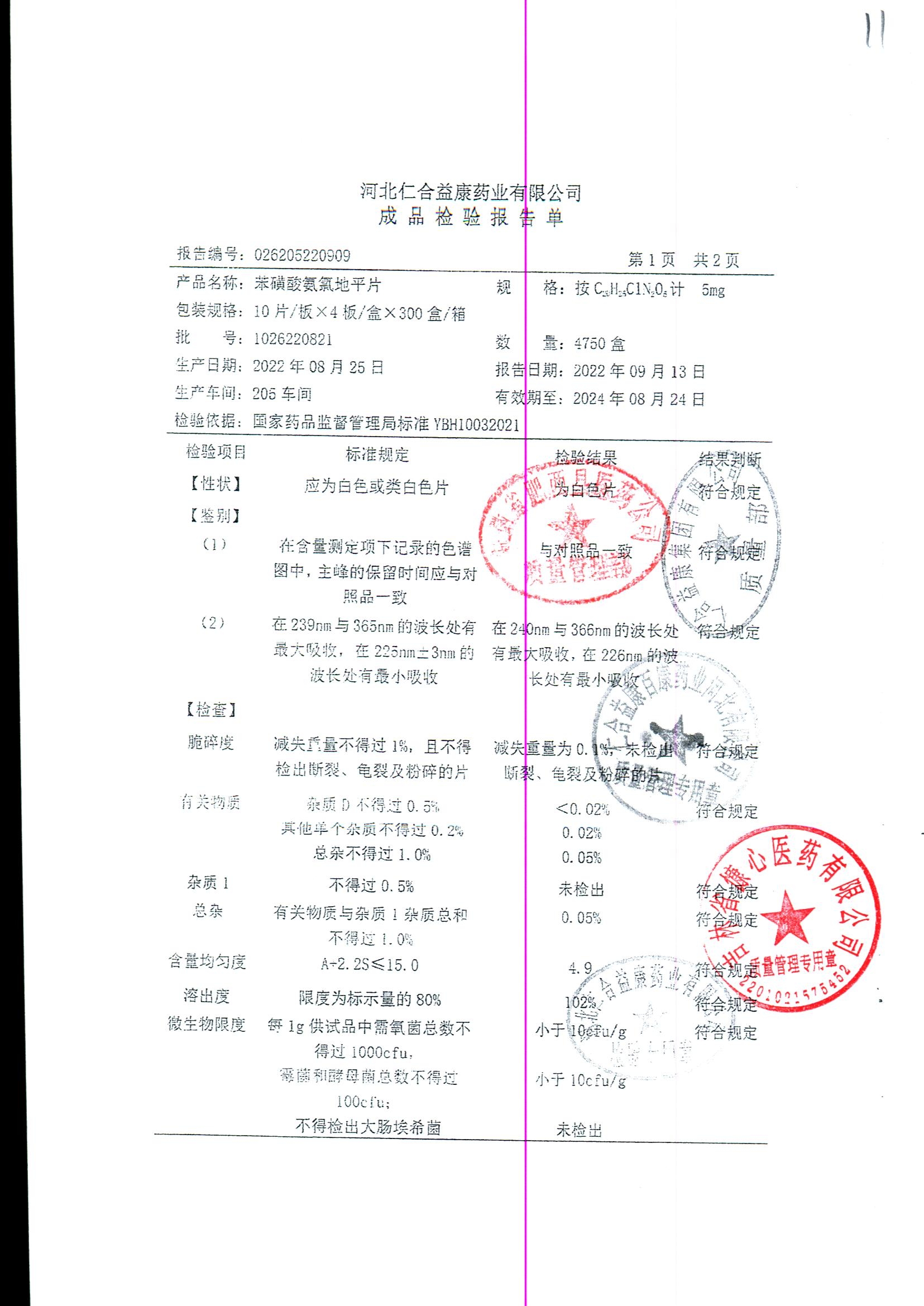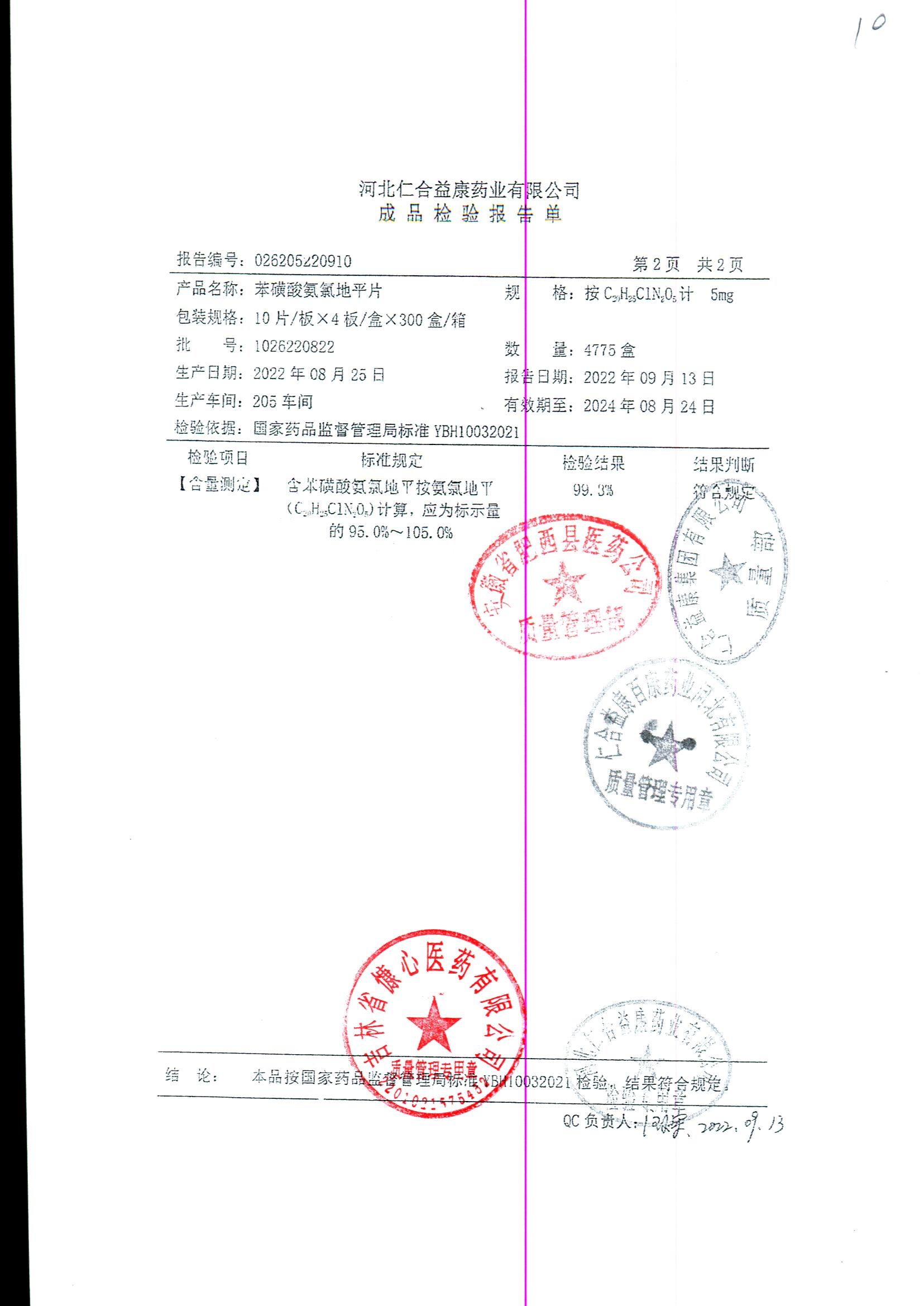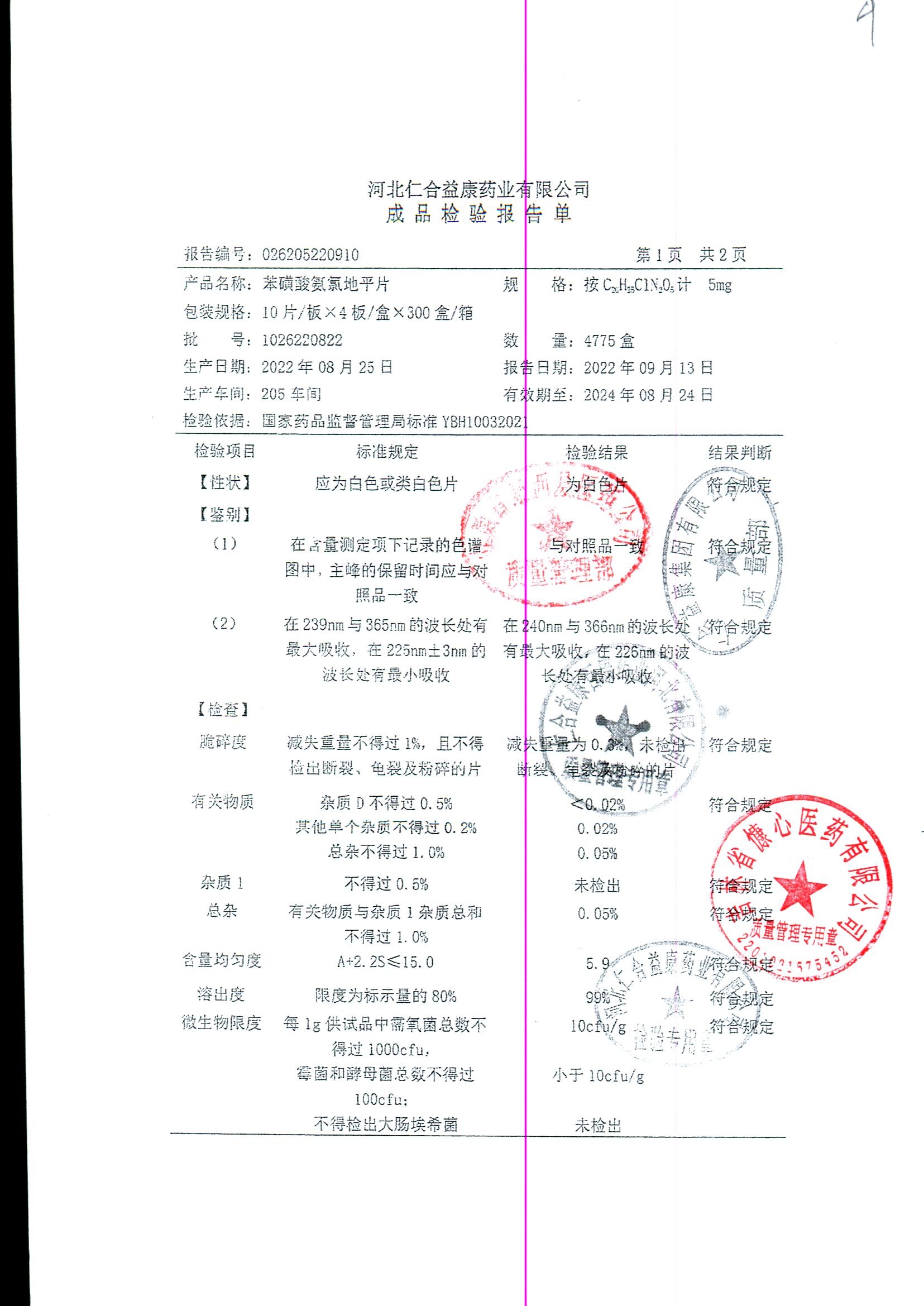 苯磺酸氨氯地平片 | 5mg*40片 | 1026220822/2 | 查看详情 |