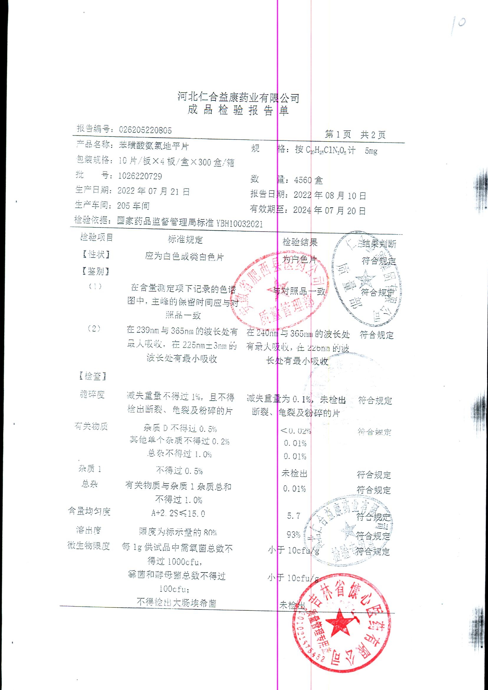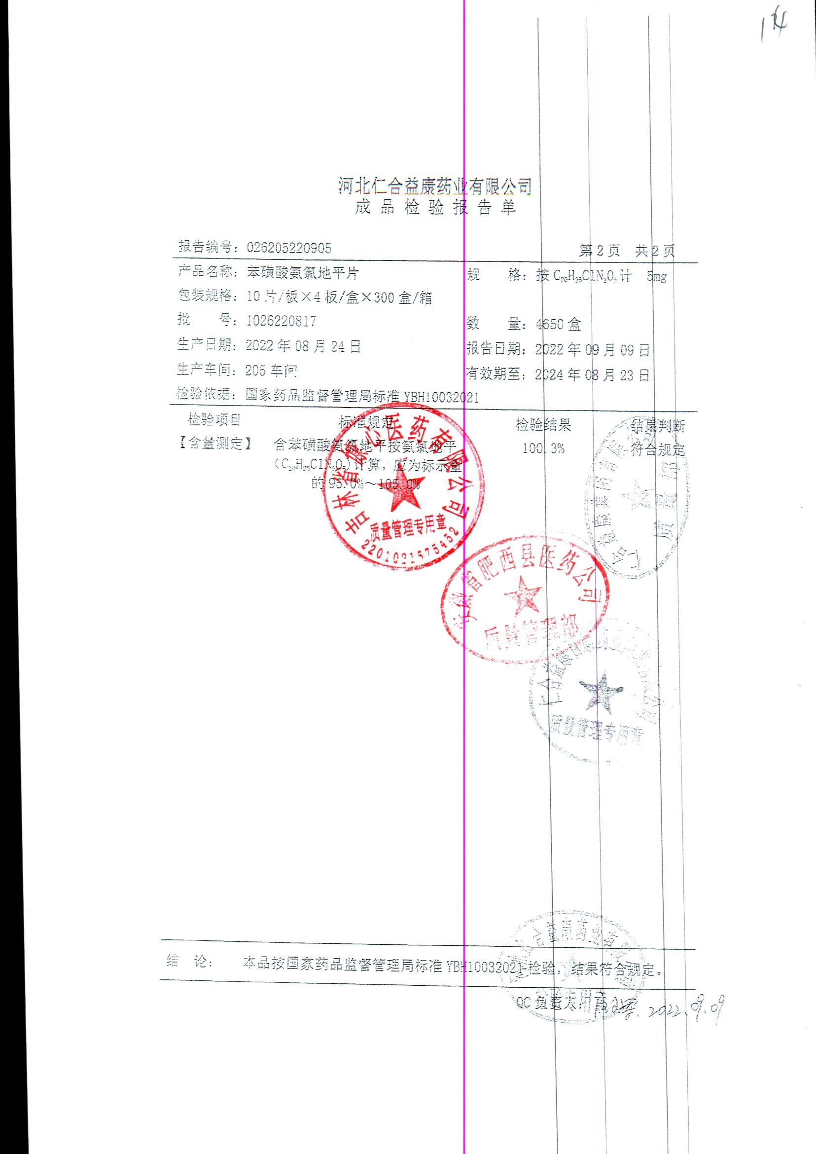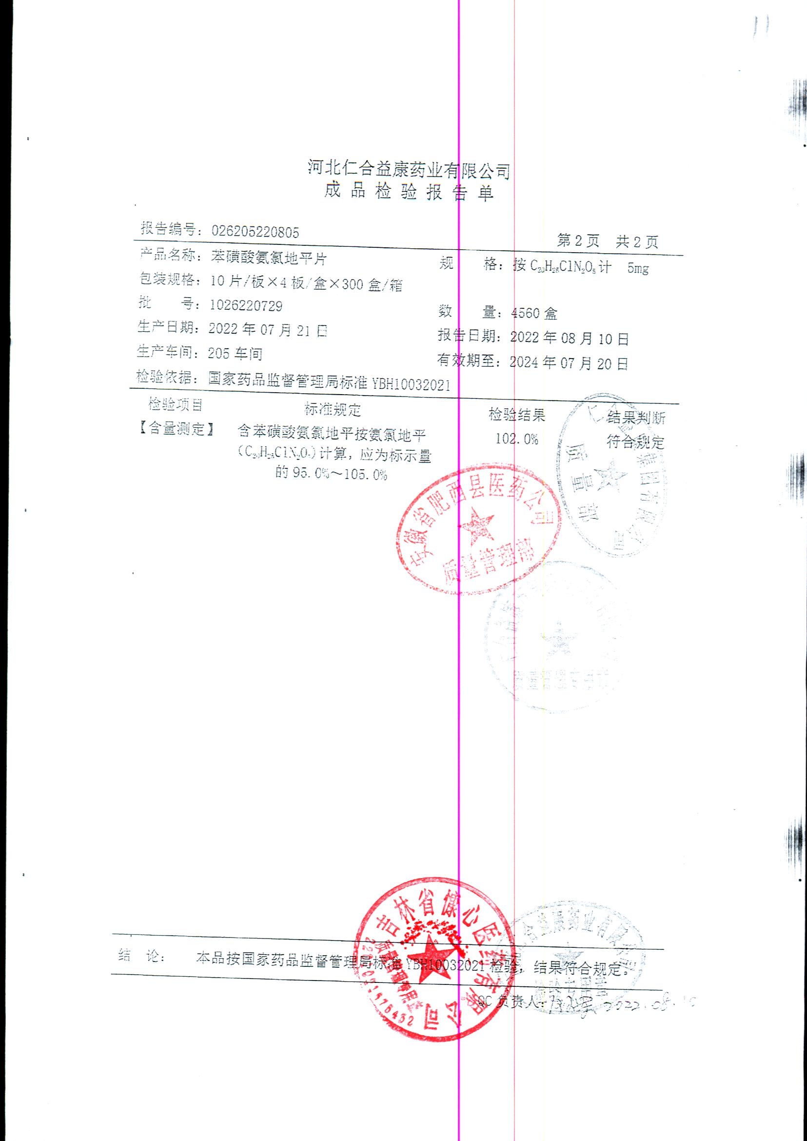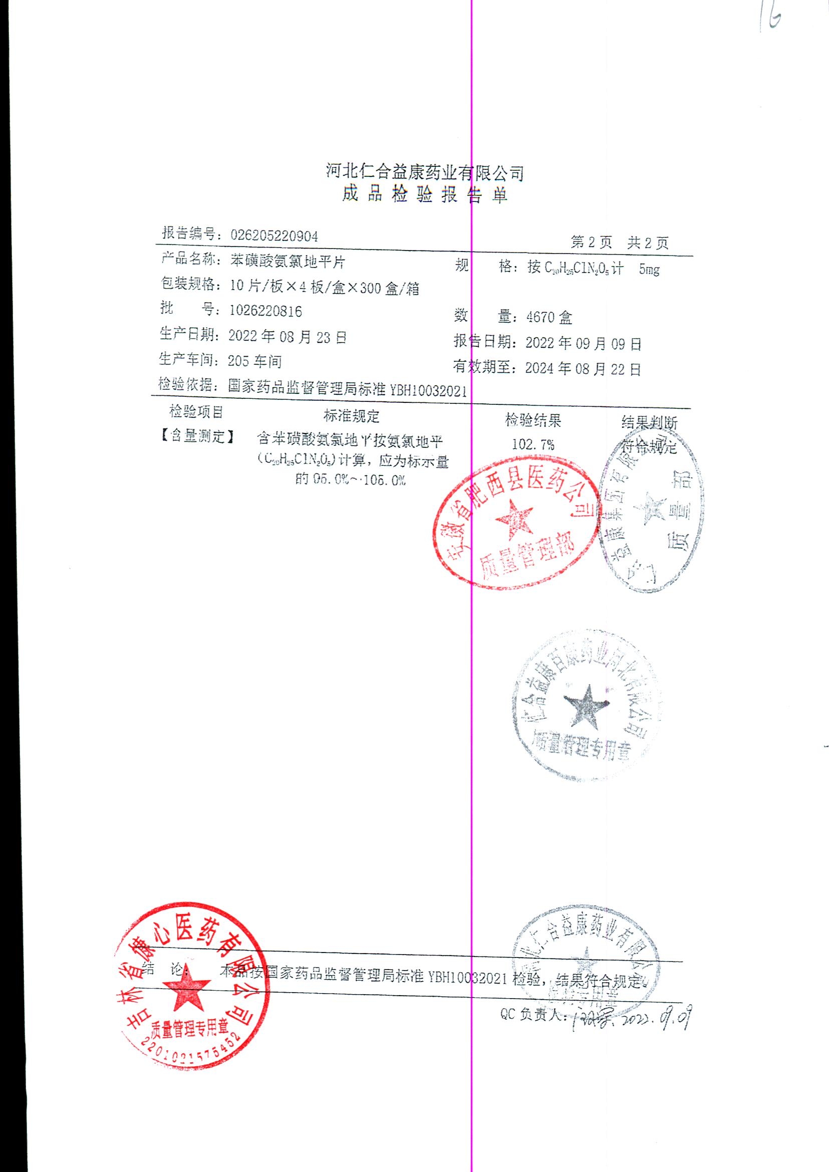 苯磺酸氨氯地平片 | 5mg*40片 | 1026220817/2 | 查看详情 |