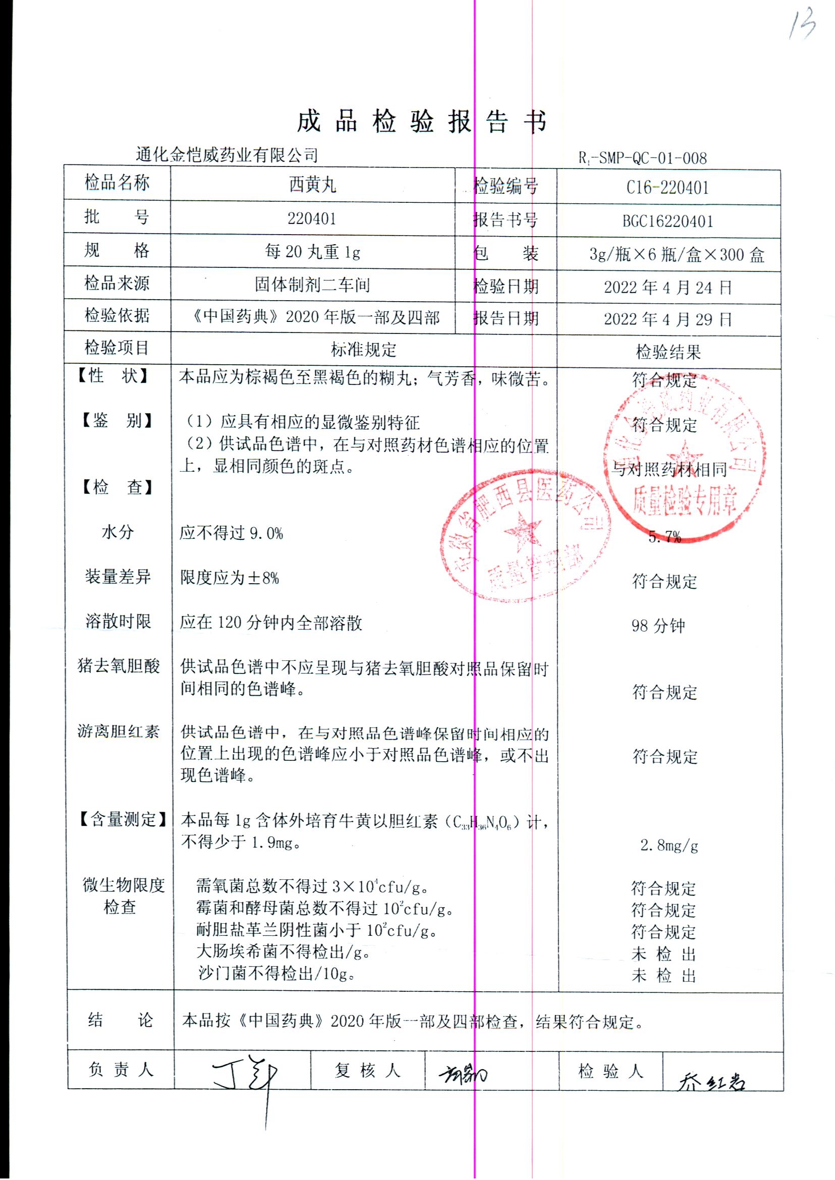 药检报告