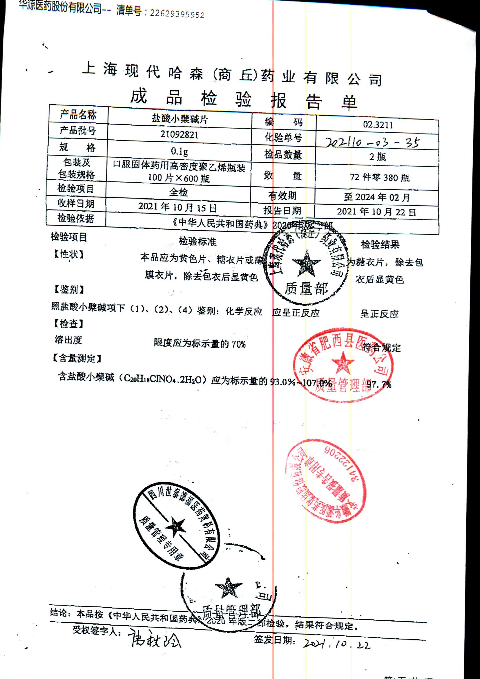 药检报告