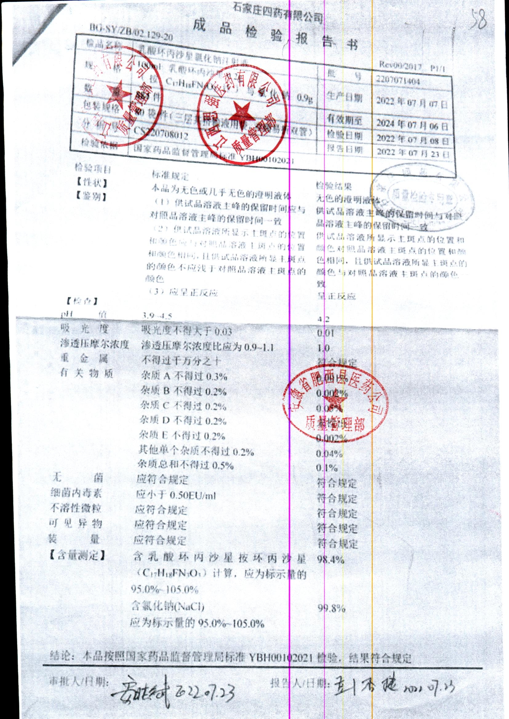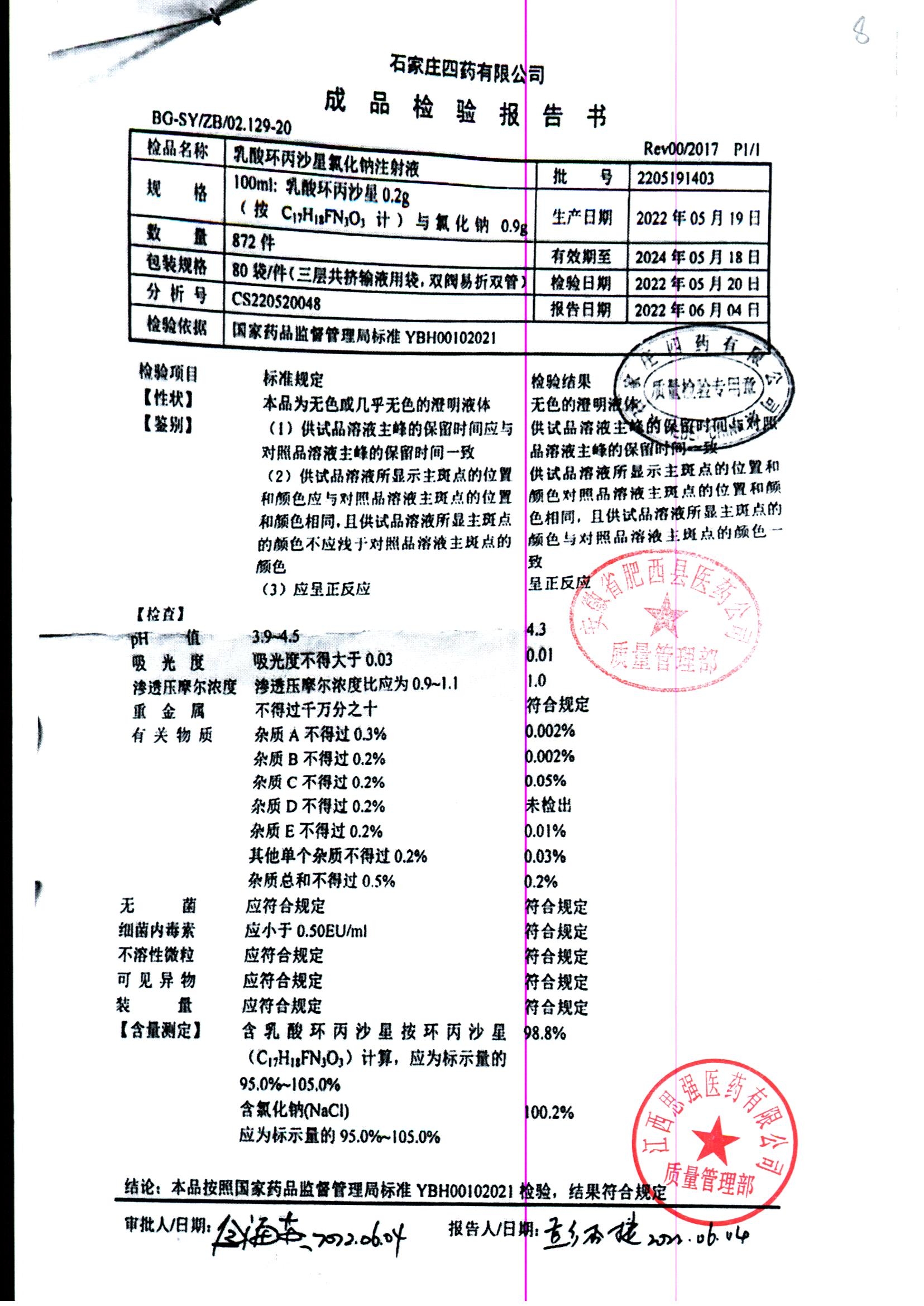 药检报告