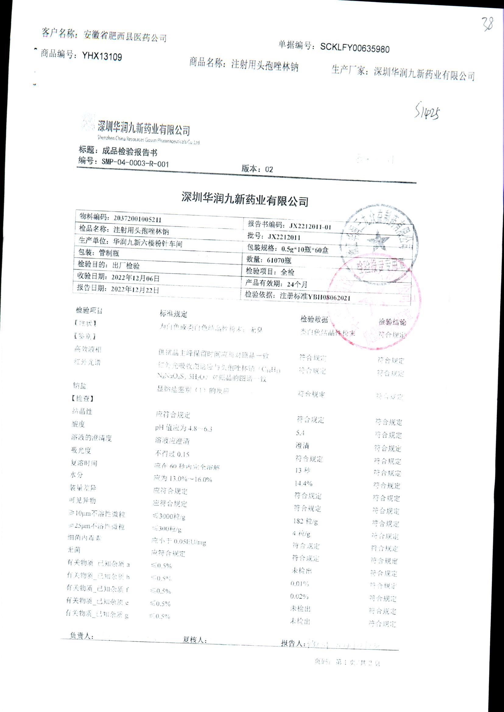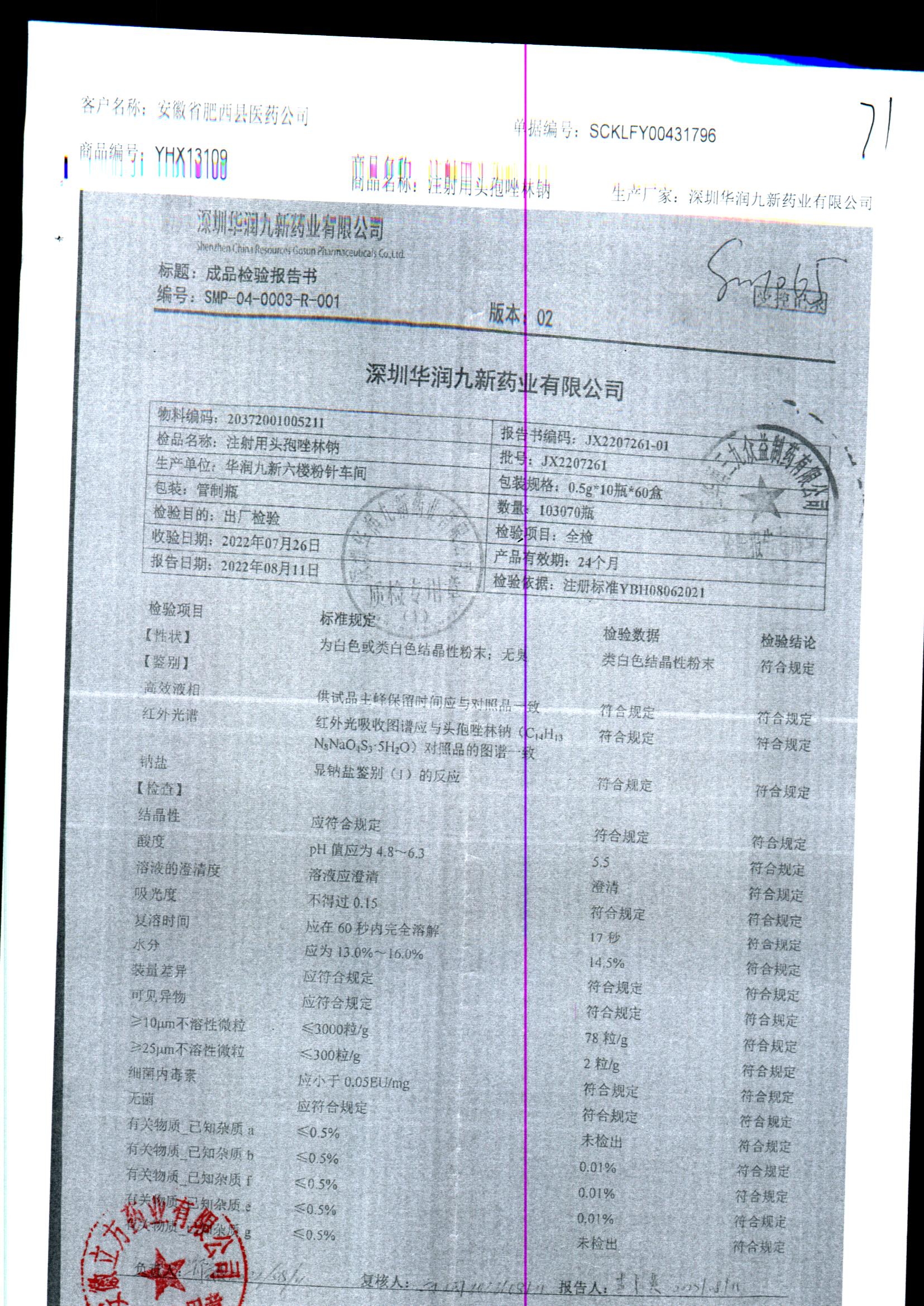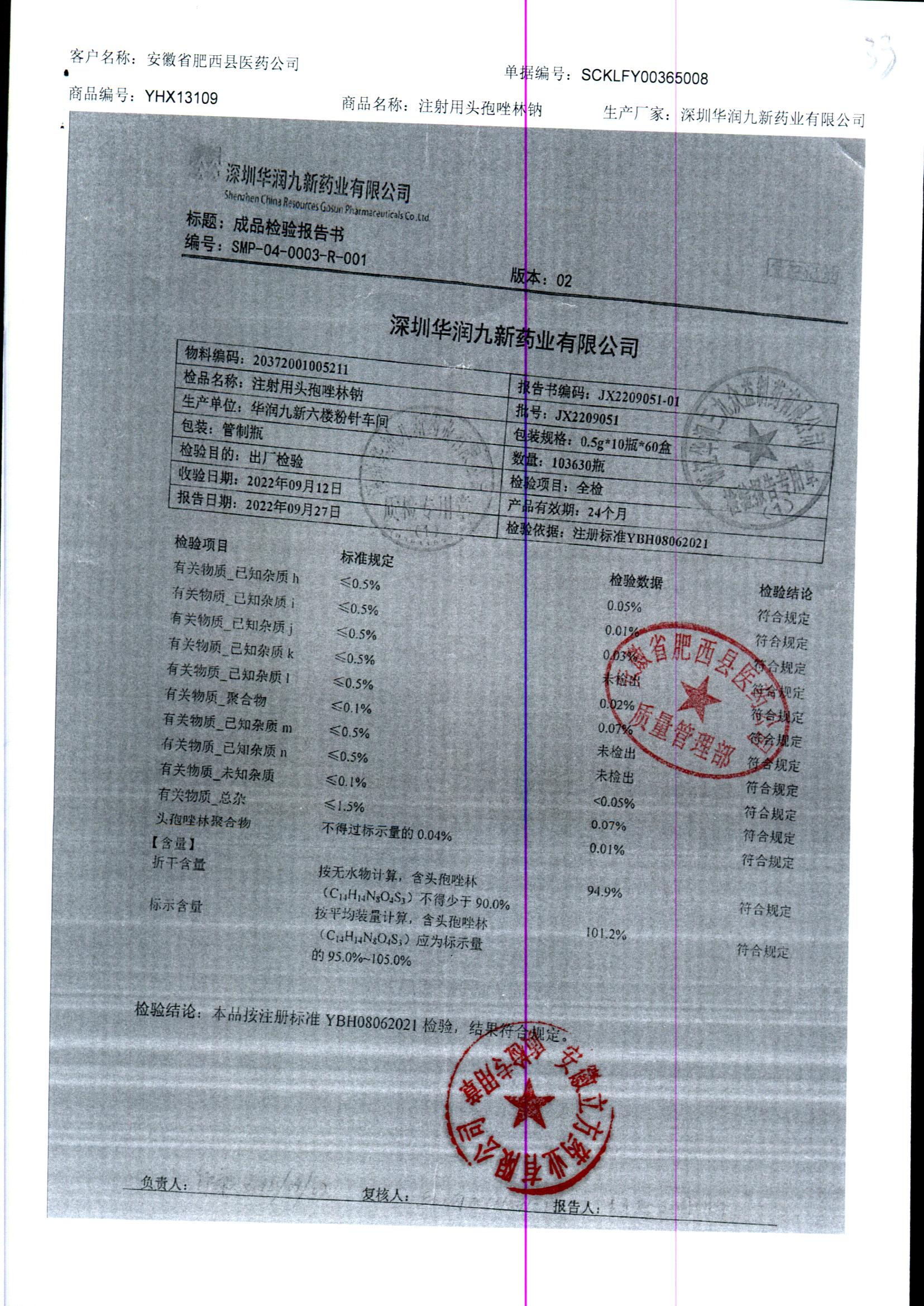 注射用头孢唑啉钠 | 0.5g*10瓶 | JX2209051/2 | 查看详情 |