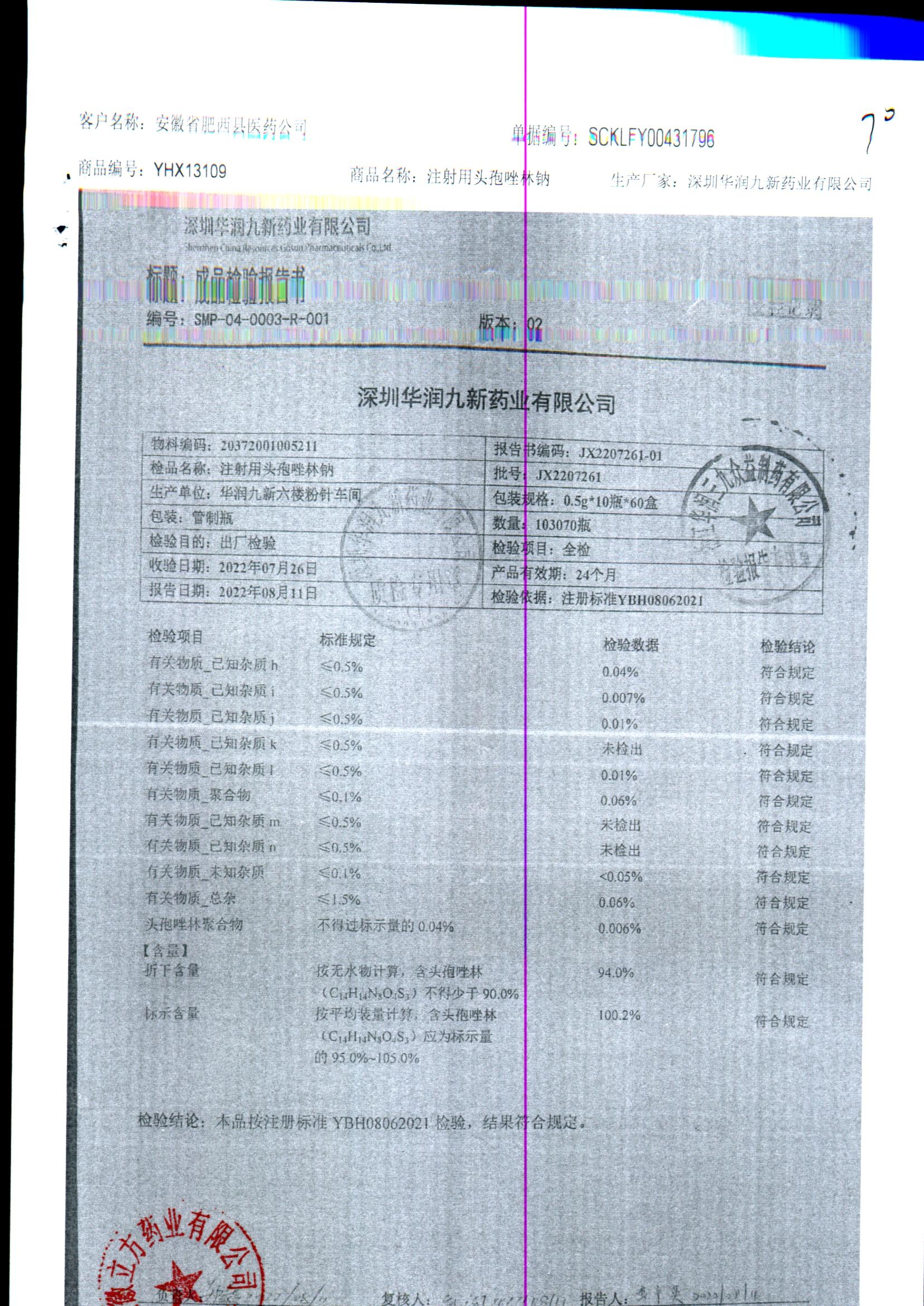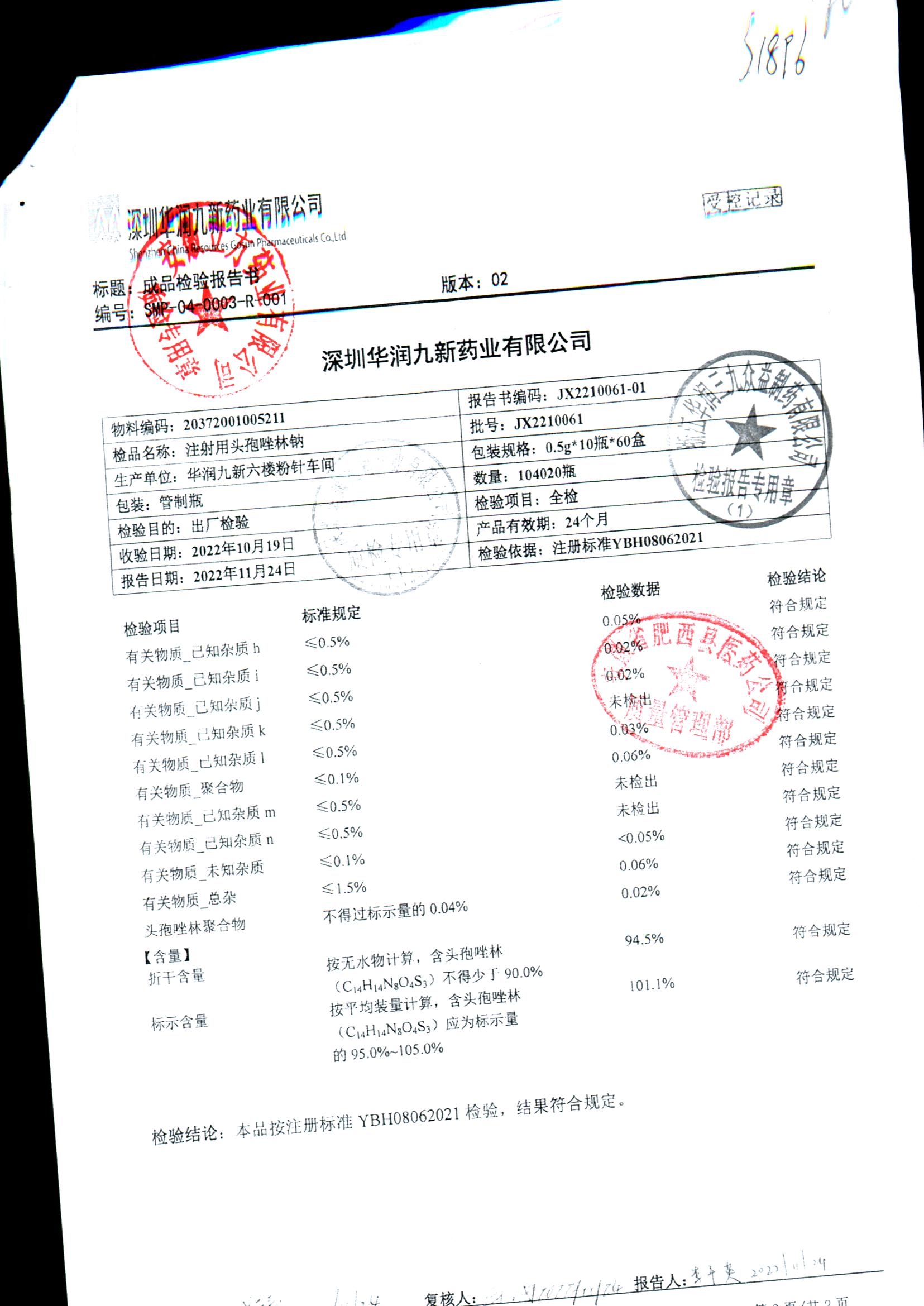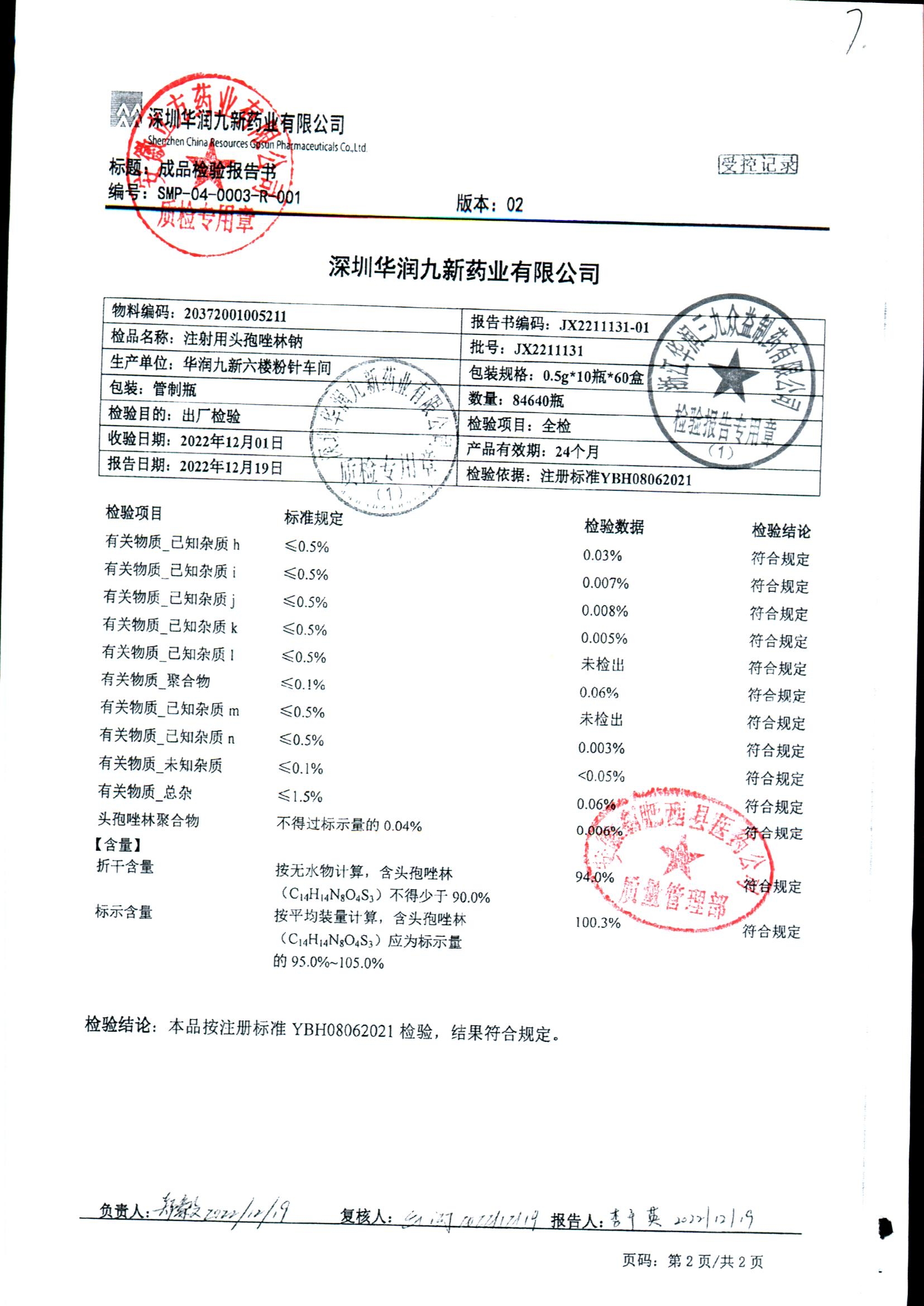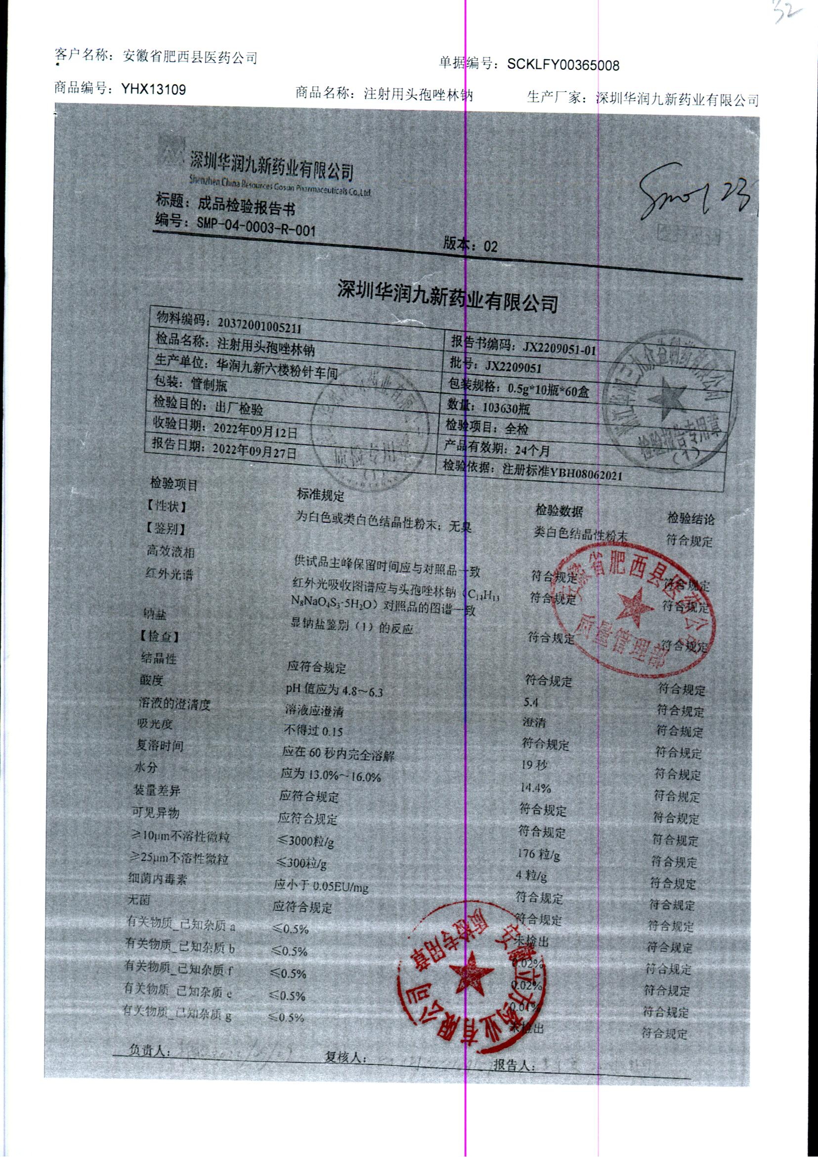 注射用头孢唑啉钠 | 0.5g*10瓶 | JX2209051/2 | 查看详情 |