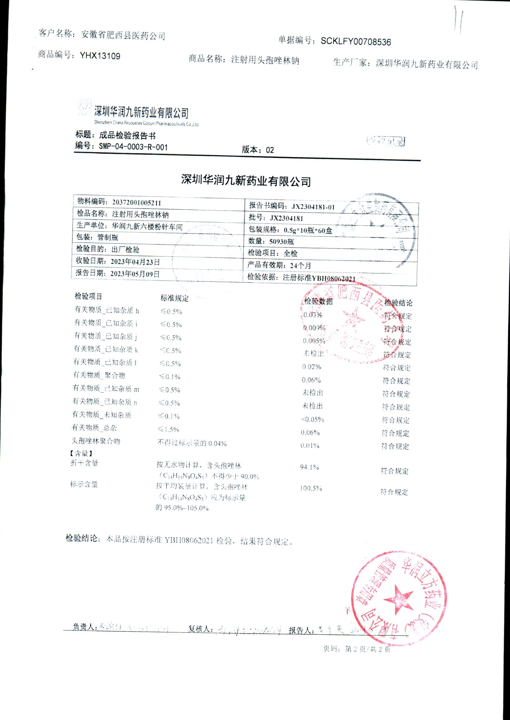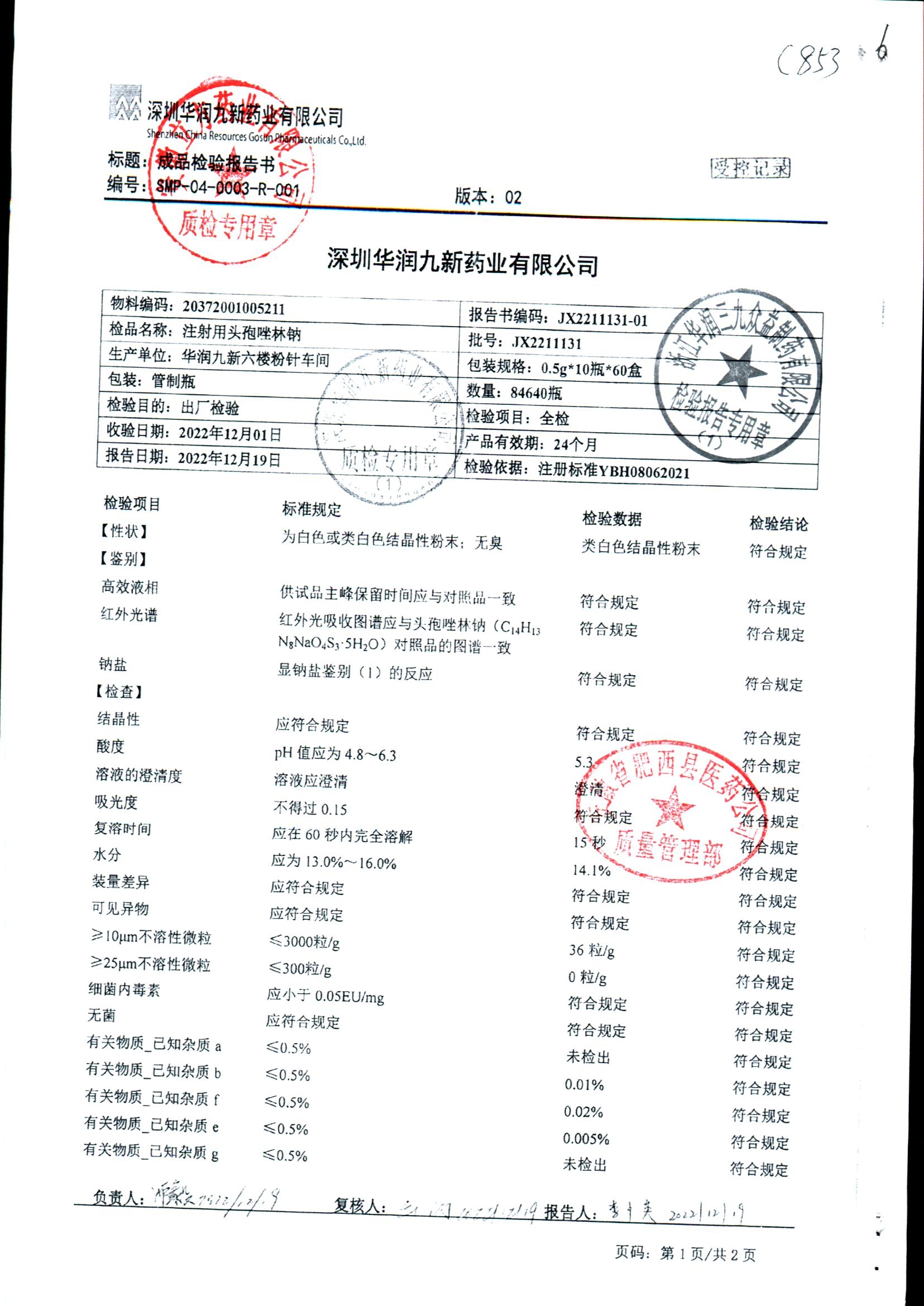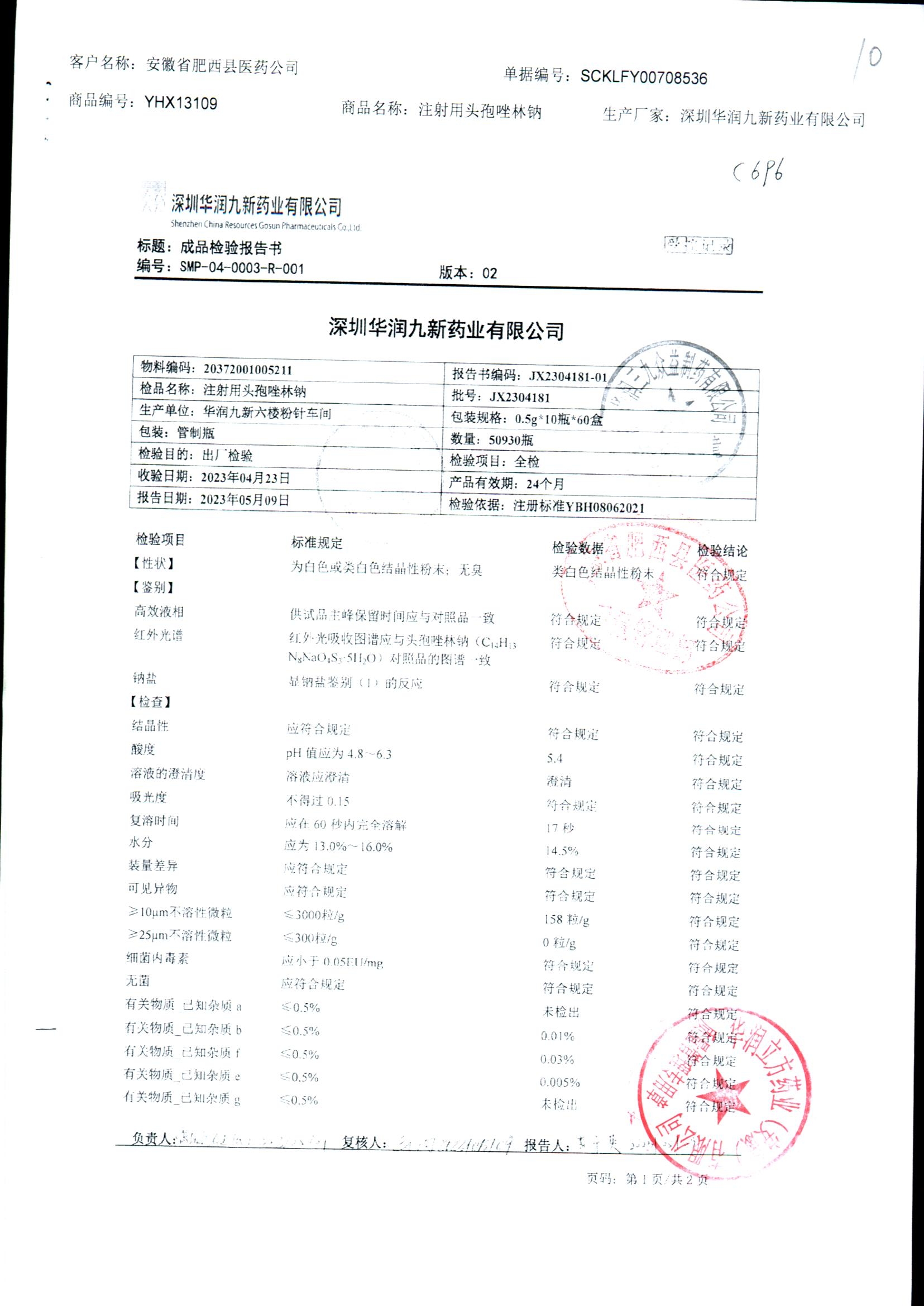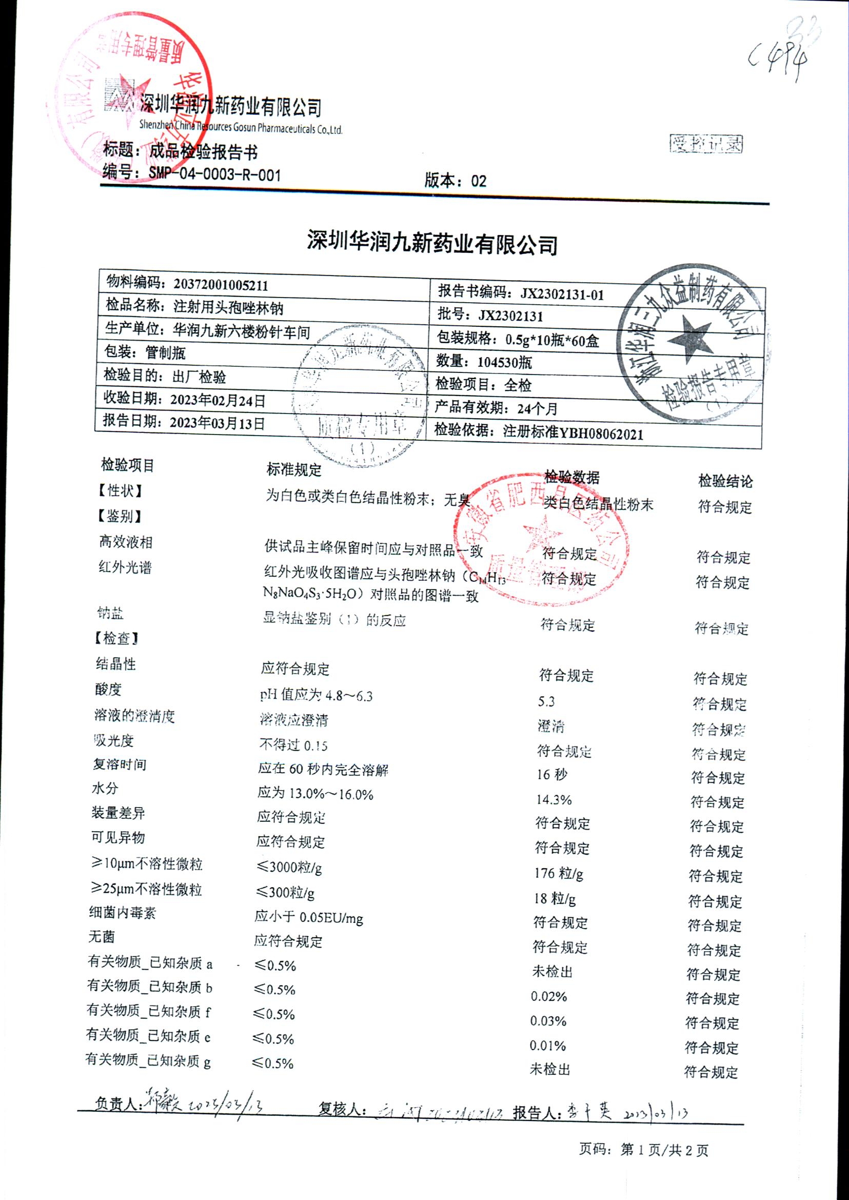 注射用头孢唑啉钠 | 0.5g*10瓶 | JX2305611-01/2 | 查看详情 |