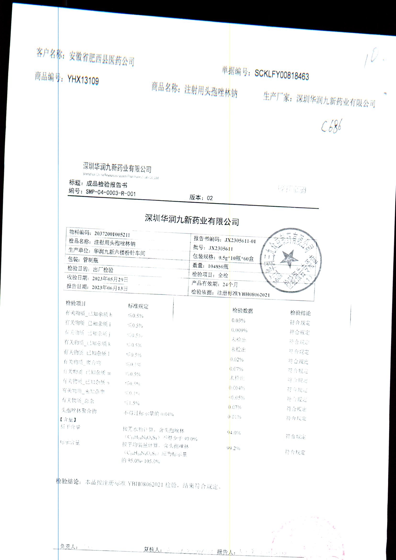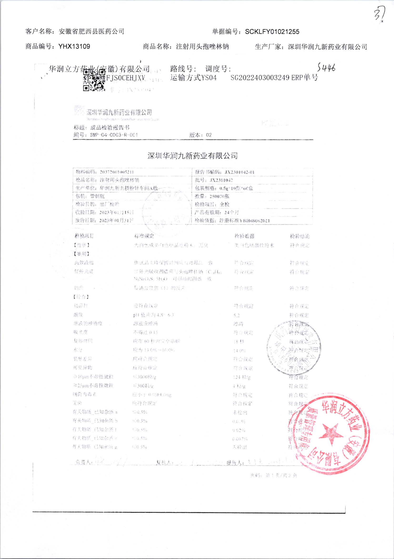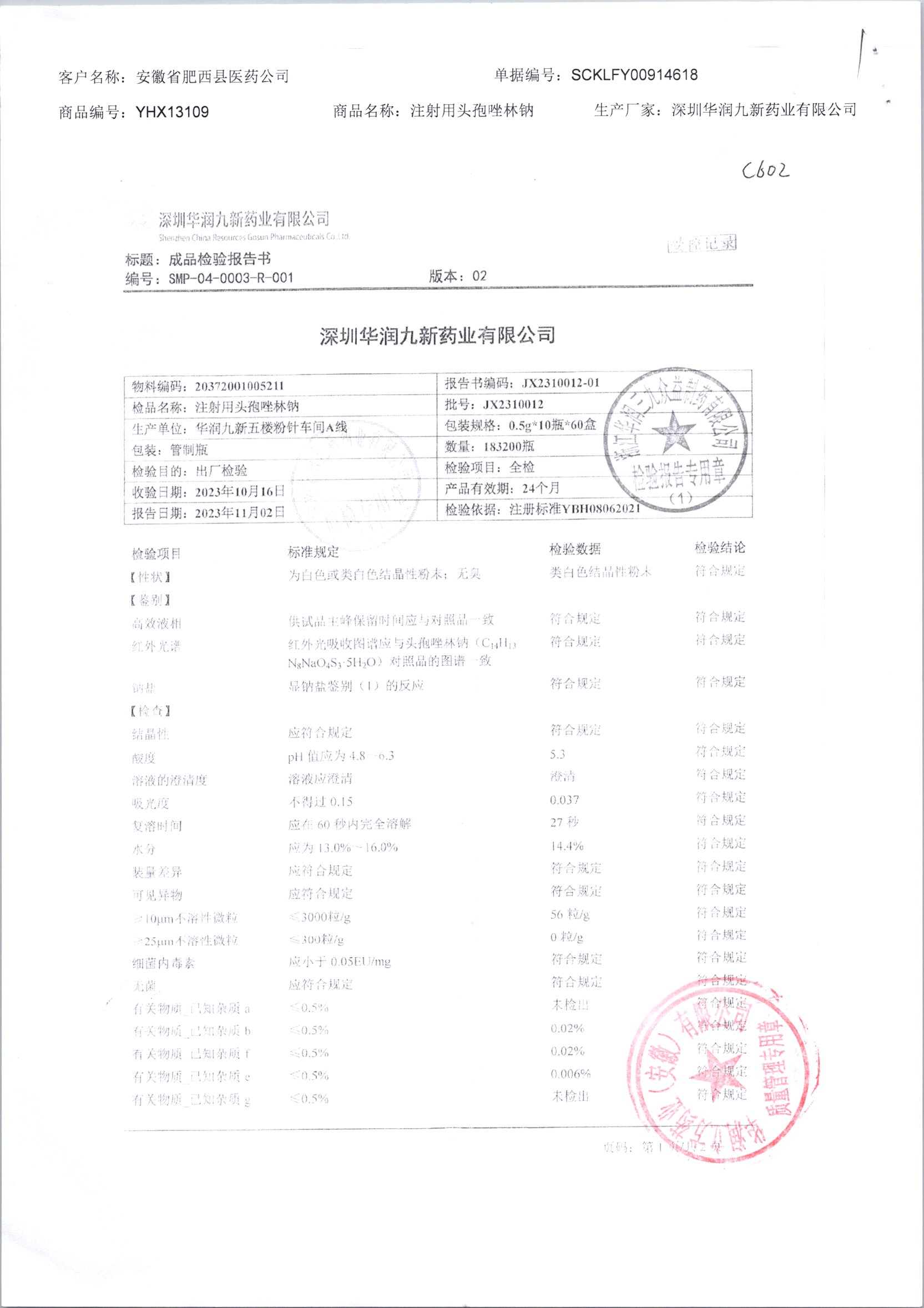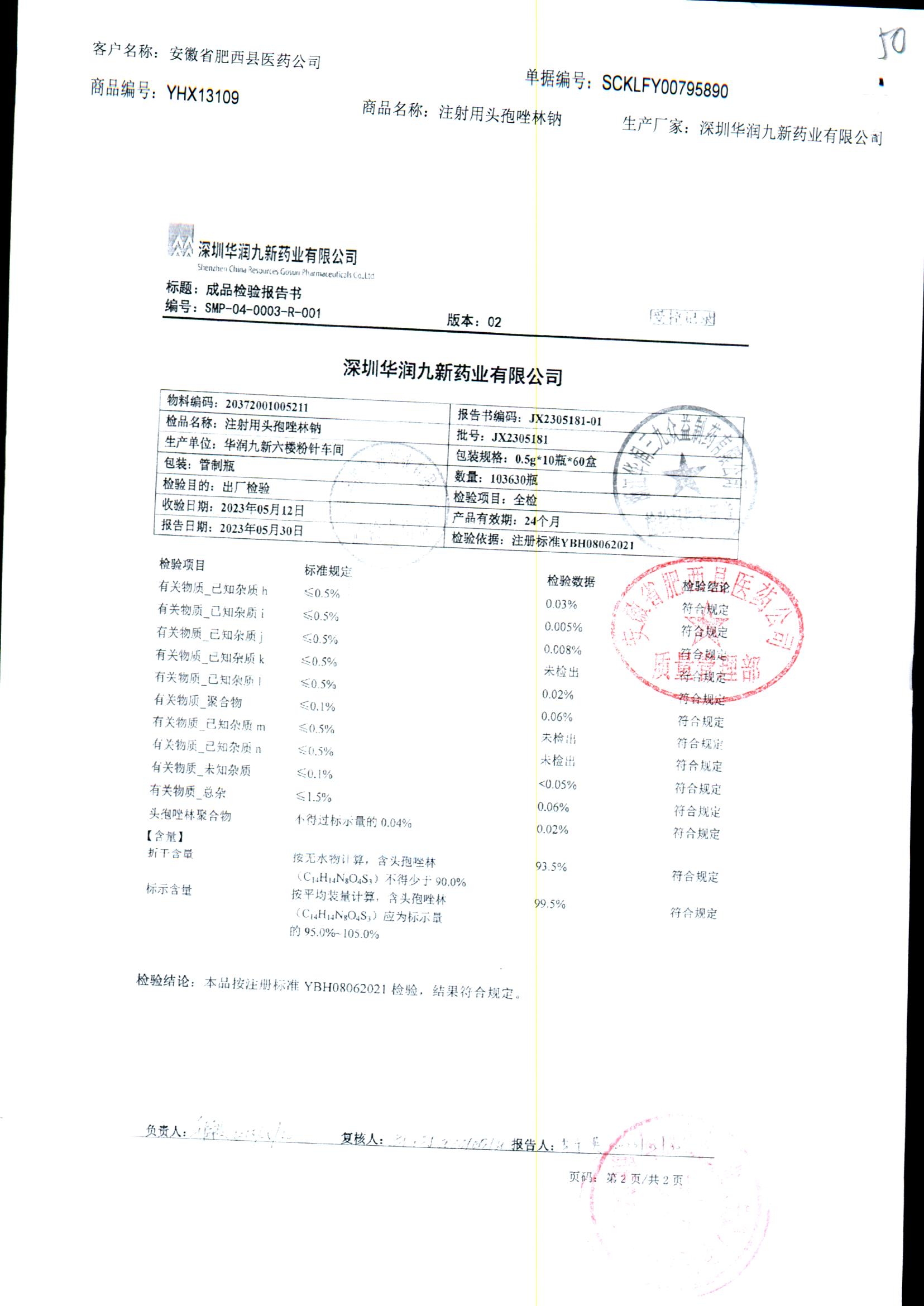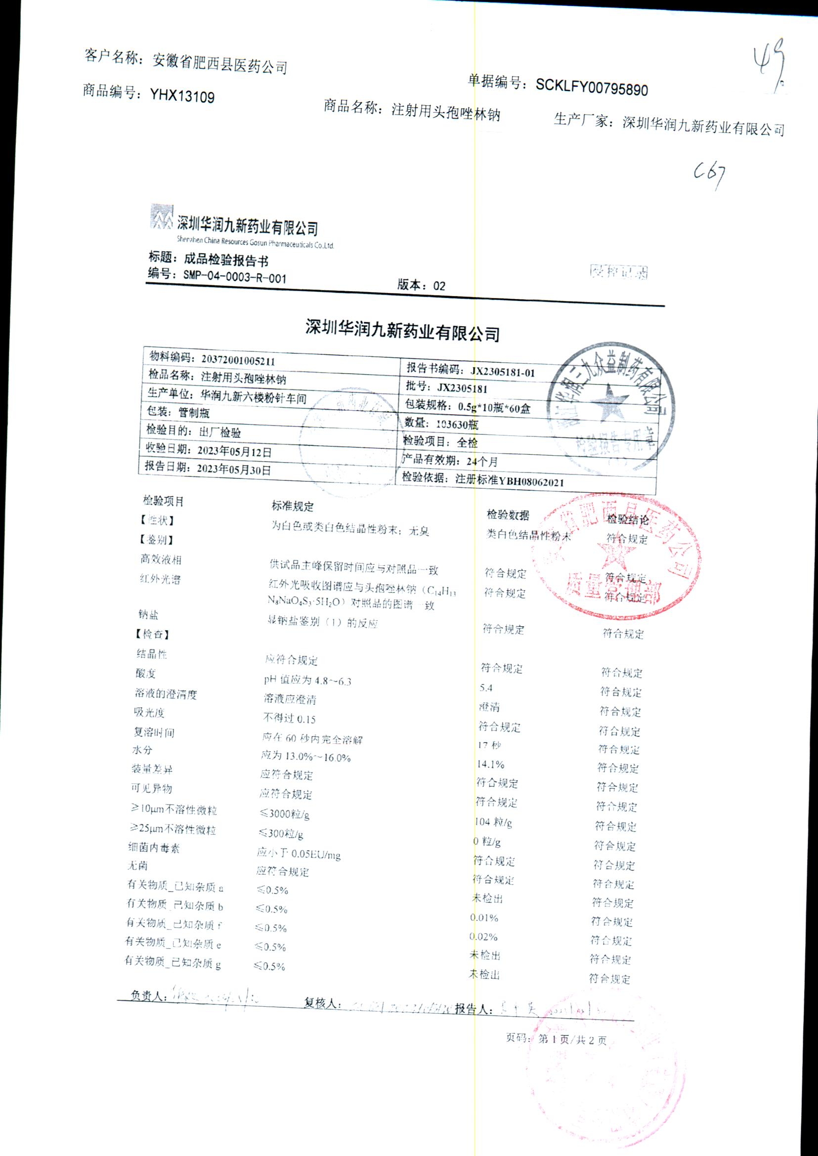 注射用头孢唑啉钠 | 0.5g*10瓶 | JX2305611-01/2 | 查看详情 |