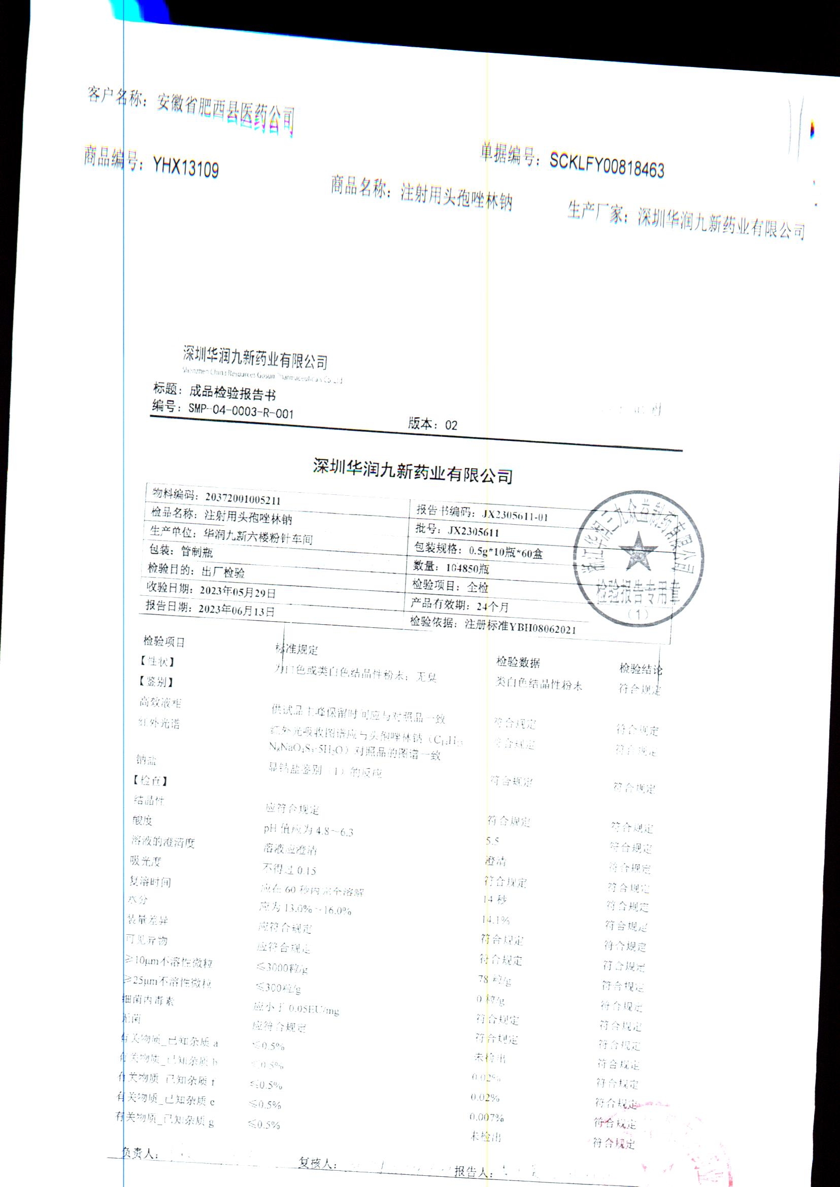 注射用头孢唑啉钠 | 0.5g*10瓶 | JX2302131/1 | 查看详情 |