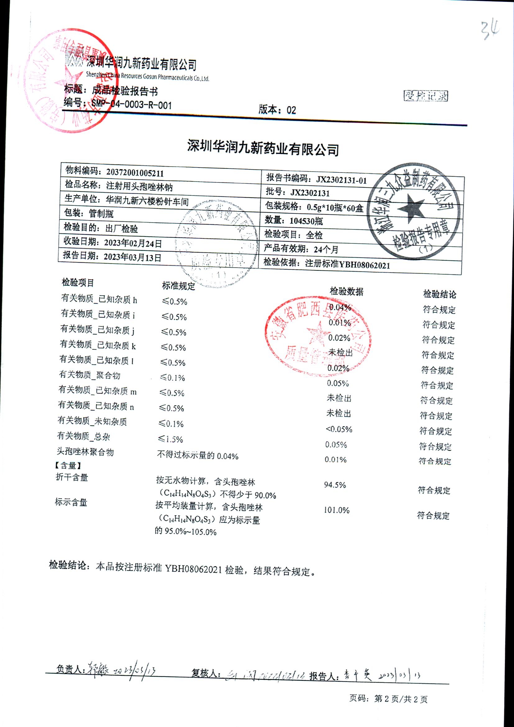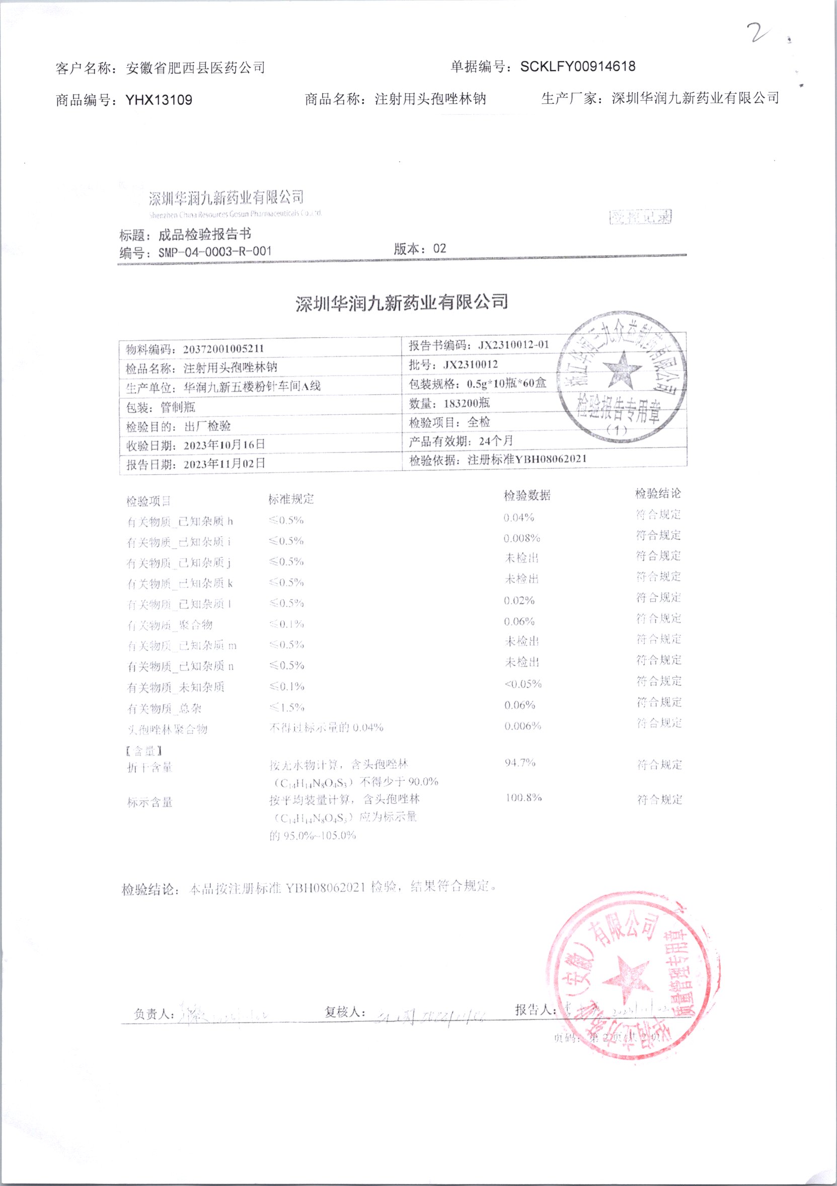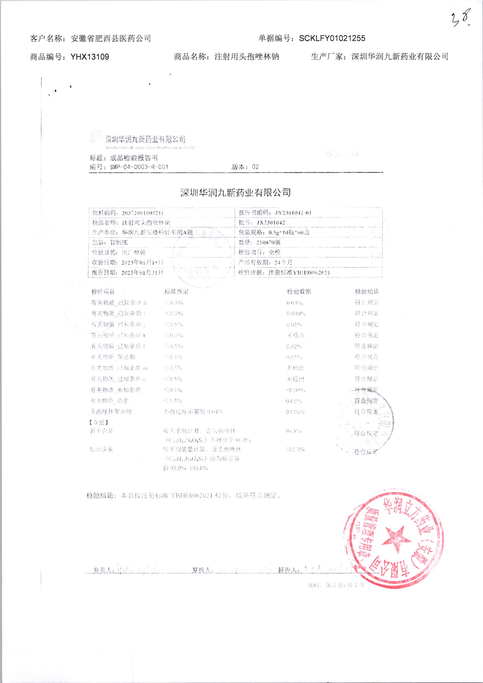 注射用头孢唑啉钠 | 0.5g*10瓶 | JX2302131/2 | 查看详情 |