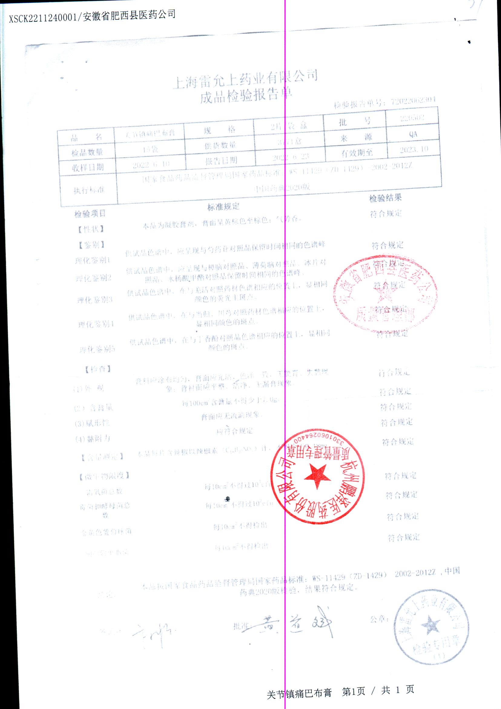 关节镇痛巴布膏 | 2片 | 230111 | 查看详情 |