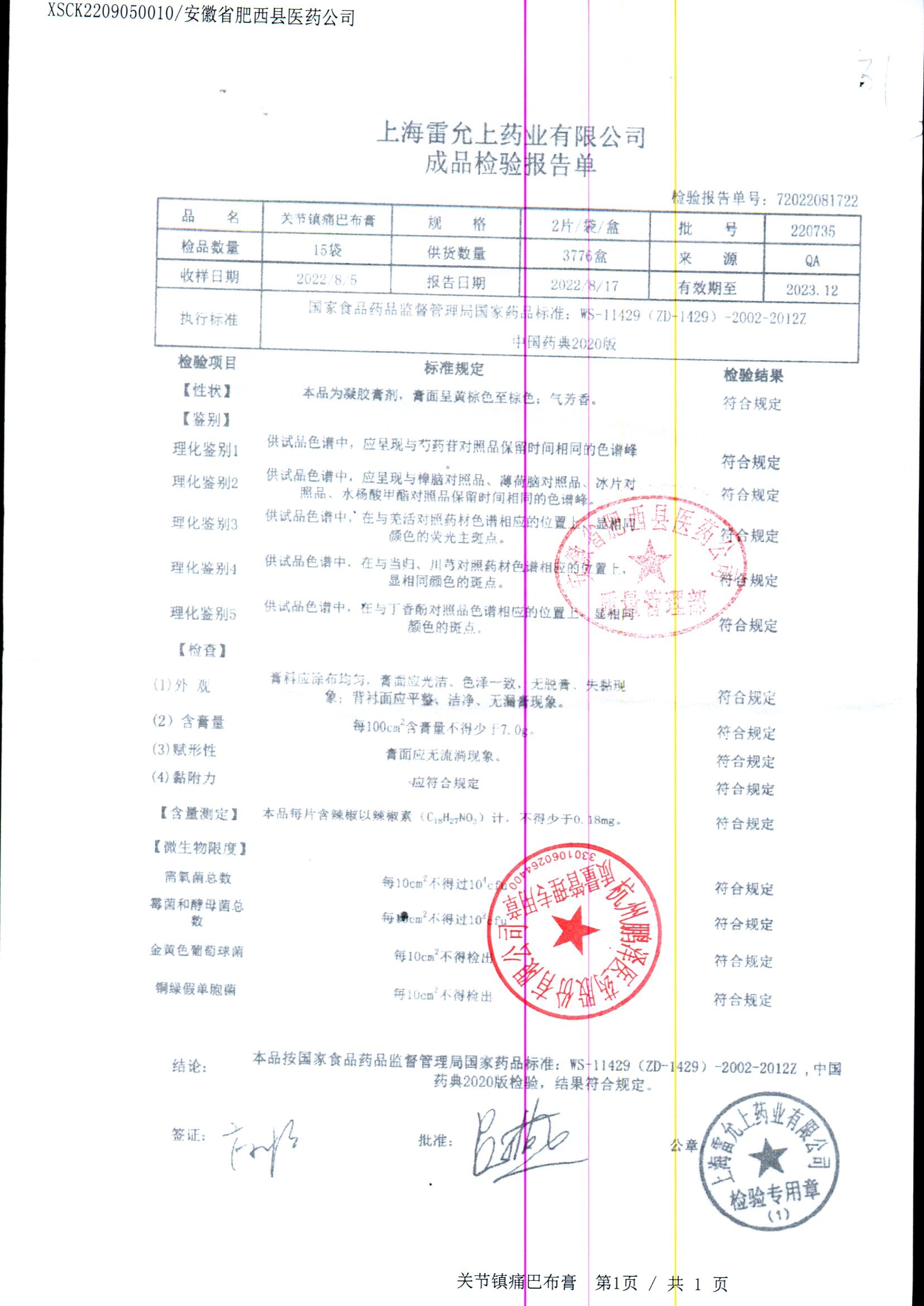 关节镇痛巴布膏 | 2片 | 220901 | 查看详情 |