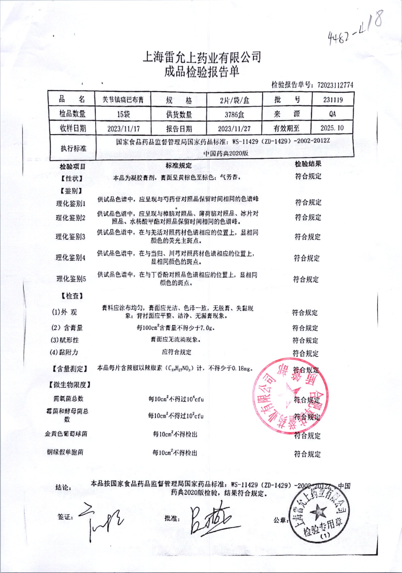 关节镇痛巴布膏 | 2片 | 231119 | 查看详情 |