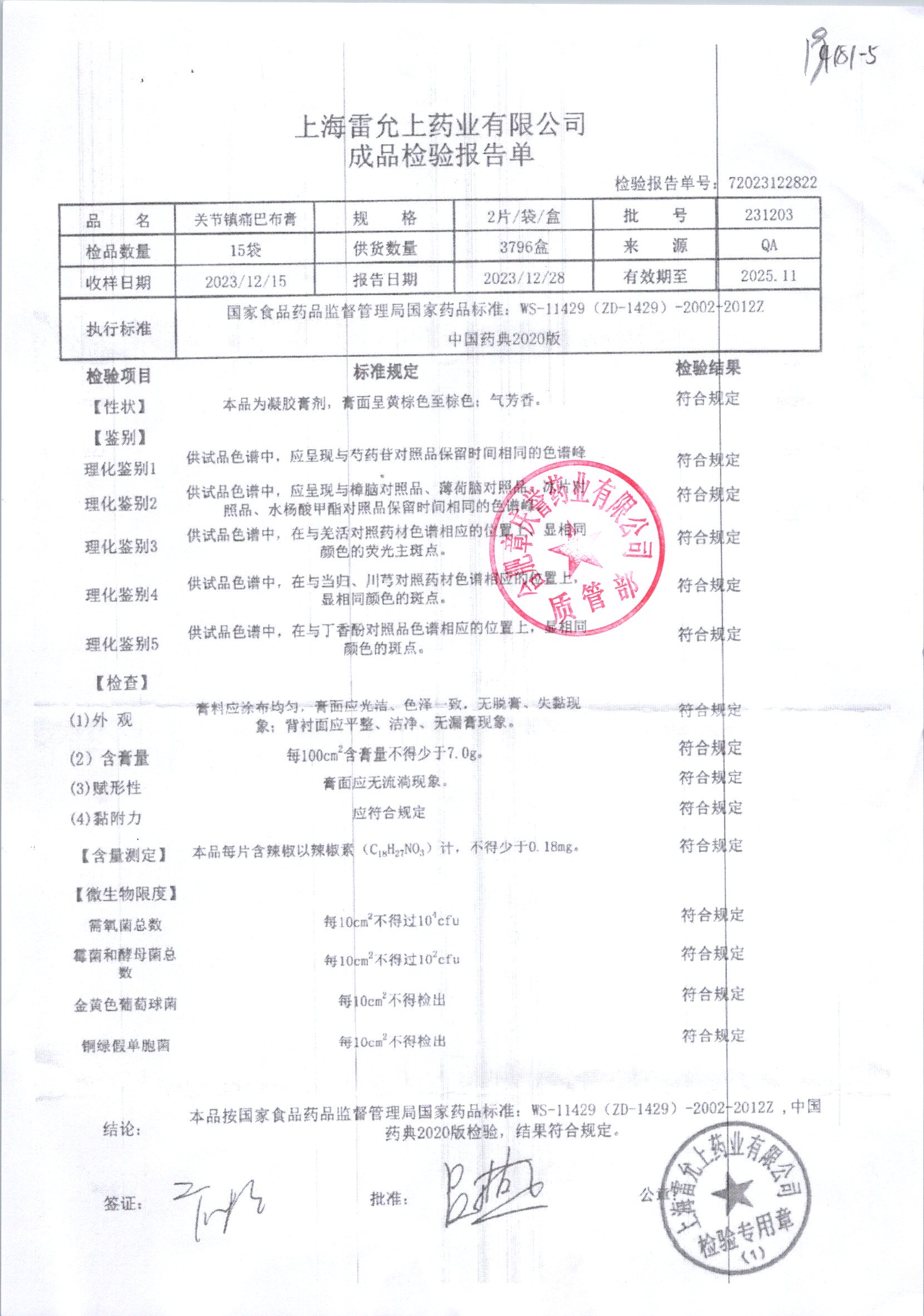关节镇痛巴布膏 | 2片 | 231203 | 查看详情 |