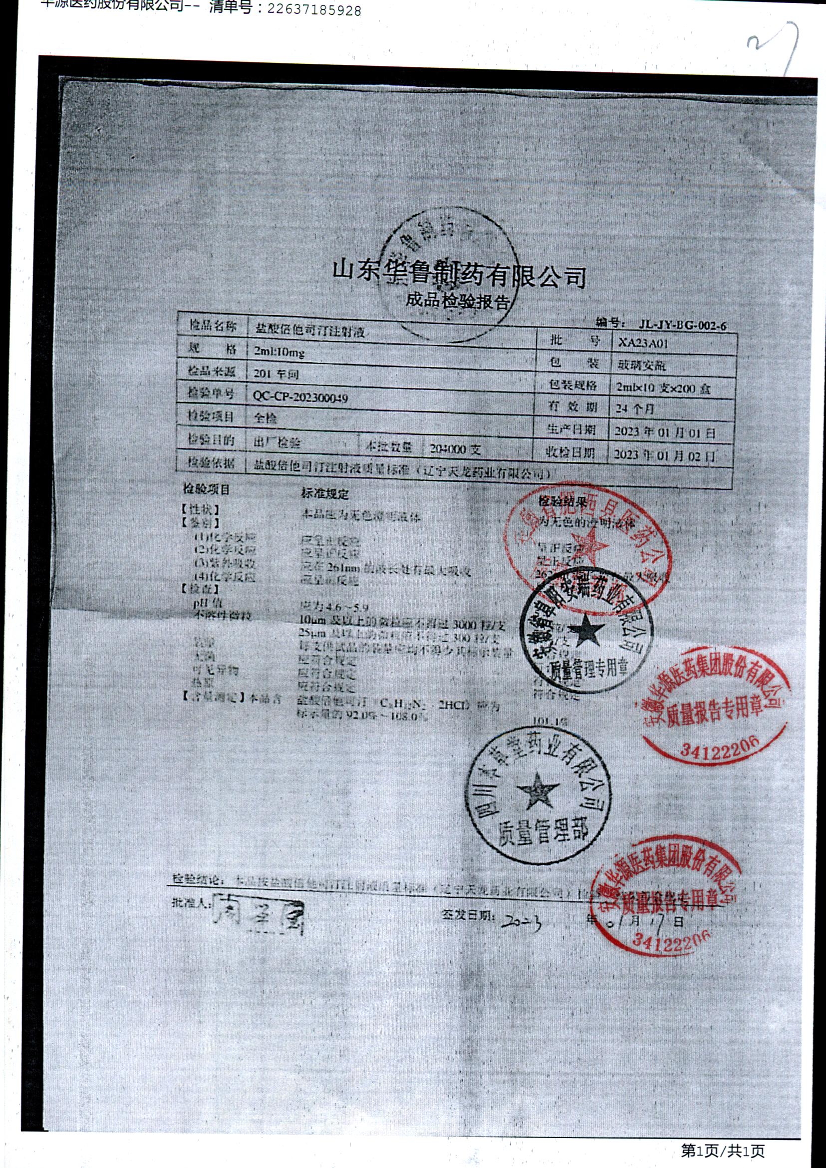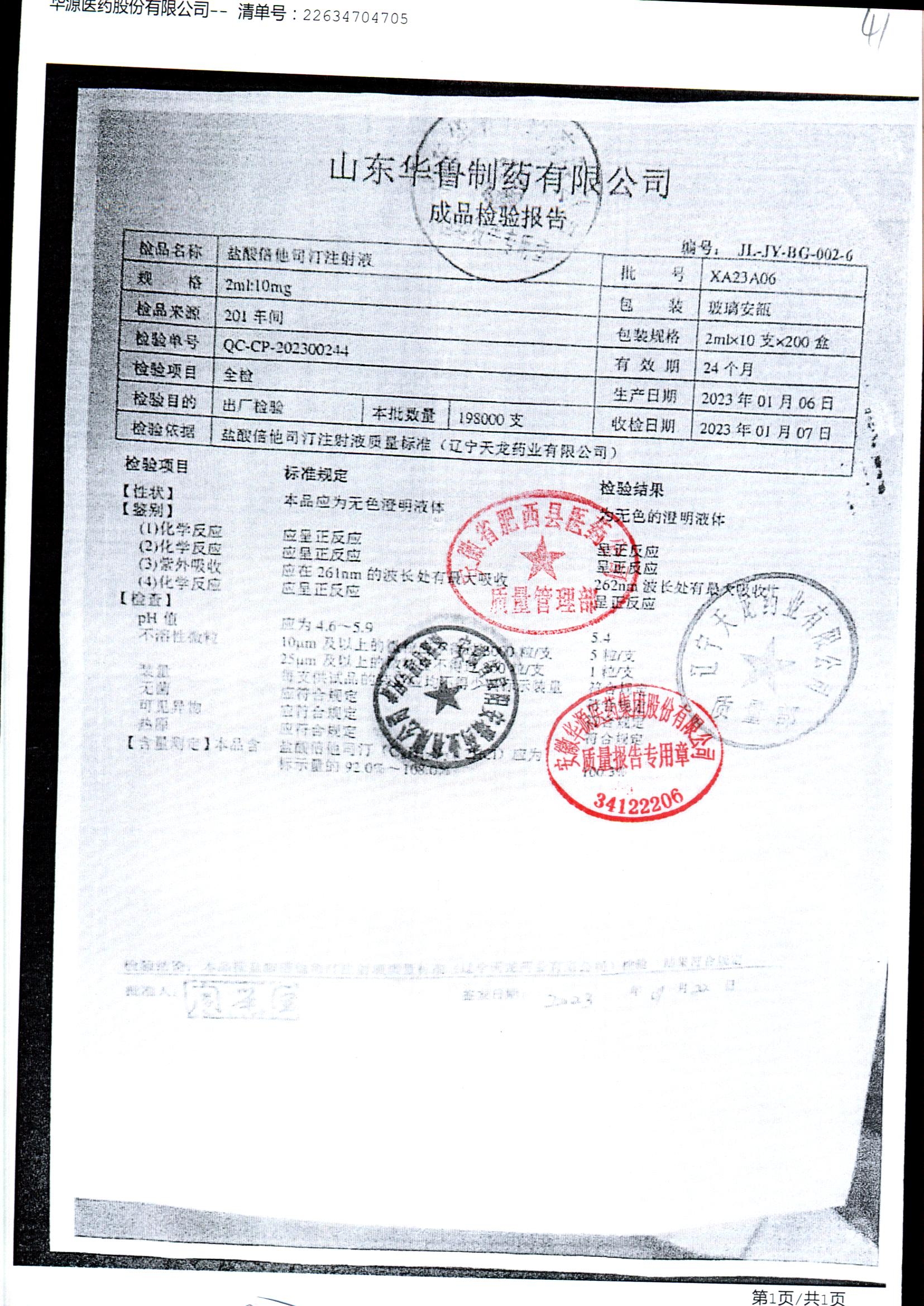 盐酸倍他司汀注射液 | 2ml:10mg*10支 | XA23A06 | 查看详情 |