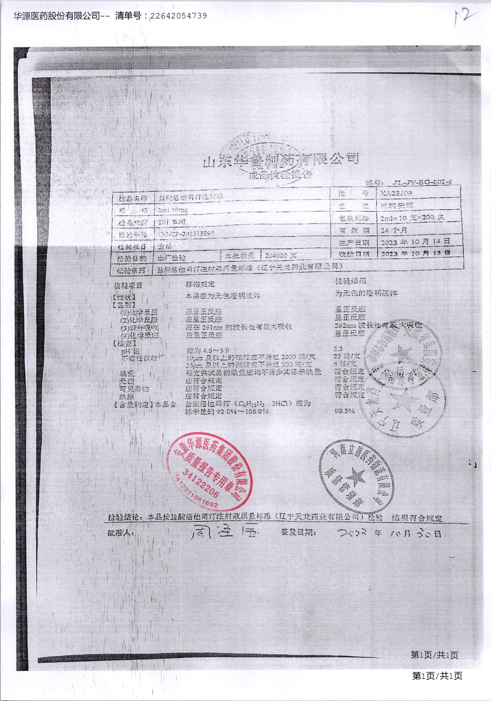 盐酸倍他司汀注射液 | 2ml:10mg*10支 | XA23A01 | 查看详情 |